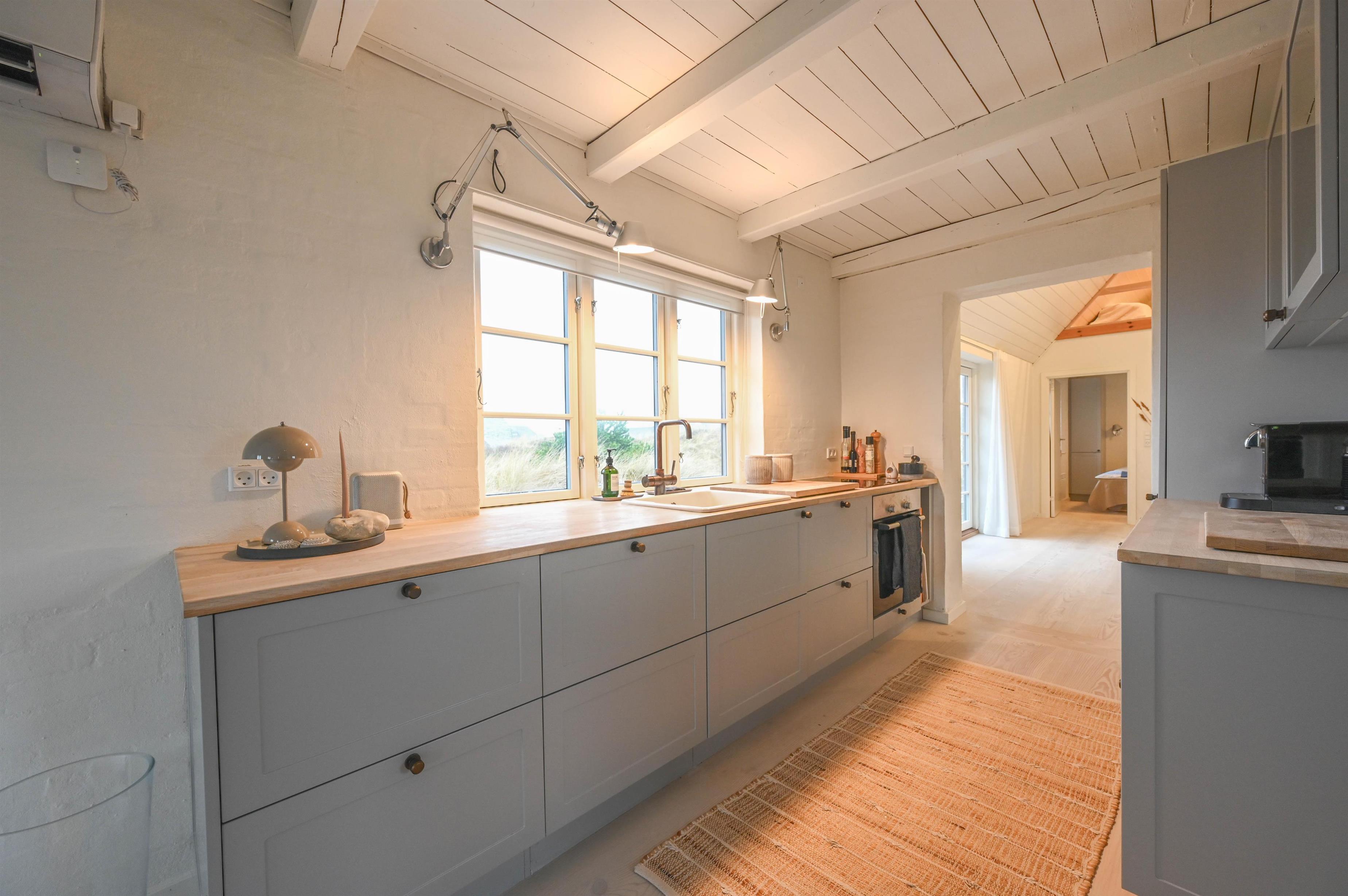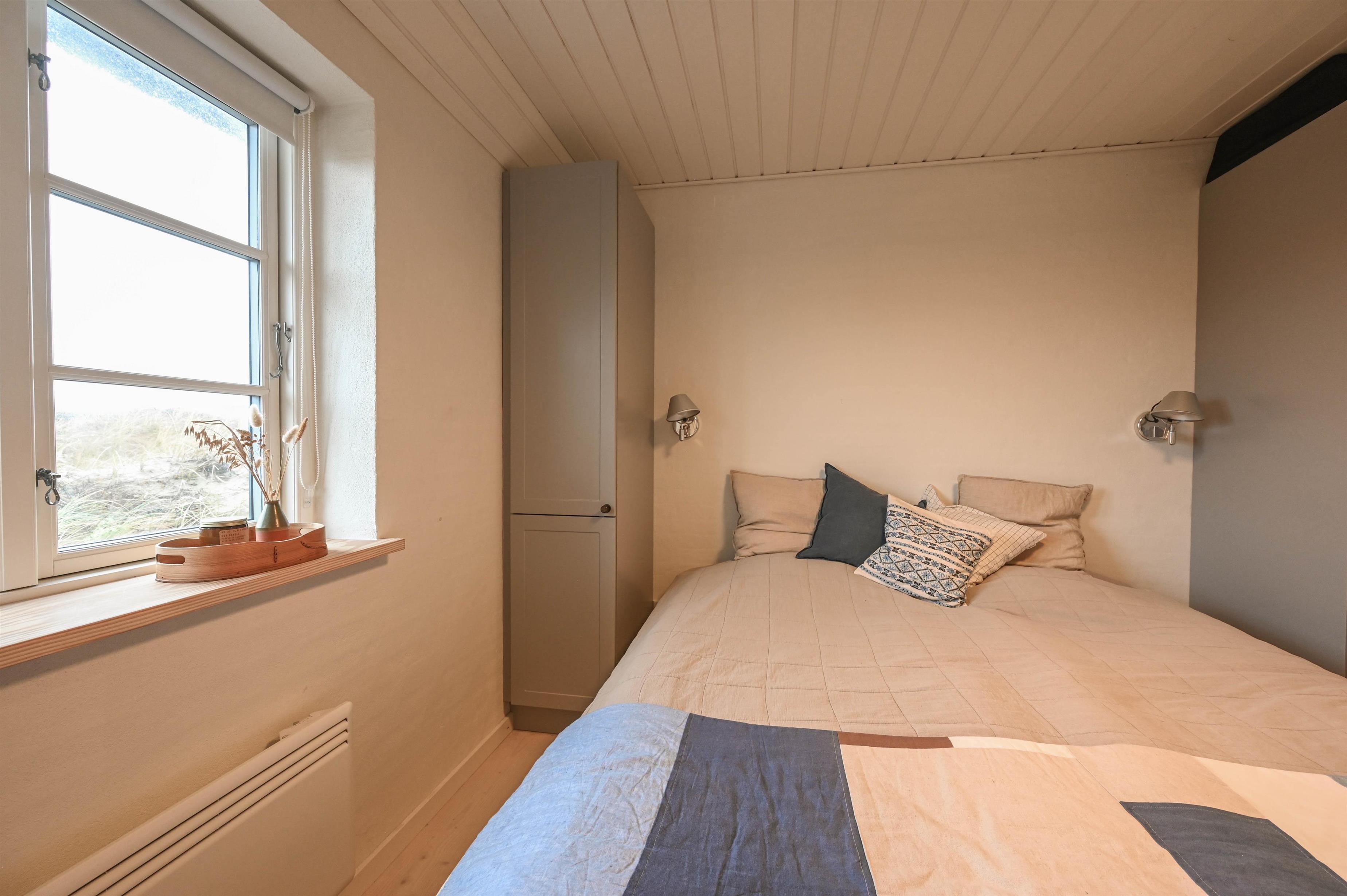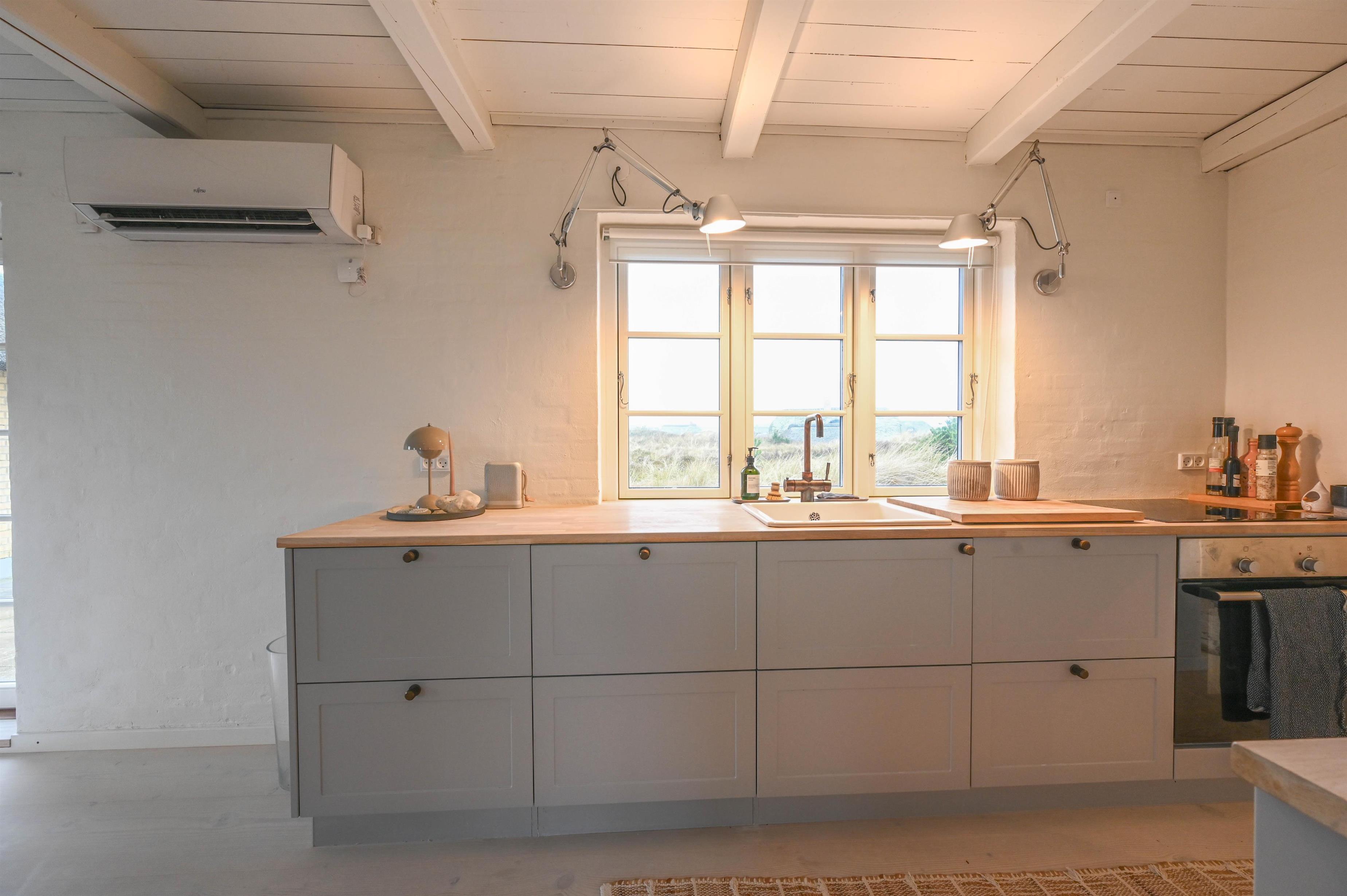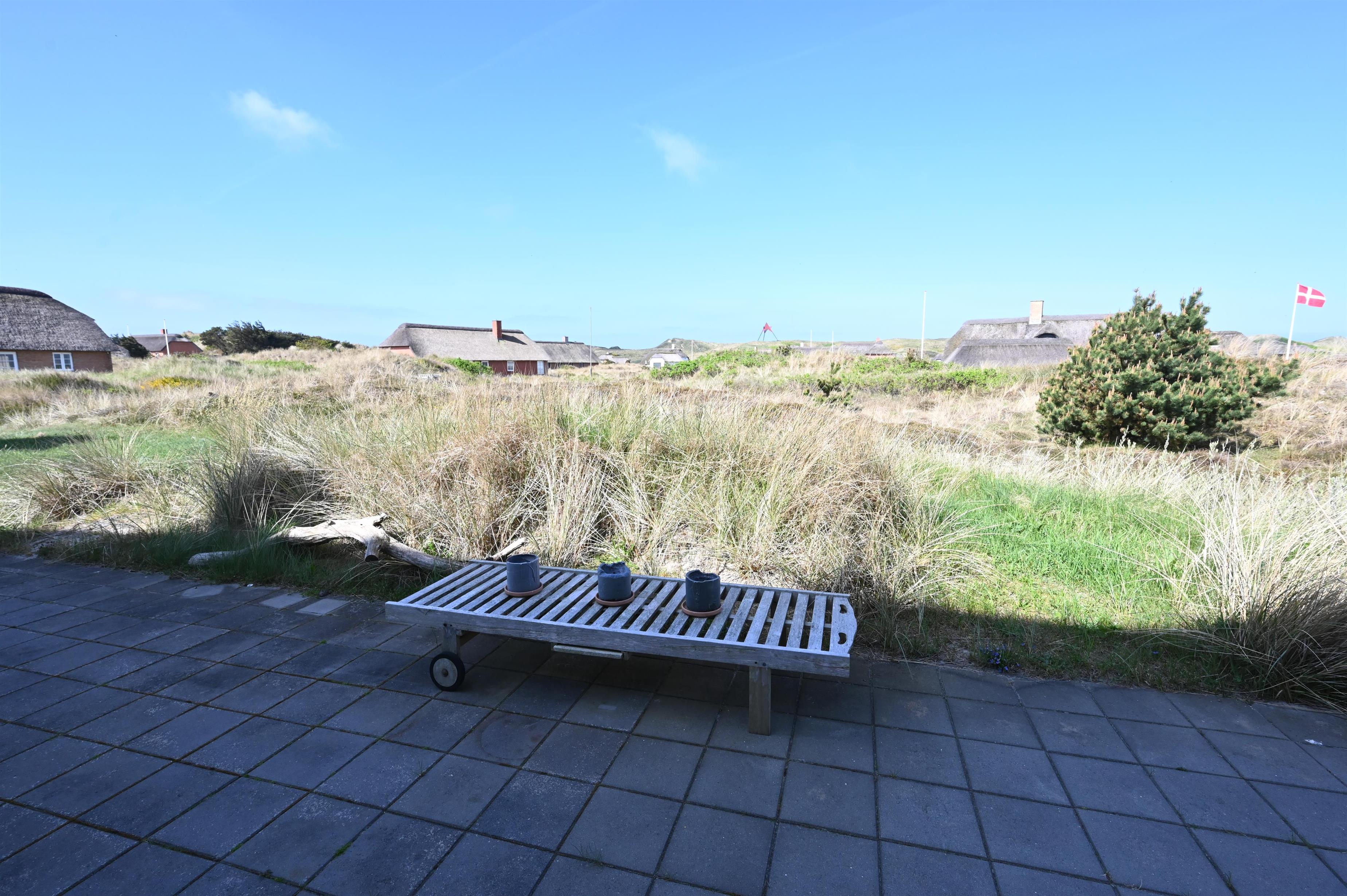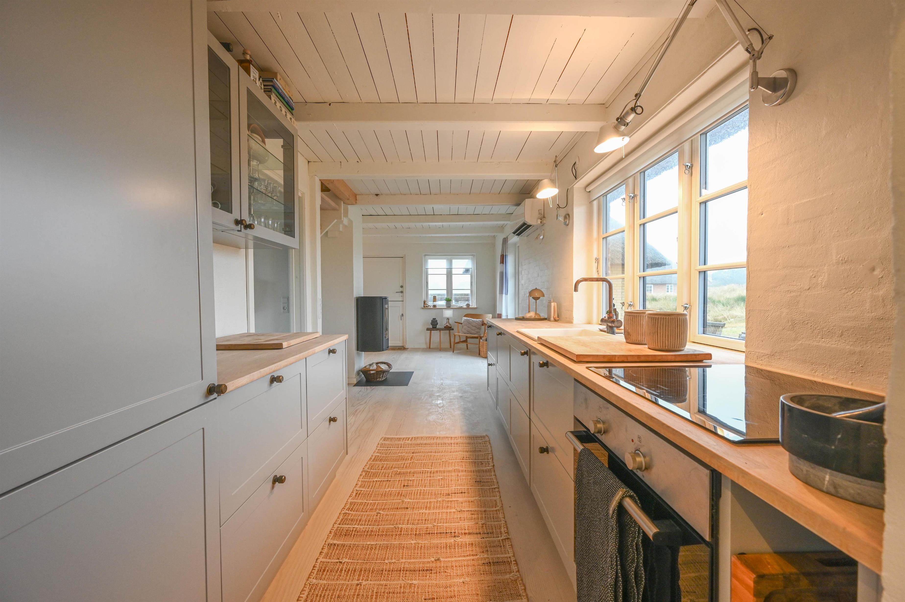 Her får du ikke kun en helt fantastisk placering på Vedersø Klit, du får også et smuk og gennemført indrettet feriehus - det kan næsten ikke blive bedre. Med udsigt til klitterne og sømærket på Vedersø Klit, , og 400 meter til købmanden ved campingpladsen, så bliver placeringen bare ikke bedre. Kun 400 meter til det brusende og altid omskiftelige Vesterhav. Fantastiske terrasser, der altid indbyder til hygge - den indhegnede morgenmadsterrasse, der vender mod sydøst og den store brede terrasse, der kan nydes om eftermiddagen og aftenen og som vender mod vest, og dermed skaber den allerbedste base for at se solnedgangen med en glas vin eller en kop aftenskaffe i hånden.