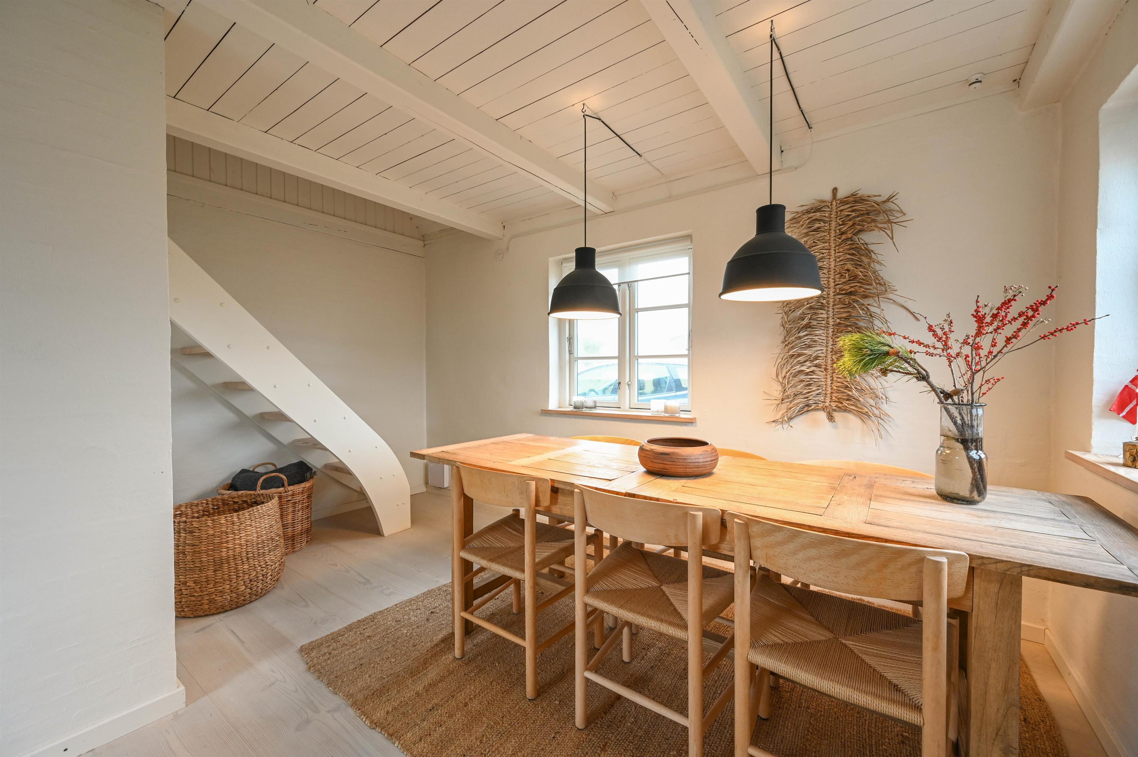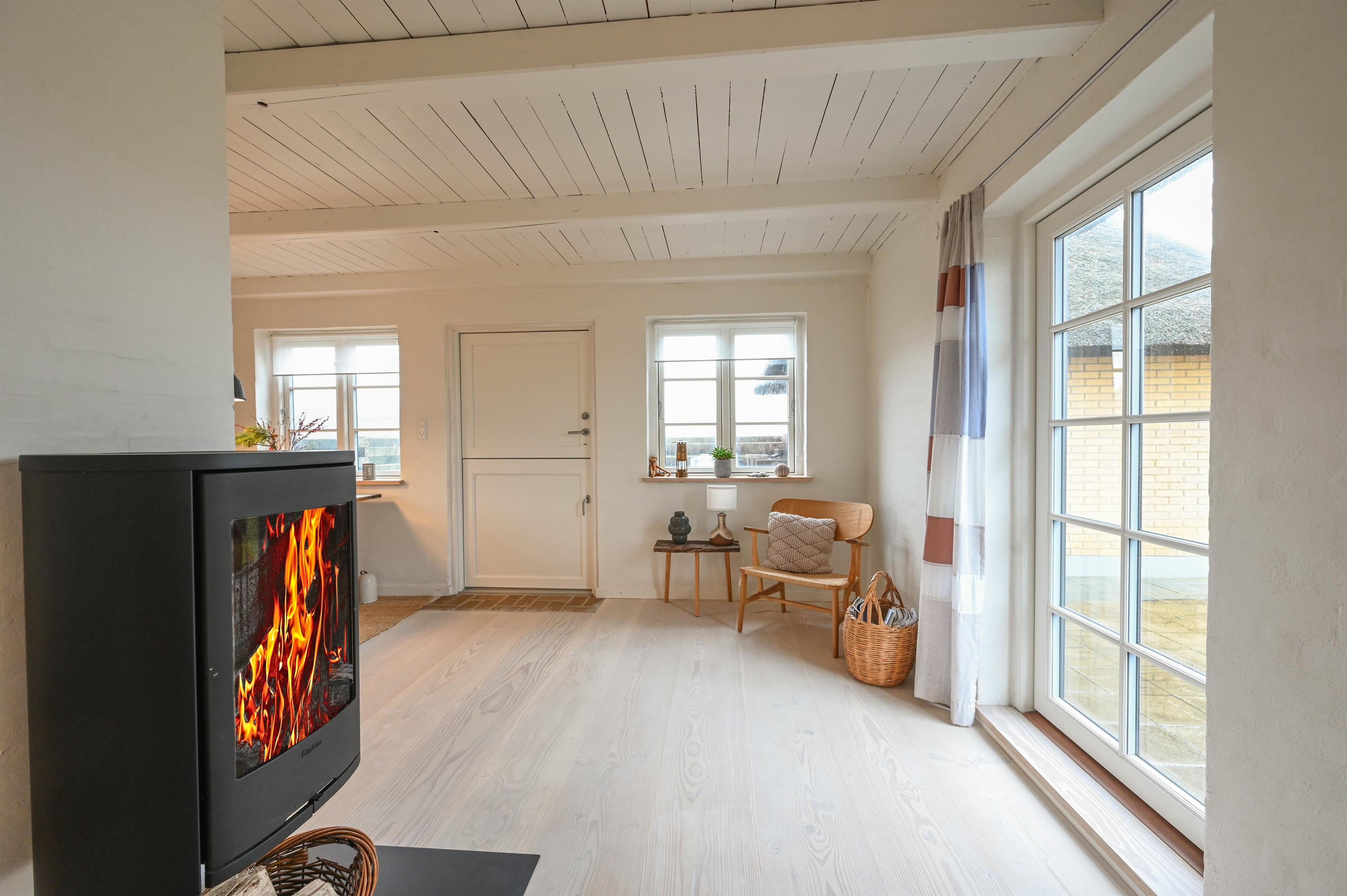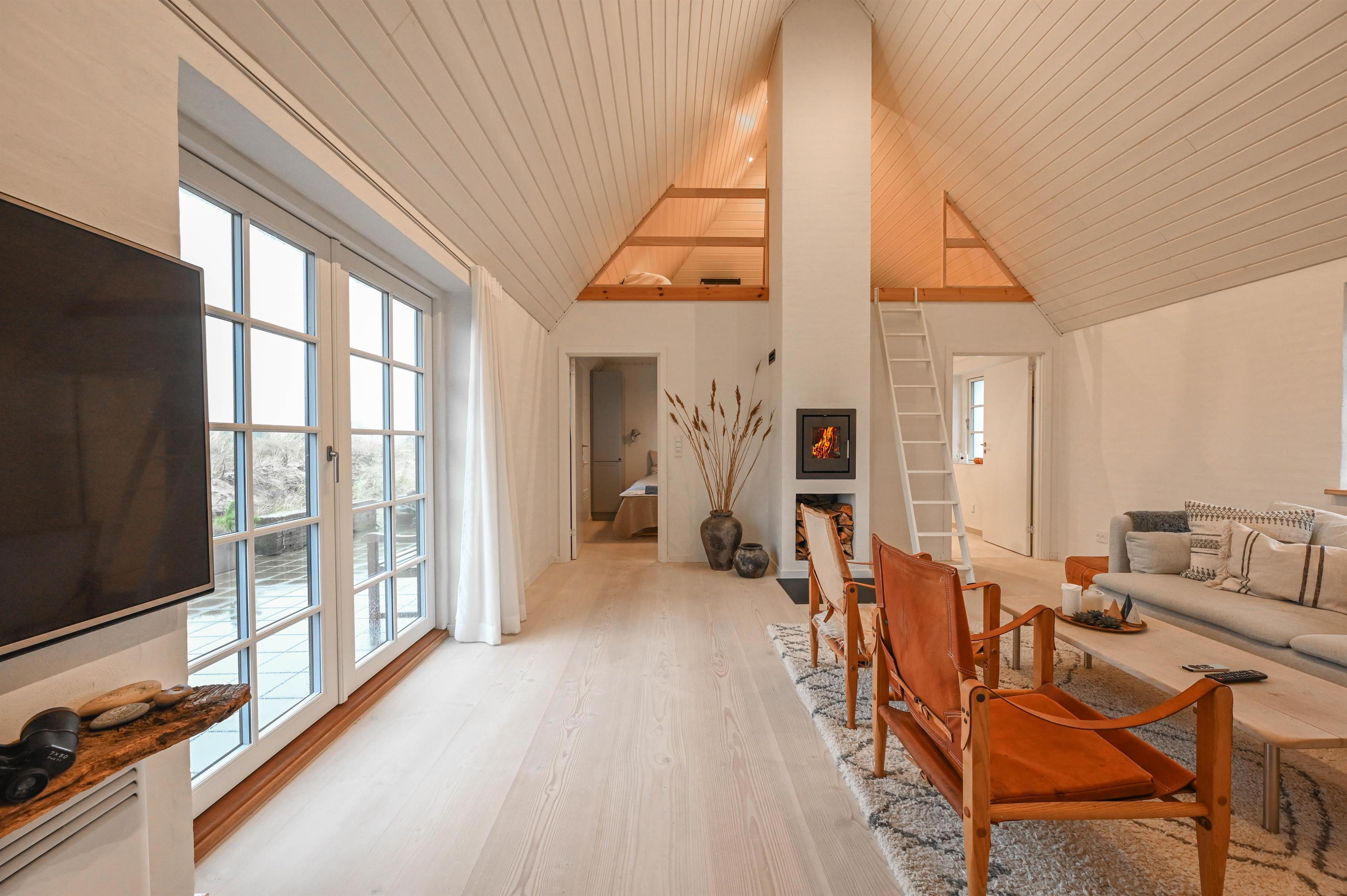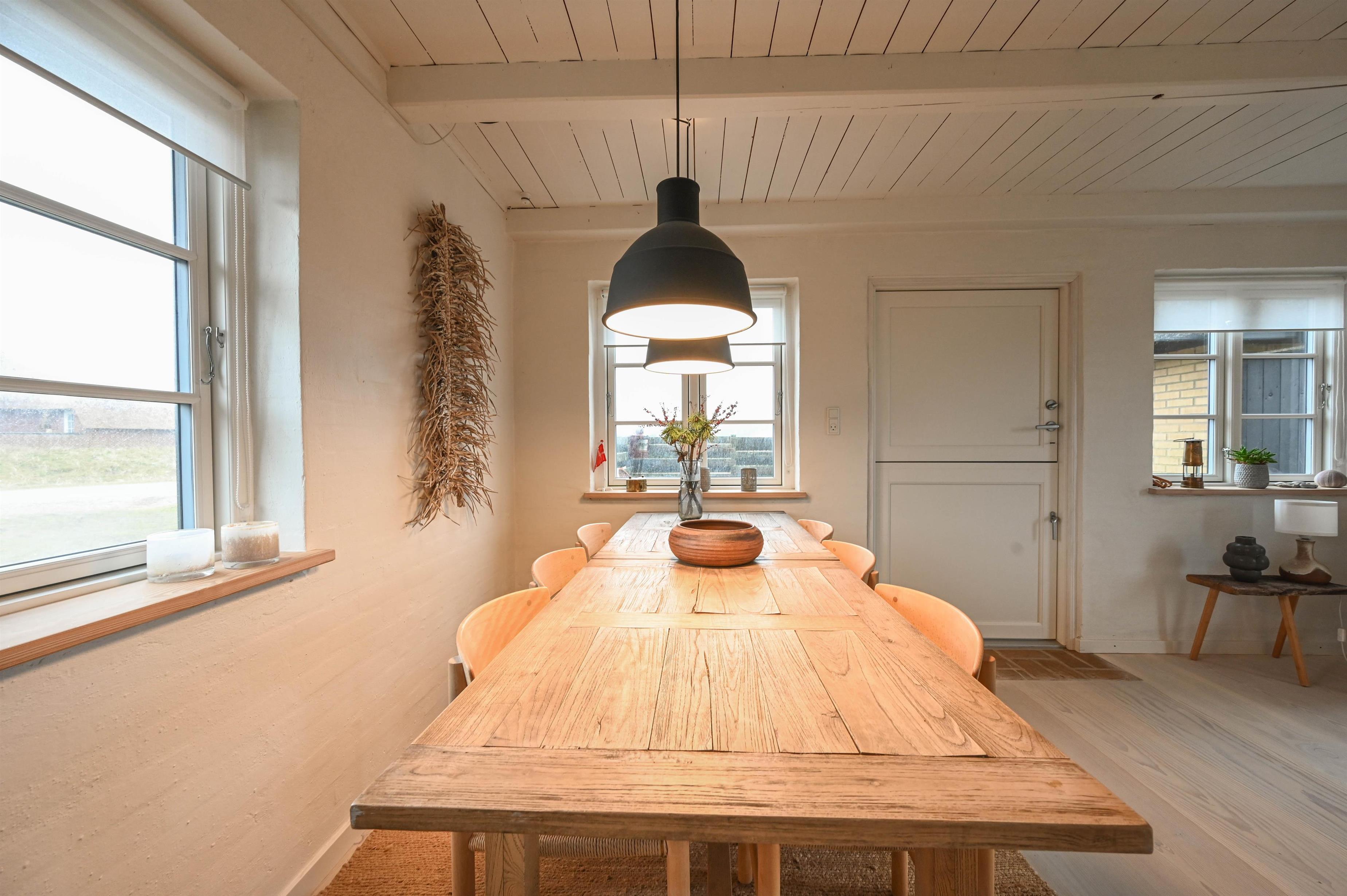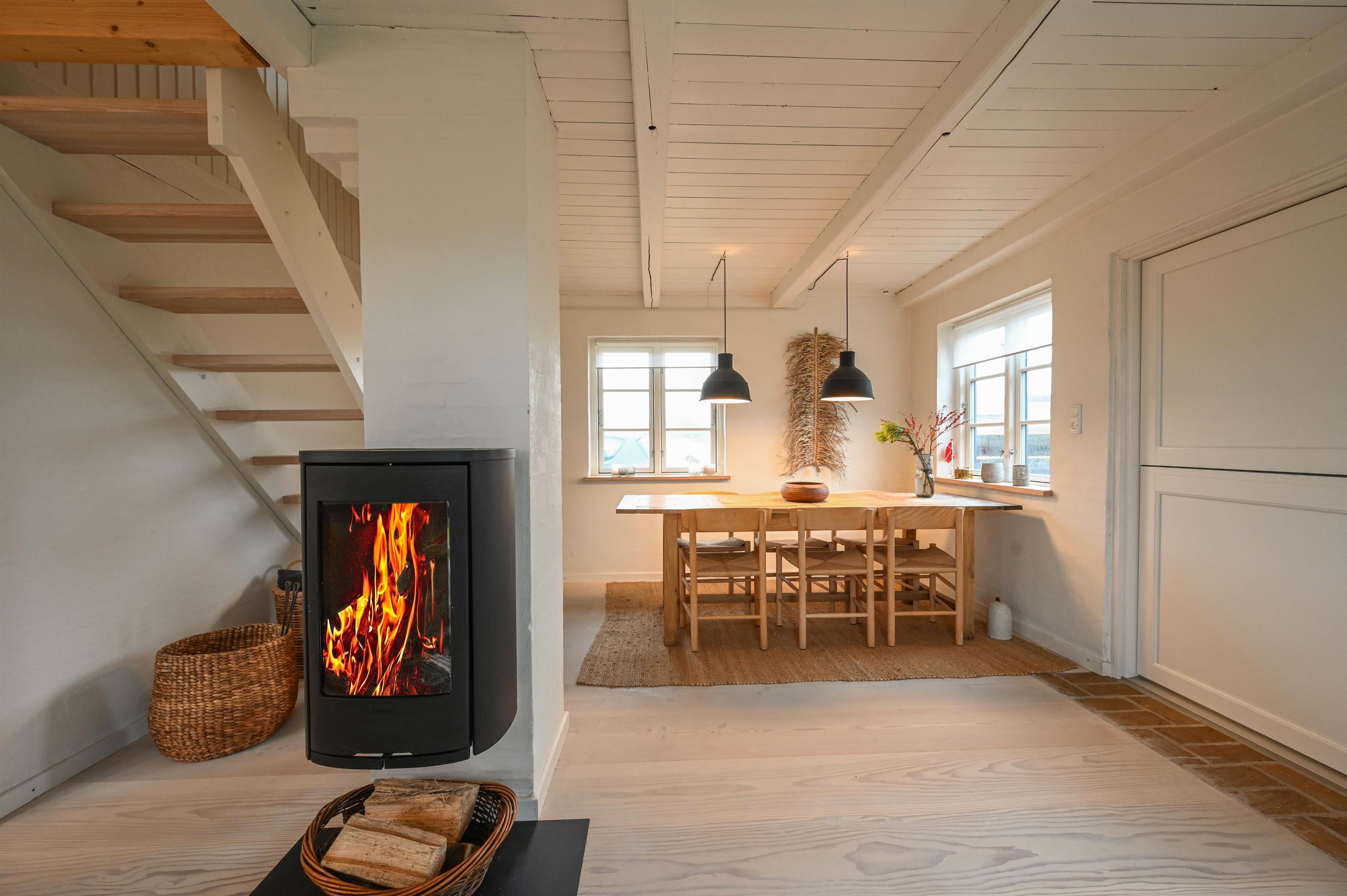 Indenfor rammes du af ægte sommerhusstemning. De smukke trægulve, de småsprossede vinduer, brændeovne, loftetagen hvor de gamle brædder på gulvet skaber den helt rigtige stemning. Det er så hyggeligt og skaber minder om gamle dage, samtidig med at det er moderne og lyst. Huset er sat i en stand, og stemning, som man sjældent oplever, i et ældre ”Vedersø Klit hus”.