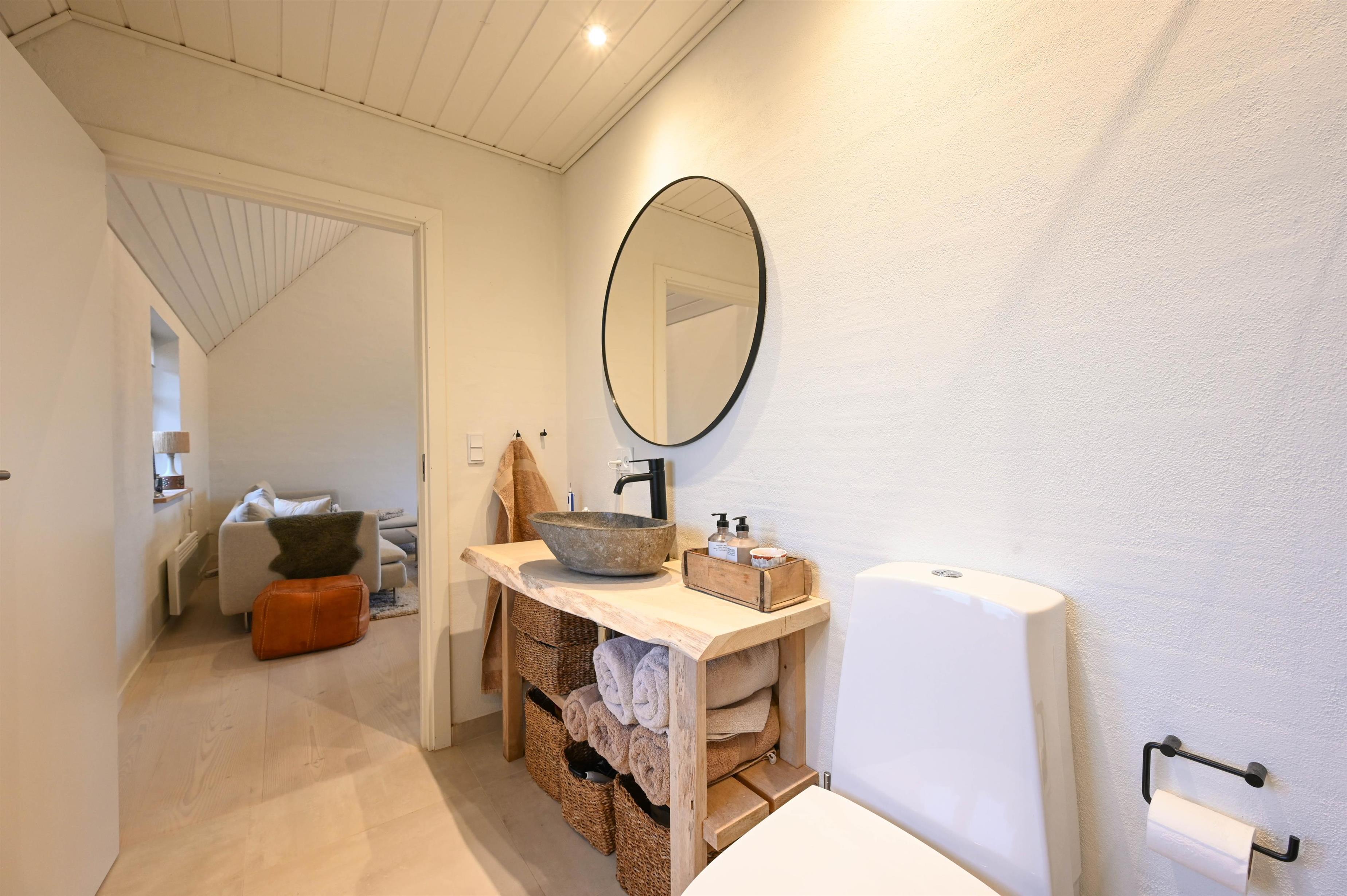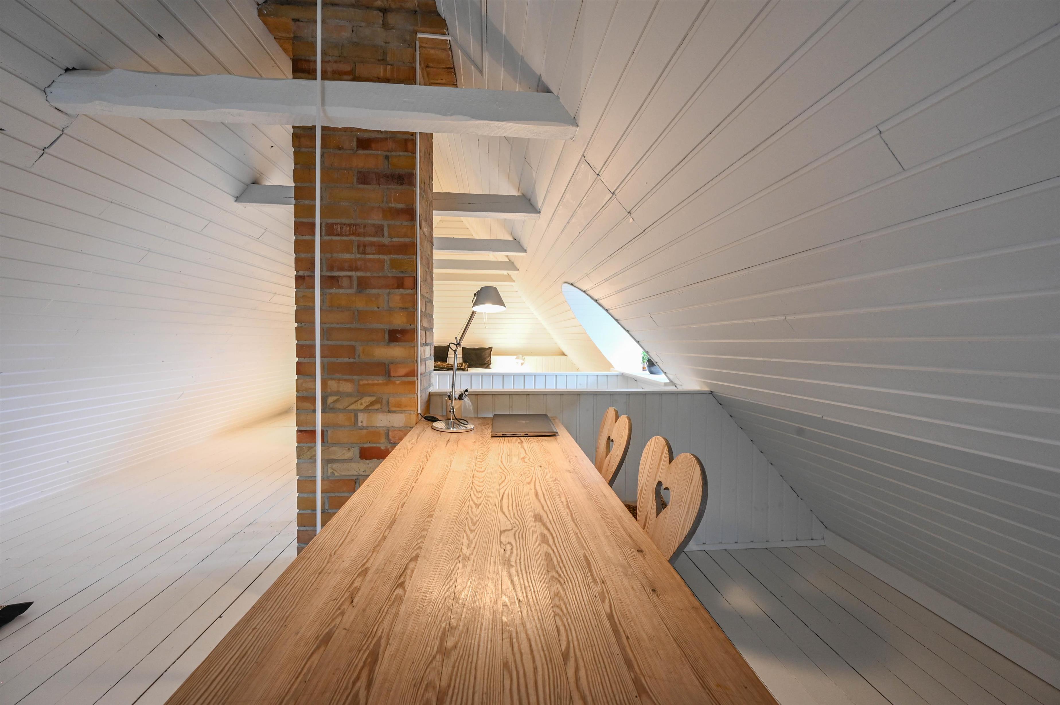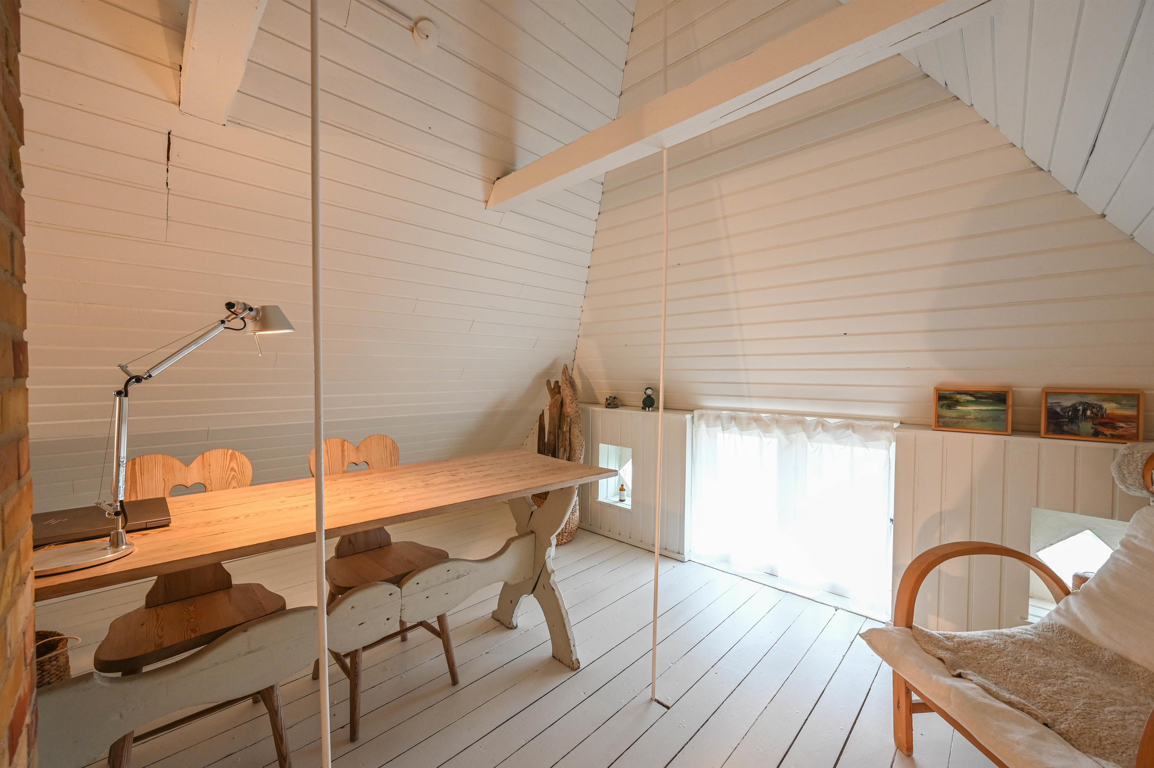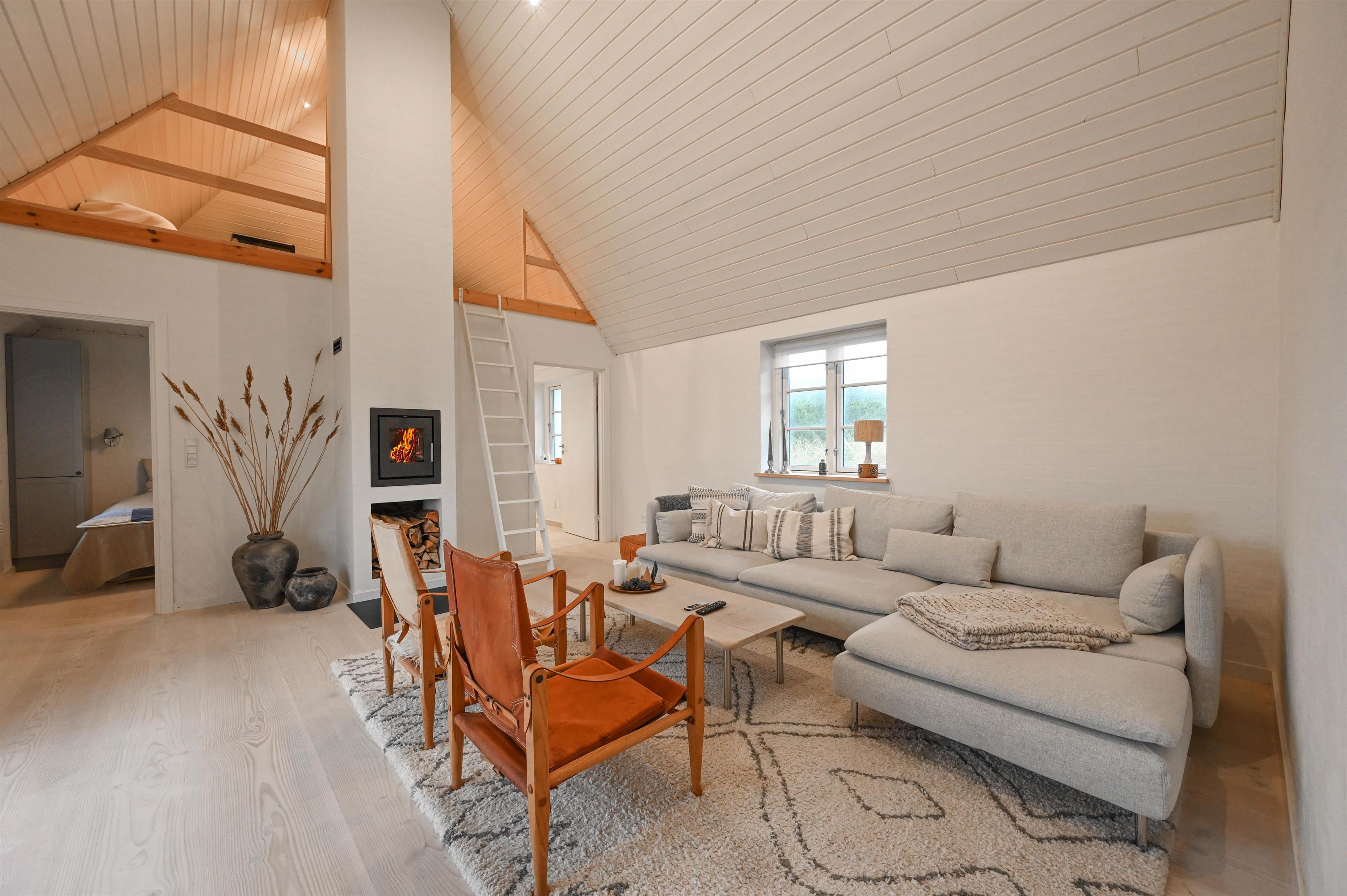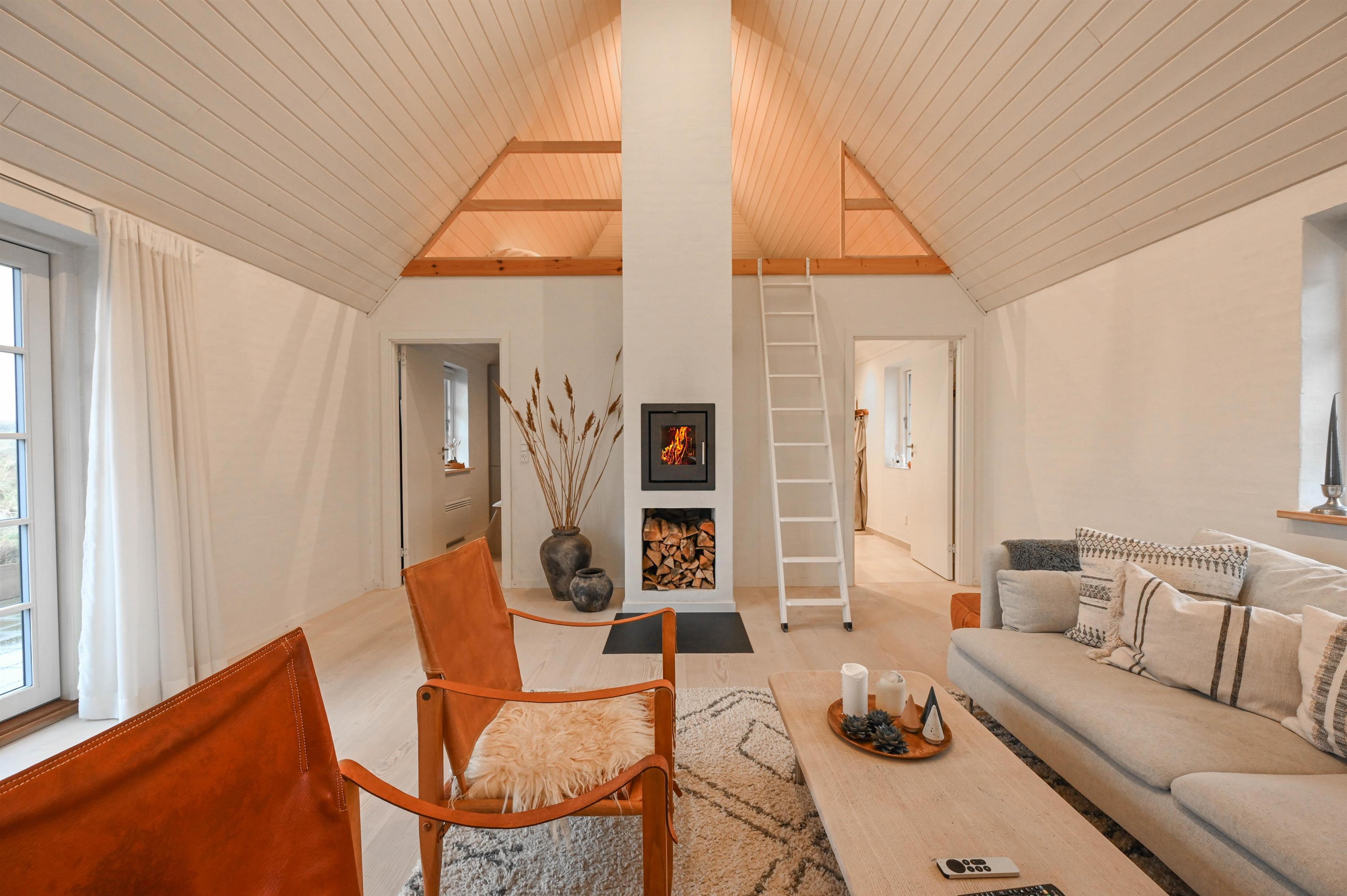 Indenfor rammes du af ægte sommerhusstemning. De smukke trægulve, de småsprossede vinduer, brændeovne, loftetagen hvor de gamle brædder på gulvet skaber den helt rigtige stemning. Det er så hyggeligt og skaber minder om gamle dage, samtidig med at det er moderne og lyst. Huset er sat i en stand, og stemning, som man sjældent oplever, i et ældre ”Vedersø Klit hus”.