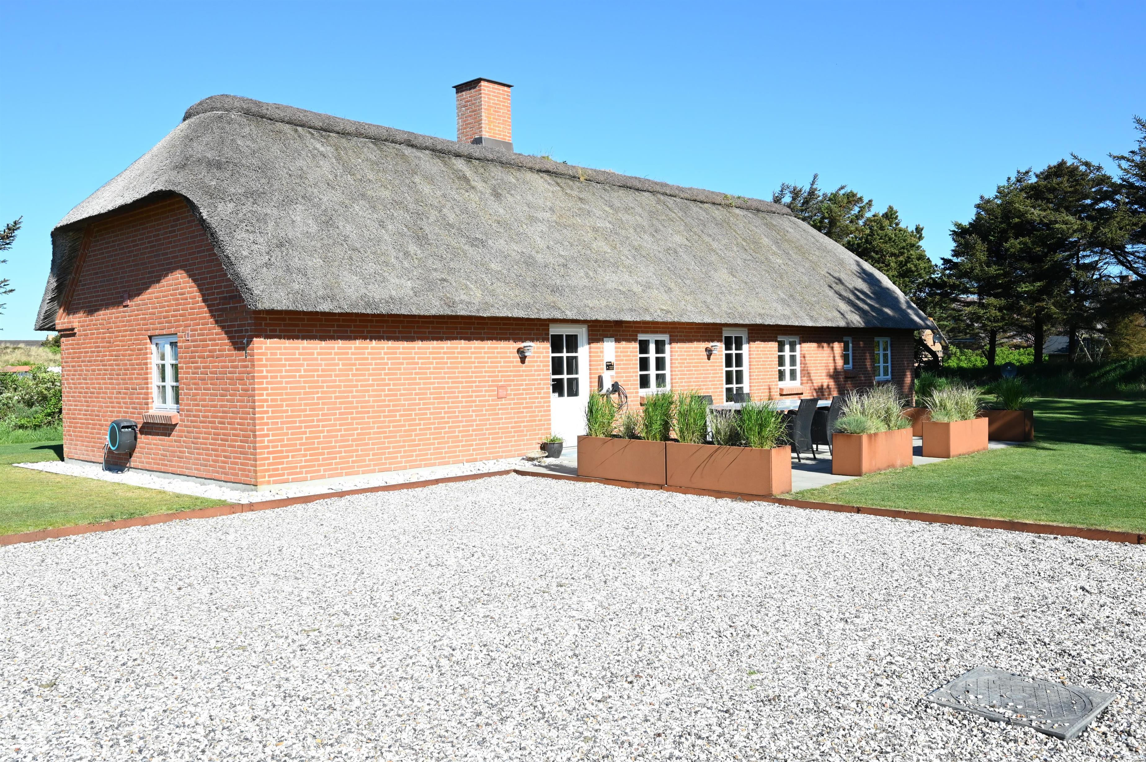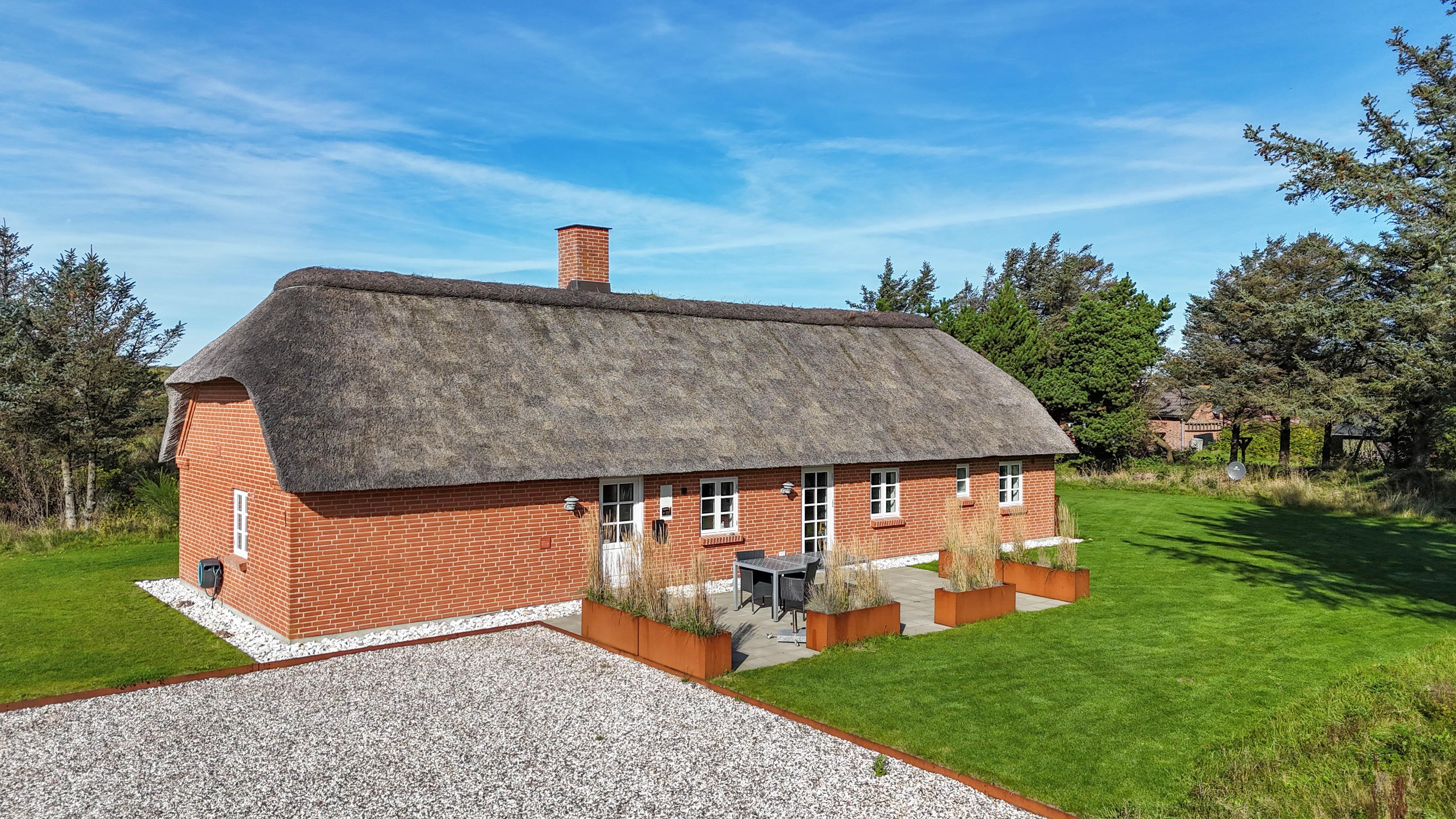 Velkommen til et skønt feriehus i naturskønne Vedersø Klit – et af Danmarks mest klassiske og stemningsfulde sommerhusområder med de karakteristiske stråtækte huse og den rå vestjyske natur lige udenfor døren.