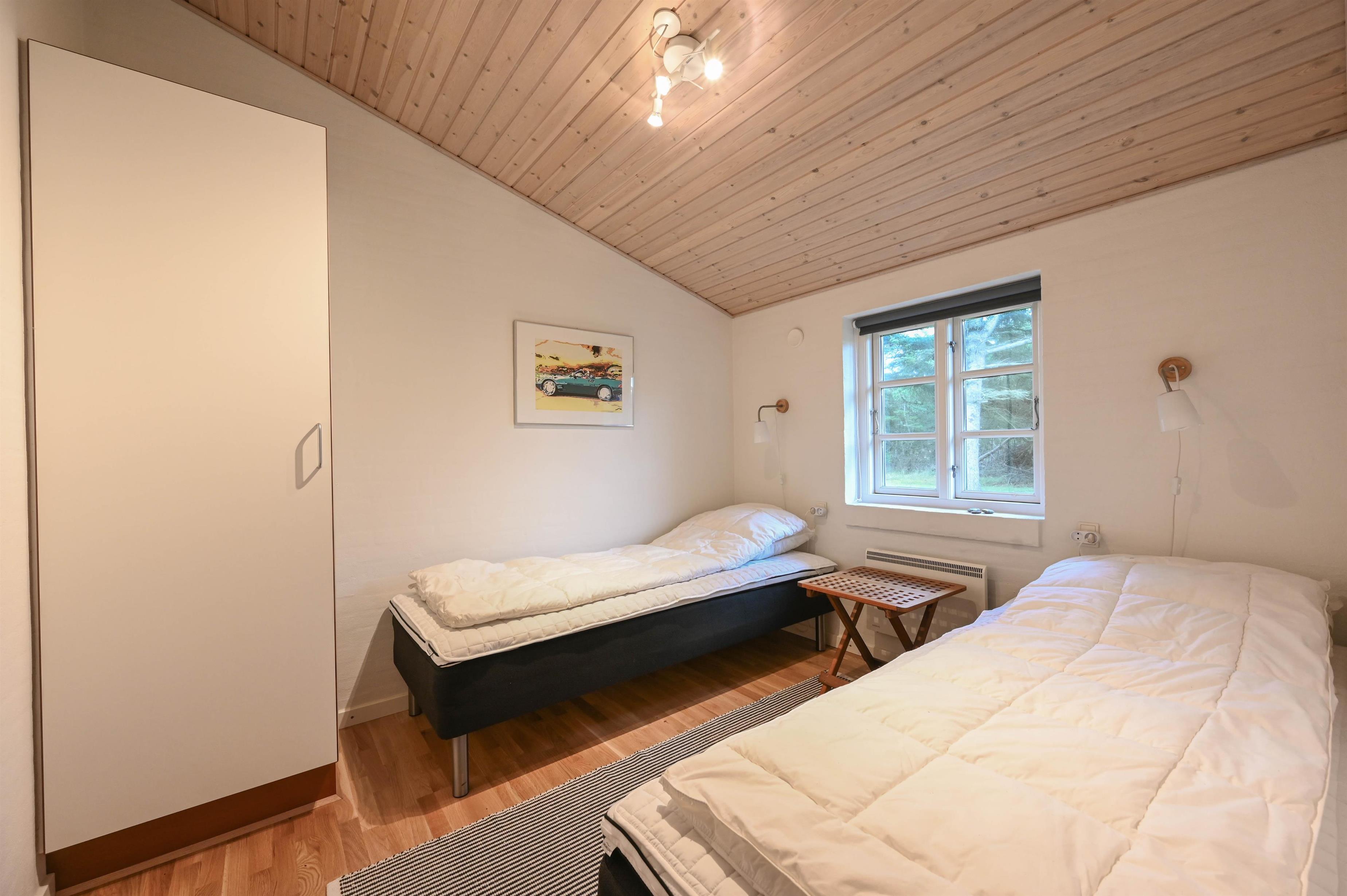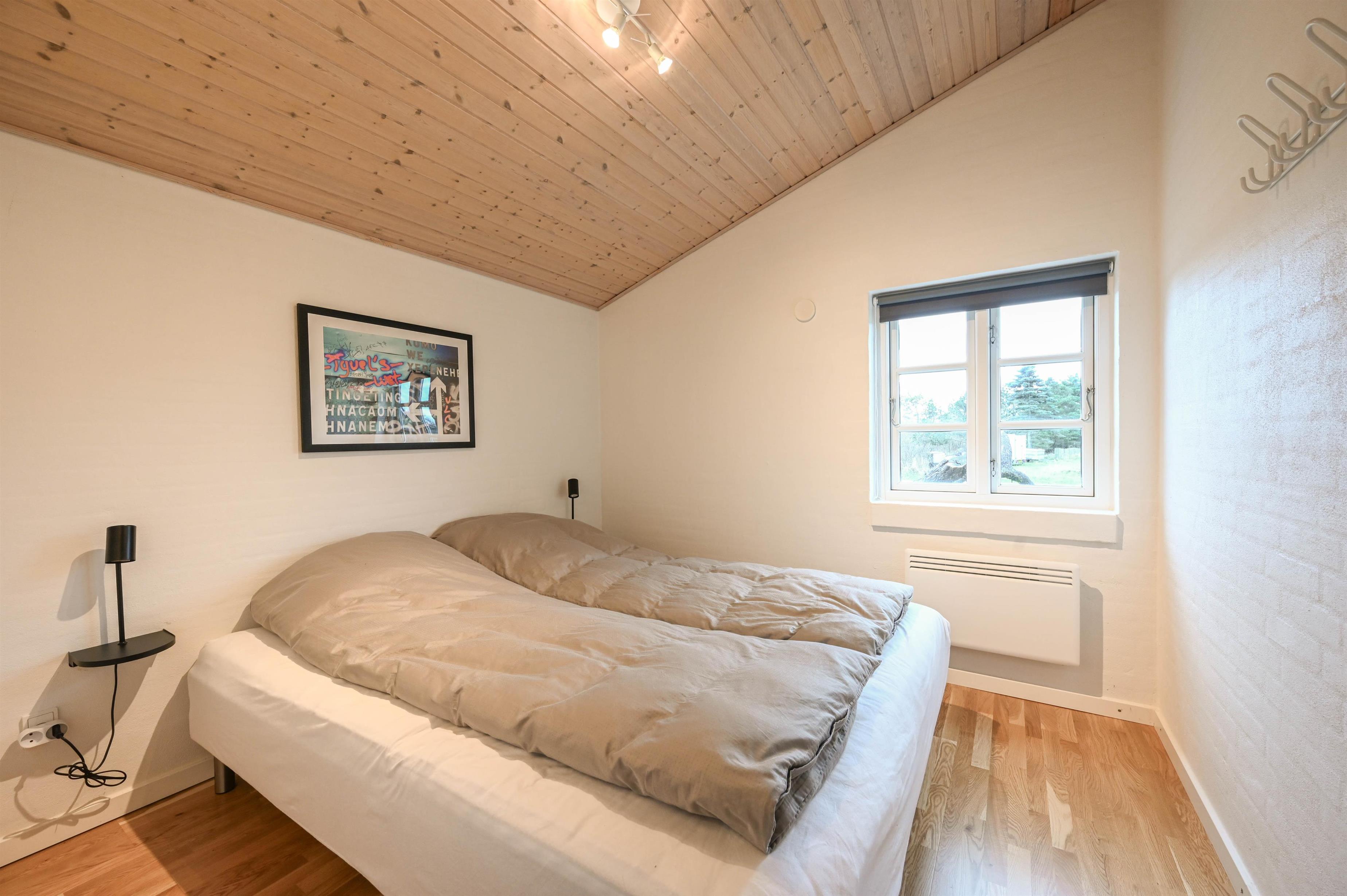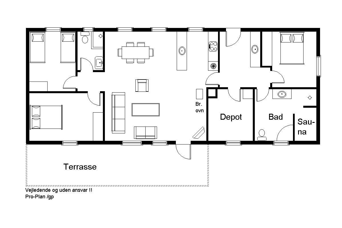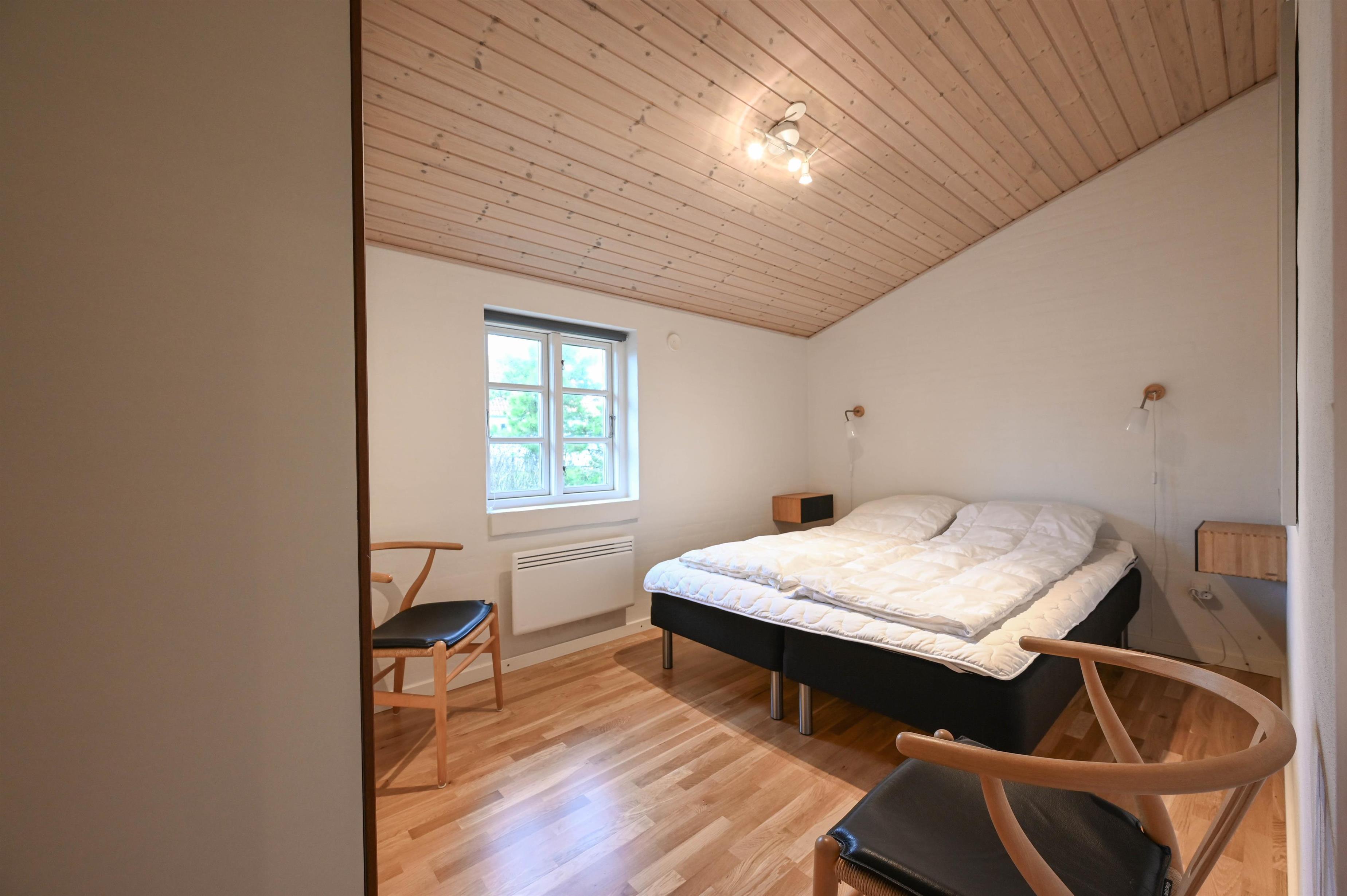 Huset er praktisk opdelt i to separate soveafdelinger, som gør det ideelt til to par, en familie med bedsteforældre – eller bare til at nyde lidt privatliv. I midten af huset finder du det store, åbne opholdsrum med hyggelig spiseplads og veludstyret køkken.