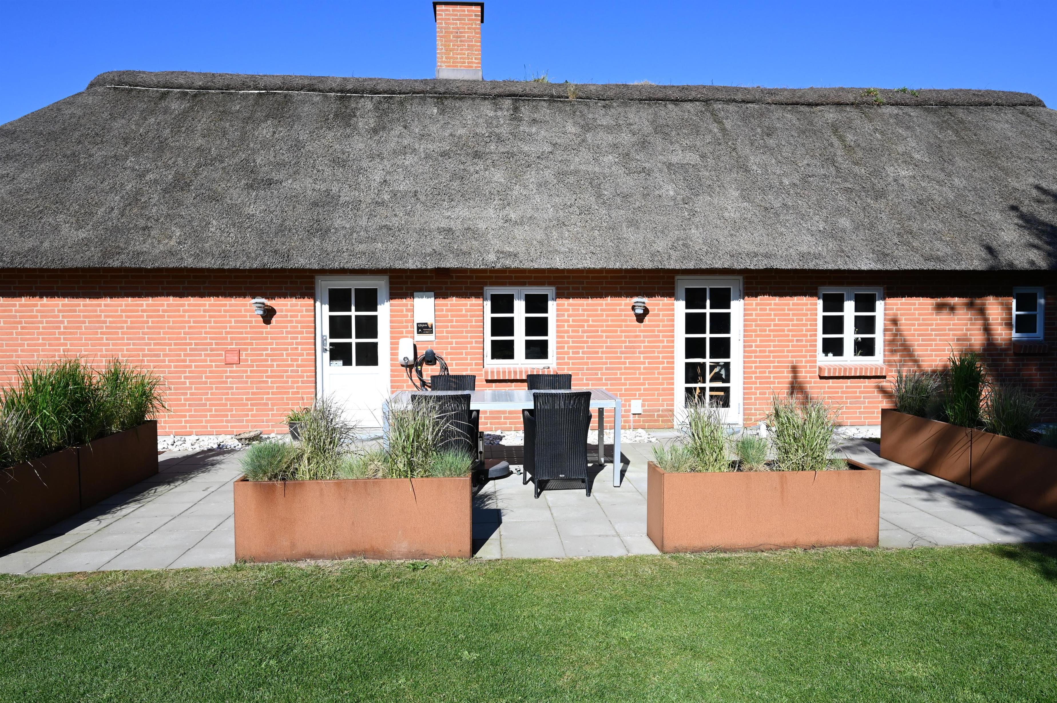 Huset er praktisk og smagfuldt indrettet med fokus på komfort og funktionalitet. Her er alle moderne faciliteter, du har brug for til en bekymringsfri ferie. Den 1.240 m² store grund er solrig og velplejet, med masser af plads til leg, afslapning og udeliv. Der er to dejlige terrasser – en mod øst og en mod vest – så du altid kan finde en hyggelig krog med sol eller læ. I sommersæsonen står havemøblerne klar til morgenkaffen, grillmiddagen eller aftenhyggen under åben himmel.
