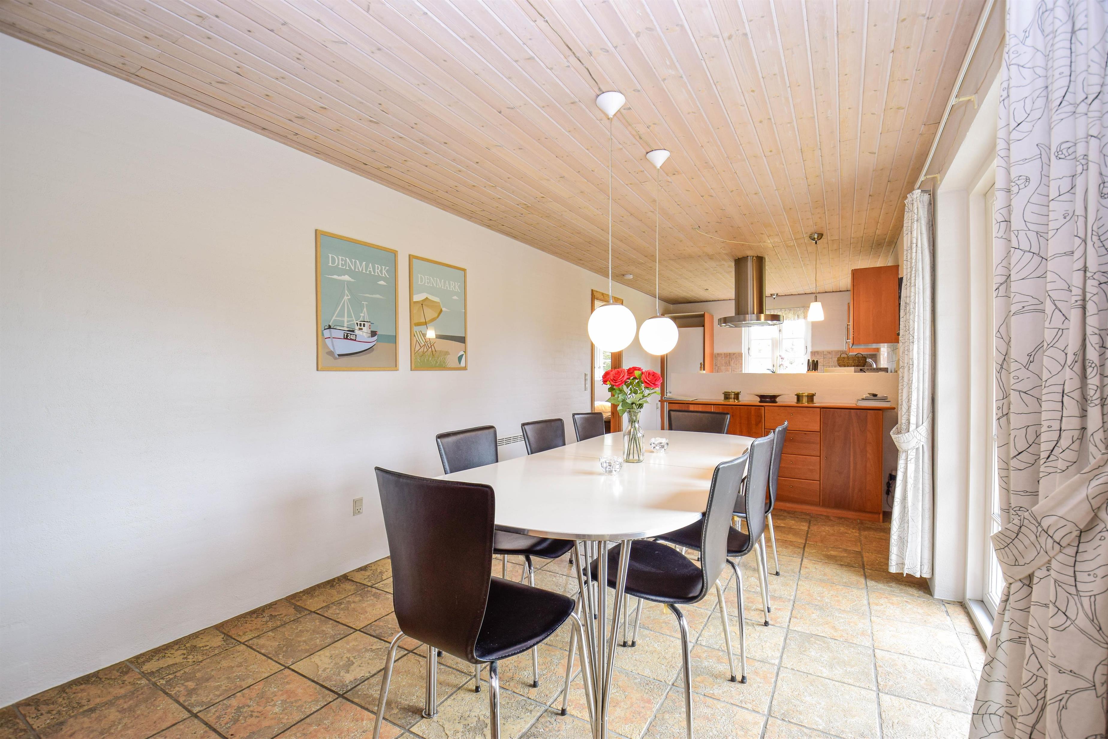 Fra det store åbne og moderne køkken-alrum er der direkte adgang til en stor sydvestvendt terrasse, hvor I kan nyde solen det meste af dagen og afslutte med en smuk solnedgang. Terrassen er det perfekte sted til hyggelige grillmiddage eller stille stunder med en god bog.
