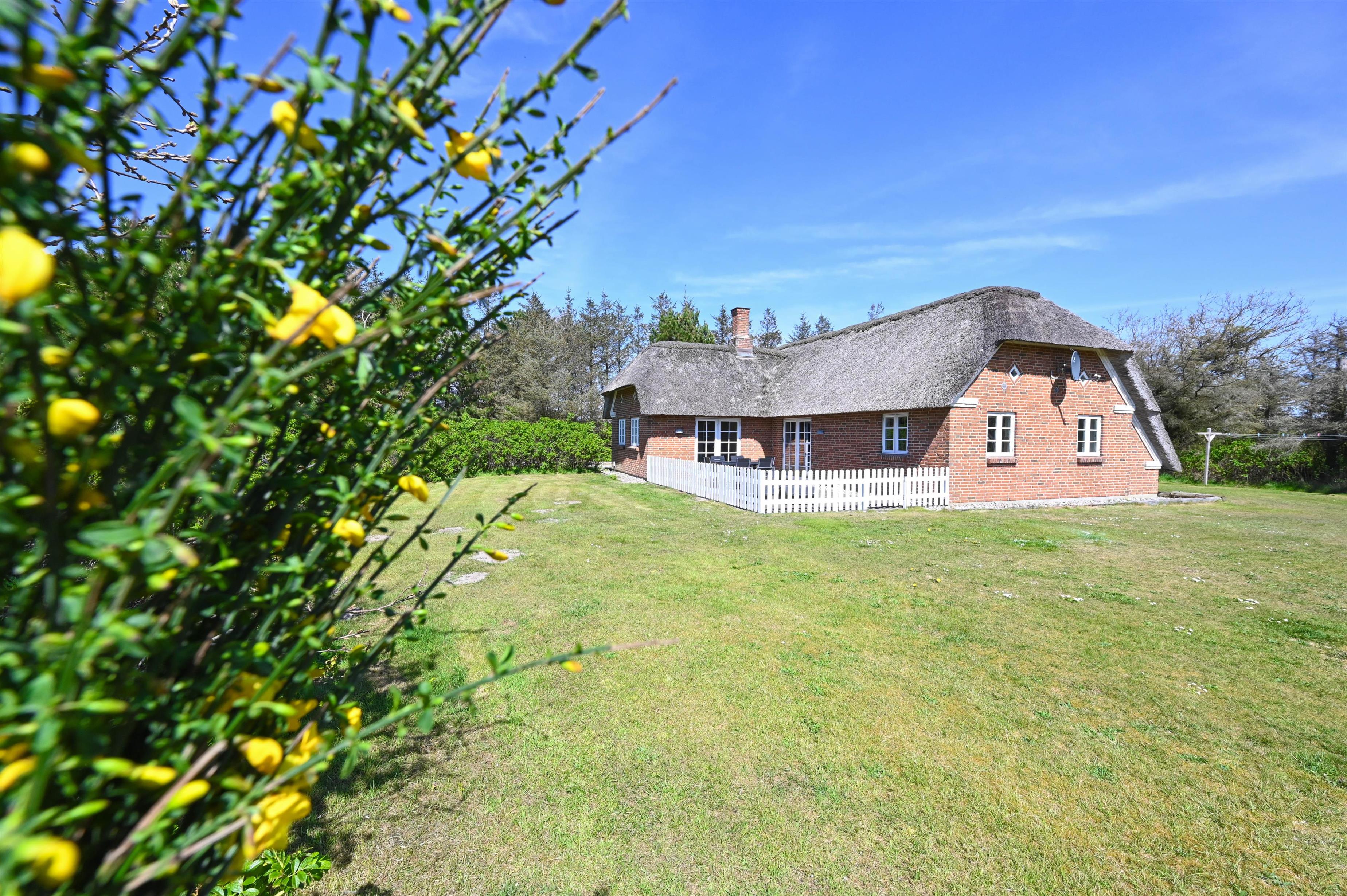 Kun få hundrede meter fra det betagende klitlandskab og sandstrand ligger dette smukke eksklusive feriehus, perfekt placeret på en rummelig og delvist plejet naturgrund på ca. 2000 m² med gode læforhold. Her finder I ro og afslapning i naturskønne omgivelser, der skaber den perfekte baggrund for en mindeværdig ferie.