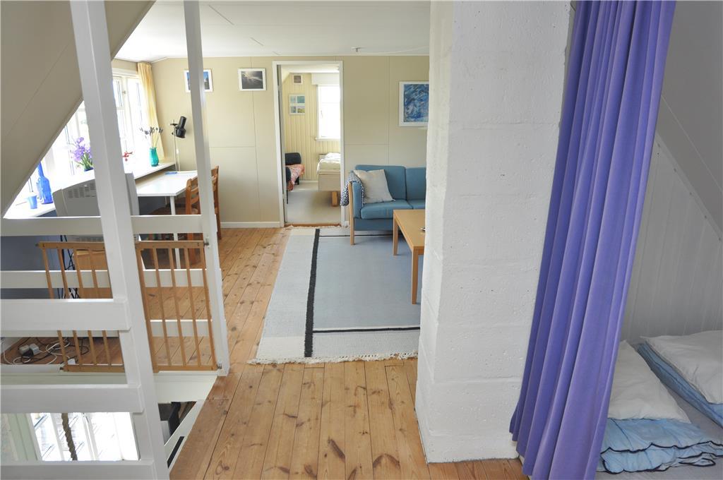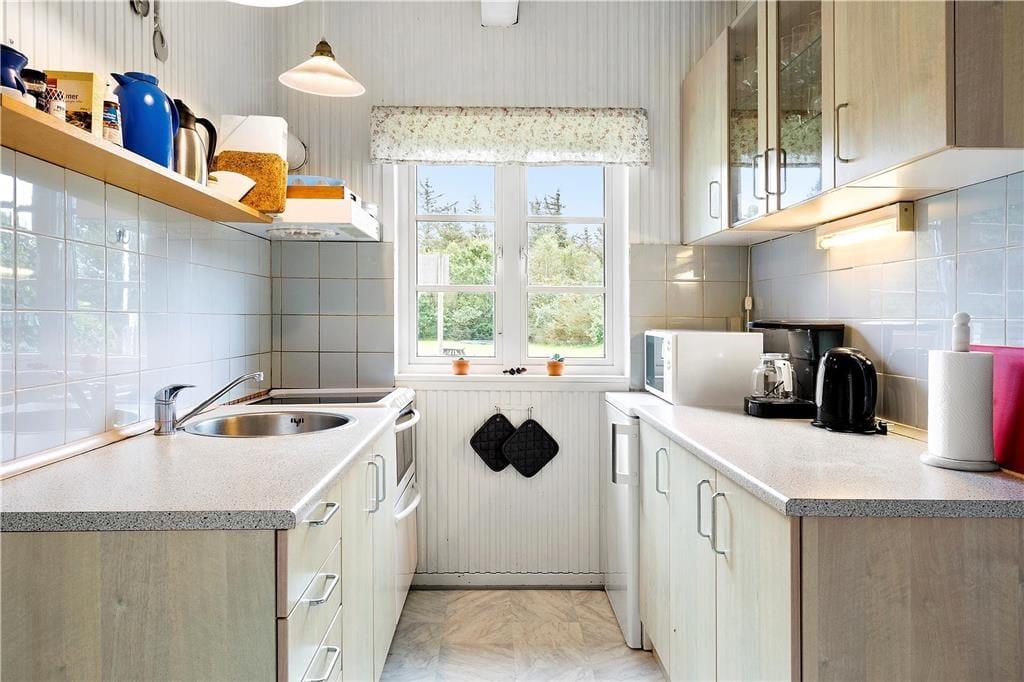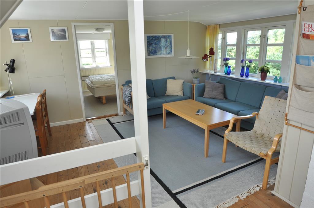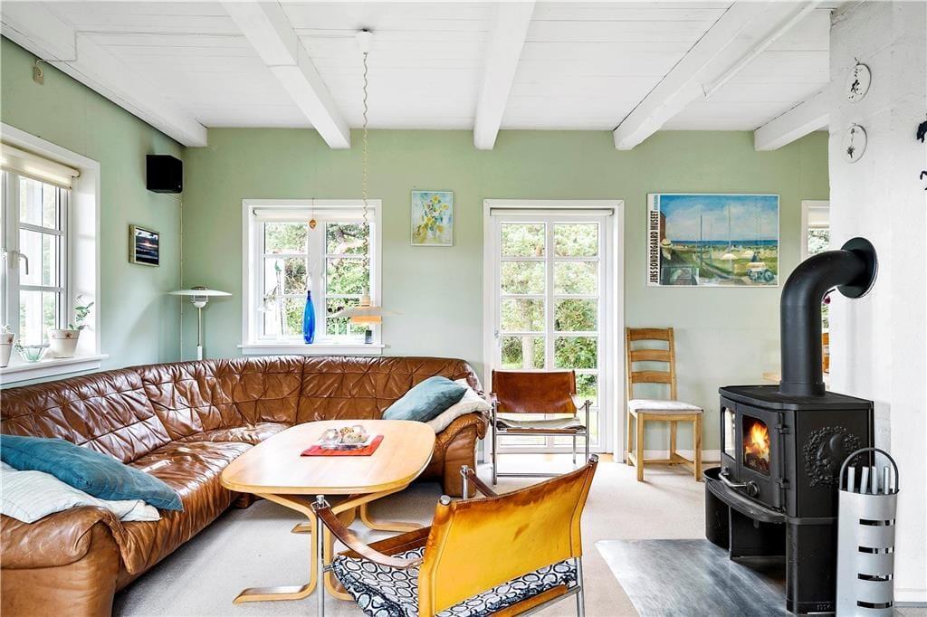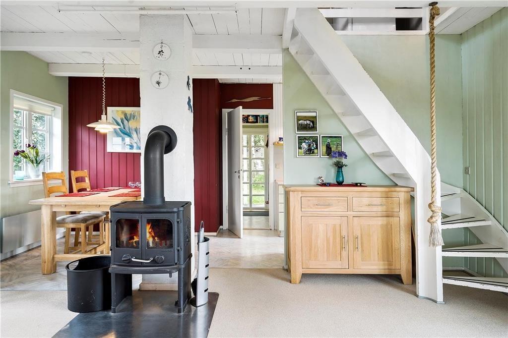 Landlig charme pryder dette skønne feriehus. Indenfor i huset bliver I mødt af en dejlig fornemmelse der bare emmer af ro, og roen bliver understøttet af de lysegrønne vægge i stuen. Når I kommer hjem efter en skøn gåtur i området, så tænd op for brændeovnen og nyd den dejlige varme og hyggelige knitrende lyd, imens I taler om hvad der skal udforskes i morgen. Opholdsstuen ligger i åben forbindelse med den hyggelige spisekrog og det veludstyrede køkken der bare kalder på kulinariske oplevelser for hele familien.