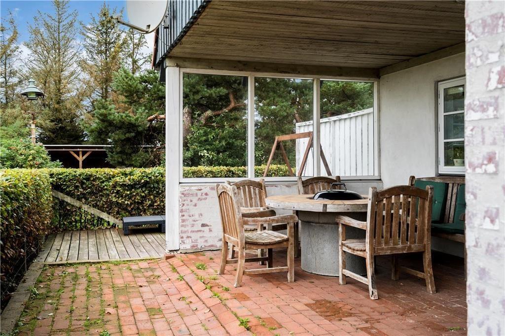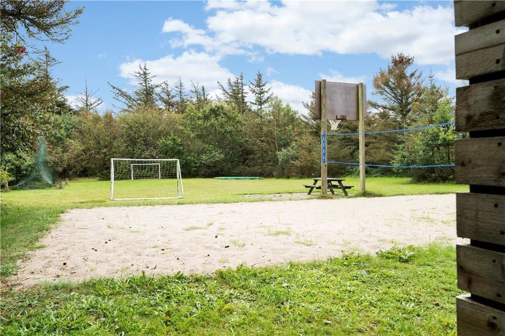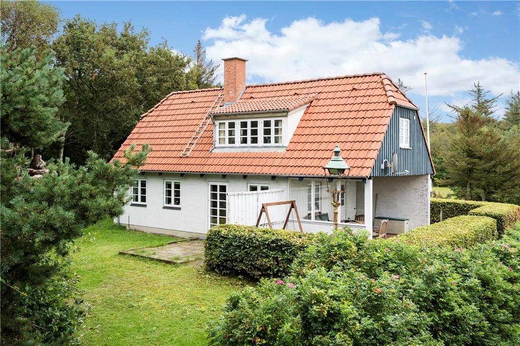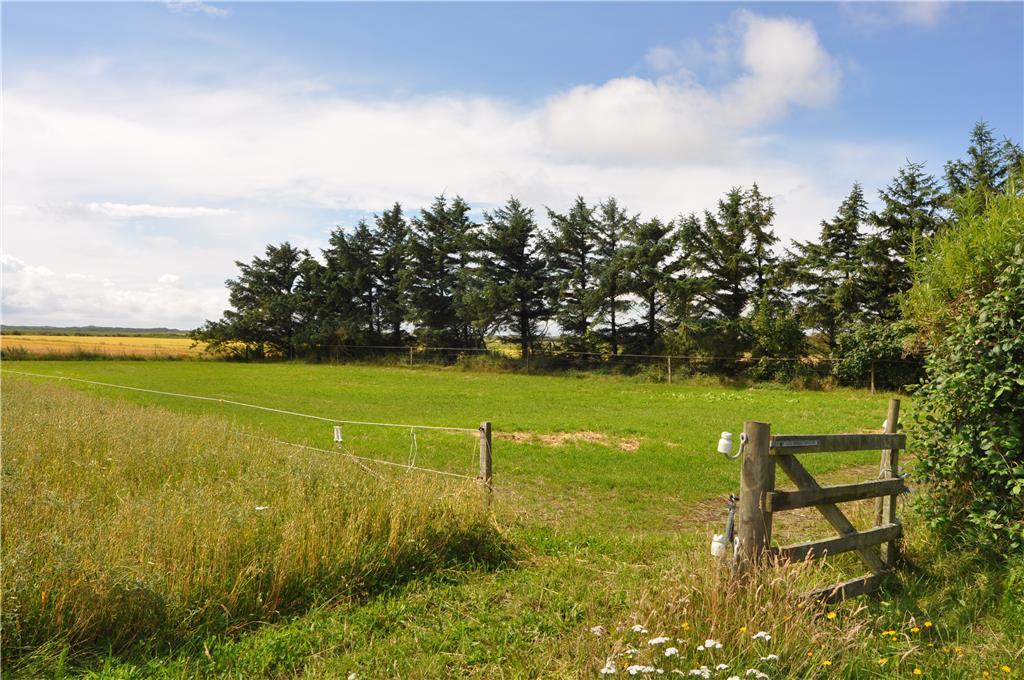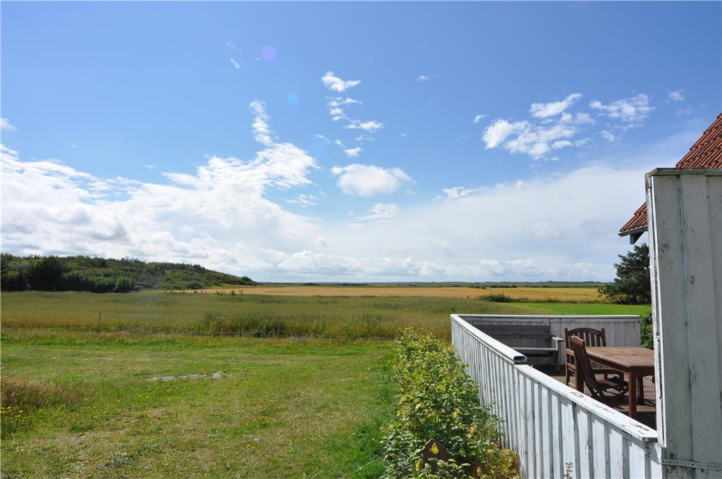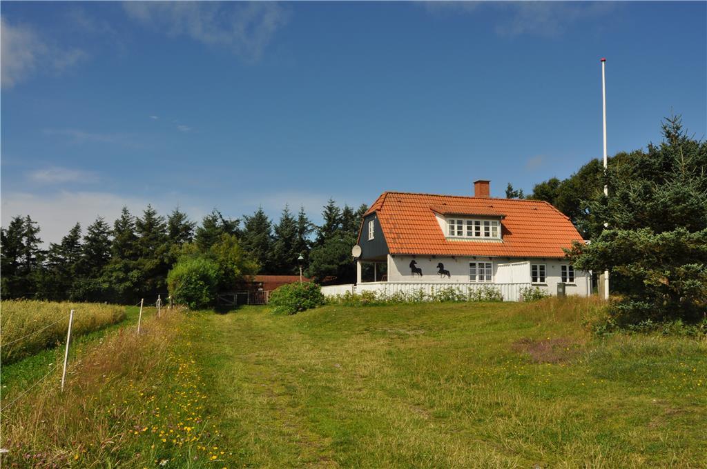 Ikke langt fra Vedersø Klit finder I dette skønne feriehus, huset ligger solidt placeret med udsigt ud til åbne marker. Med en den store naturskønne grund på 10.000 m2 er der god plads at boltre jer på, både voksne, børn og hunden. På grunden finder I en stor legeplads til familiens yngste, med både gyngestativ, volleyball net, basket net og fodbold mål, så her er der altså lagt op til den aktive ferie, og når I har fået sved på panden så sæt jer op på det en af de mange murstensbelagte terrasser der er omkring huset, eller tag et velfortjent hvil i den lille bjælkehytte hvor der er sauna i.