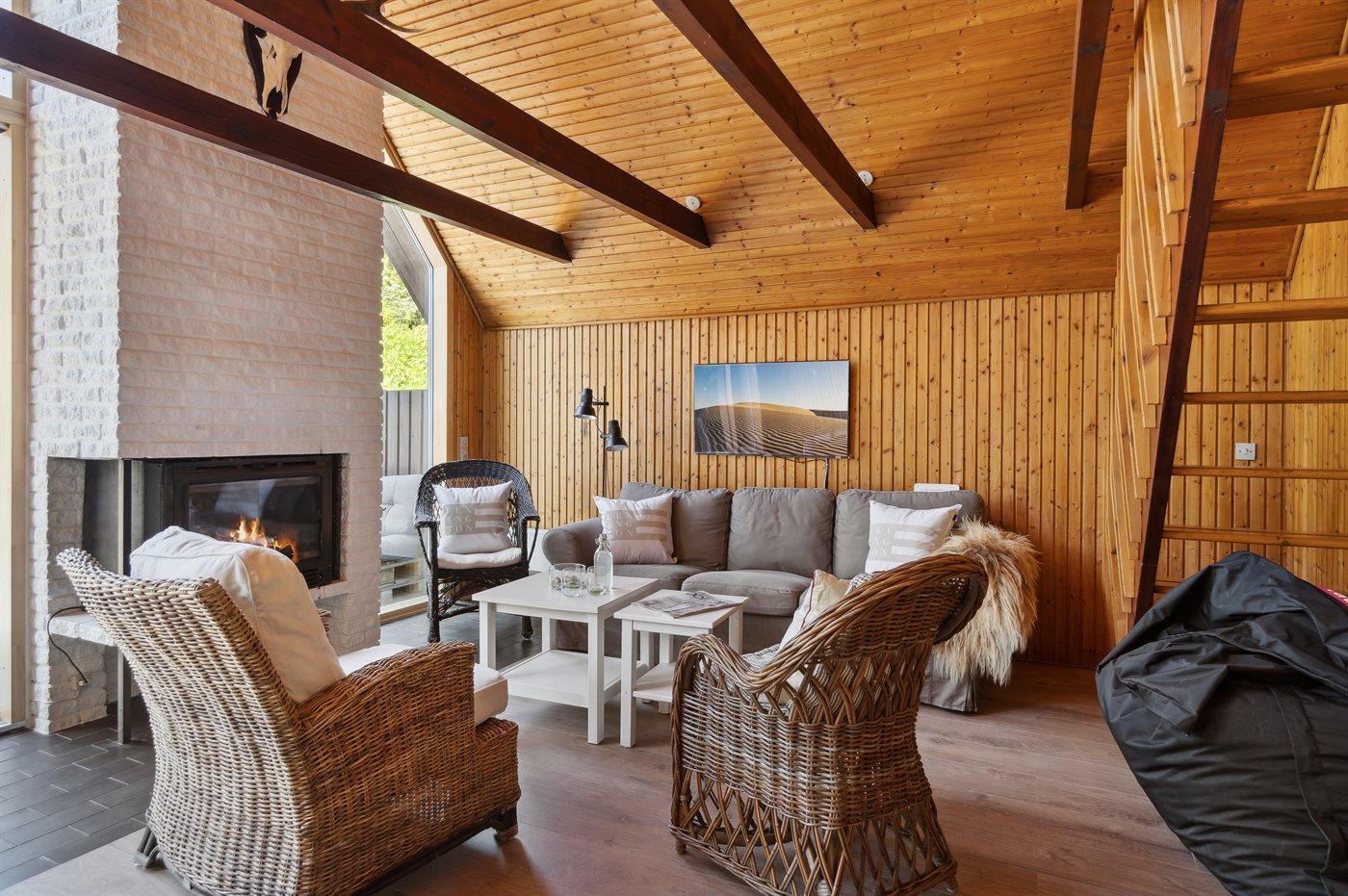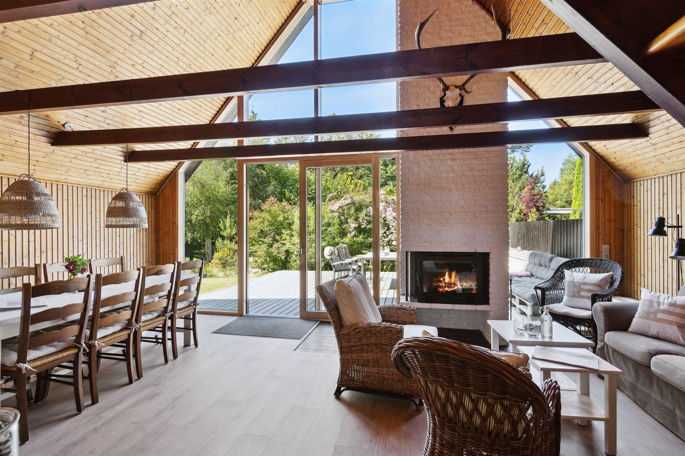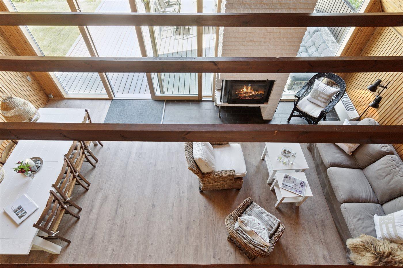 Køkkenet er veludstyret og har køleskab med 10 liter frysekapacitet. I stuen er der loft til kip med krystallysekrone og møbler, der egner sig til families afslapning, samt en pejs. Til de små er der 1 stk. Trip Trap barnestol. Der er 4 keramiske kogeplader, varmluftovn, mikrobølgeovn samt opvaskemaskine.