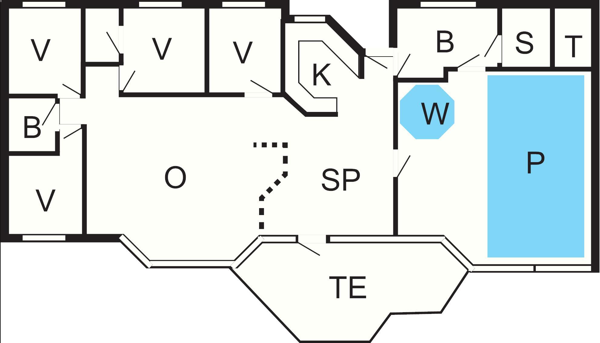 Synes I, at vejen til stranden er for lang, kan I fornøje jer i det 41 m² store poolrum med den 21 m² store swimmingpool og det afslappende 5-personers spabad. Varmen fås i saunaen.