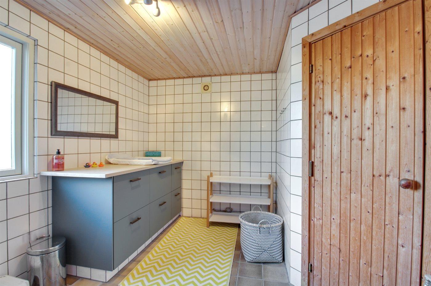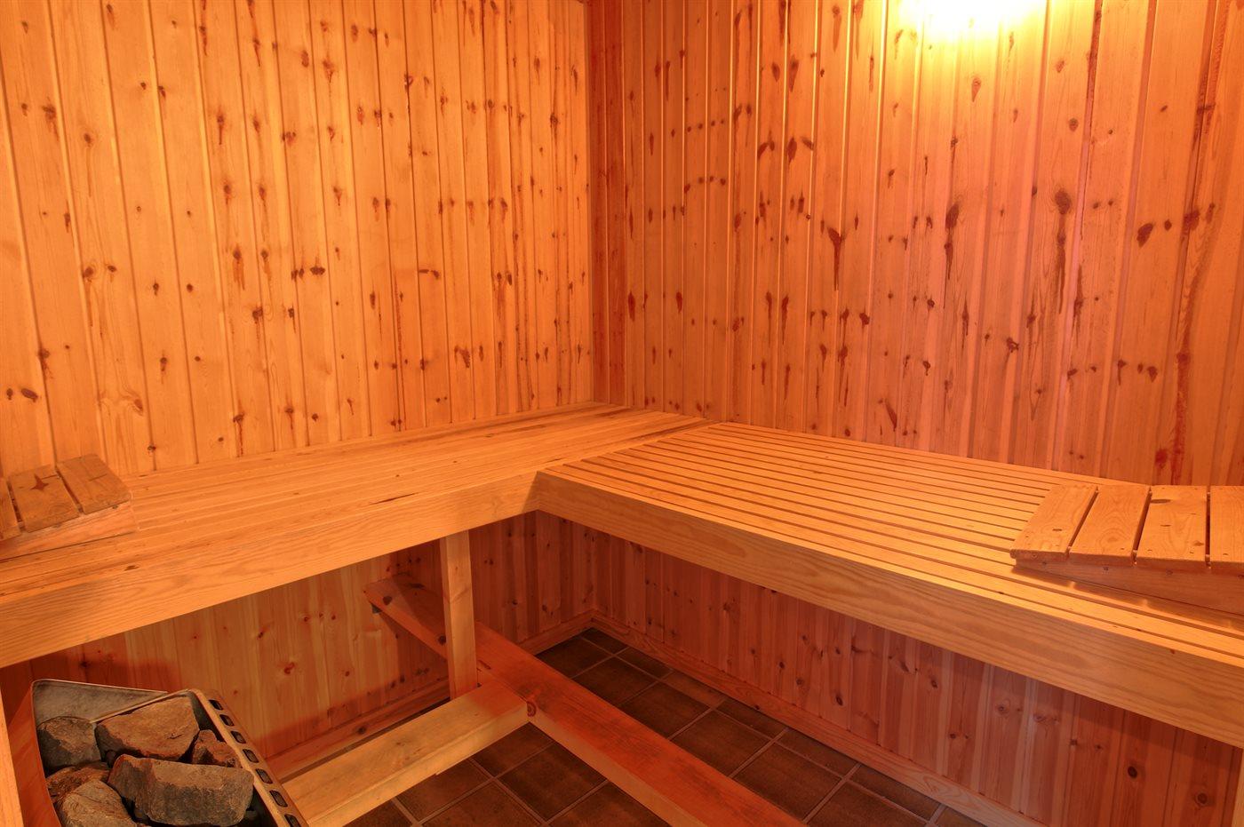 Der er 2 badeværelser med bruseniche og 2 toiletter. Der er gulvvarme på 2 badeværelser. I saunaen er der mulighed for afslapning.