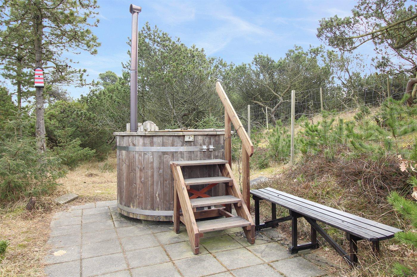Ferieboligen er beliggende på en 1850 m² stor naturgrund. Der er 600 m til havet. Nærmeste forretning er beliggende i en afstand af 300 m. Til ferieboligen hører 45 m² terrasseareal. Der er redskabsrum. Gynge. Sandkasse. Udendørs bruser. Der er carport til rådighed. Parkering ved ferieboligen.