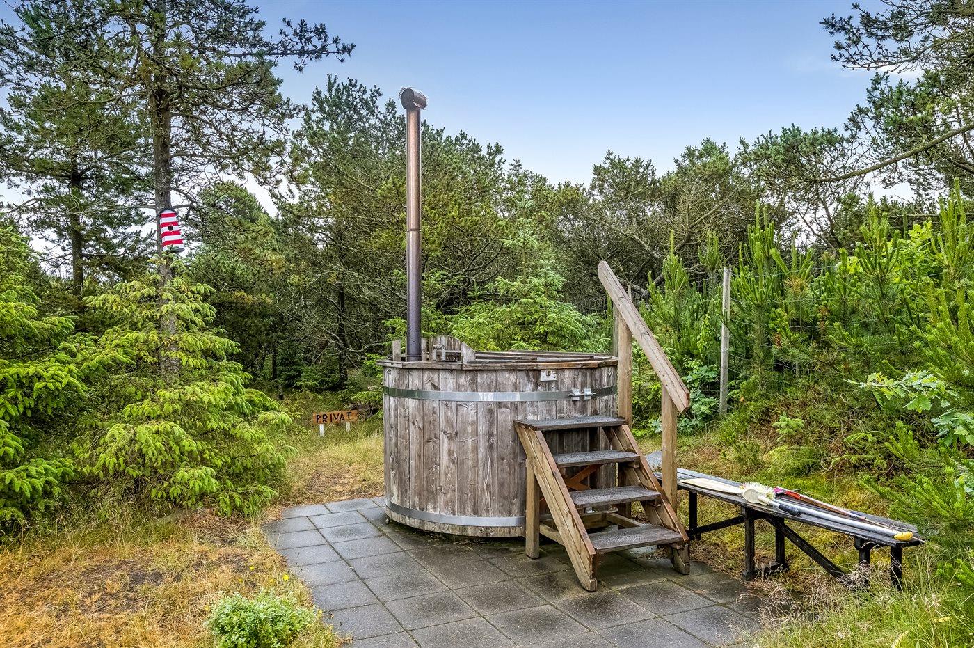 Hyggeligt sommerhus nær Vejers Strand med sauna, vildmarkskar og stor naturgrund.