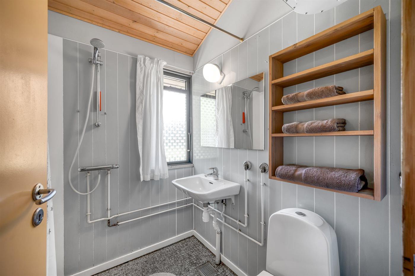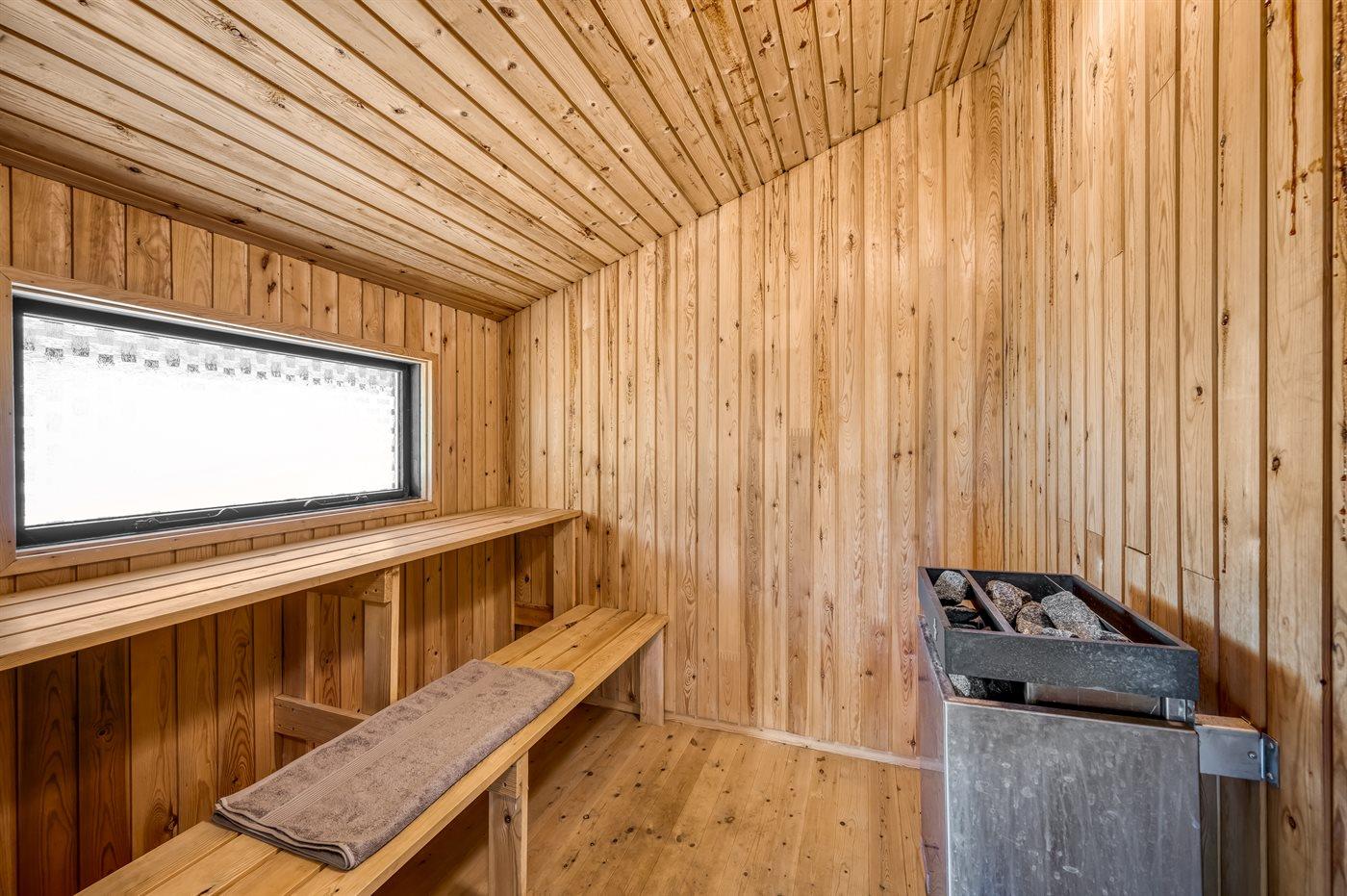 Der er 1 badeværelse med bruser og 1 toilet. I saunaen er der mulighed for afslapning.