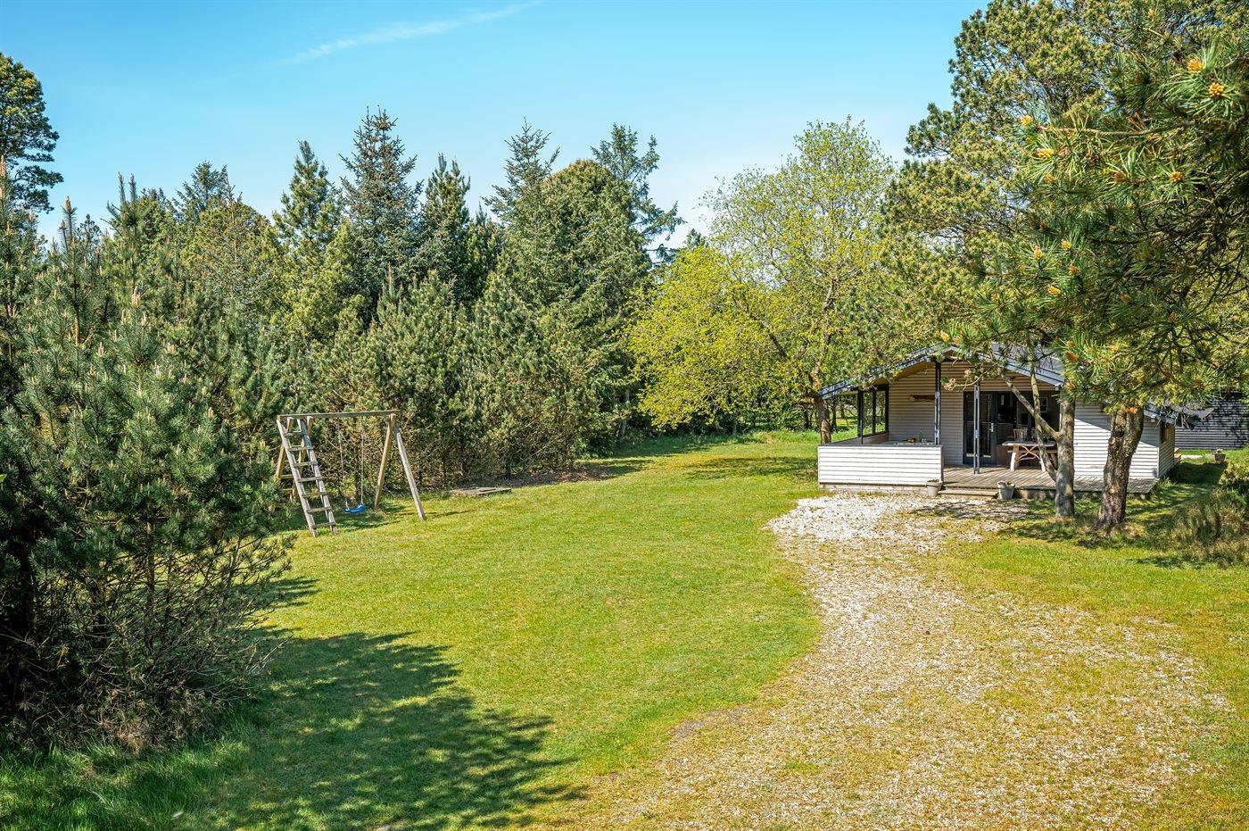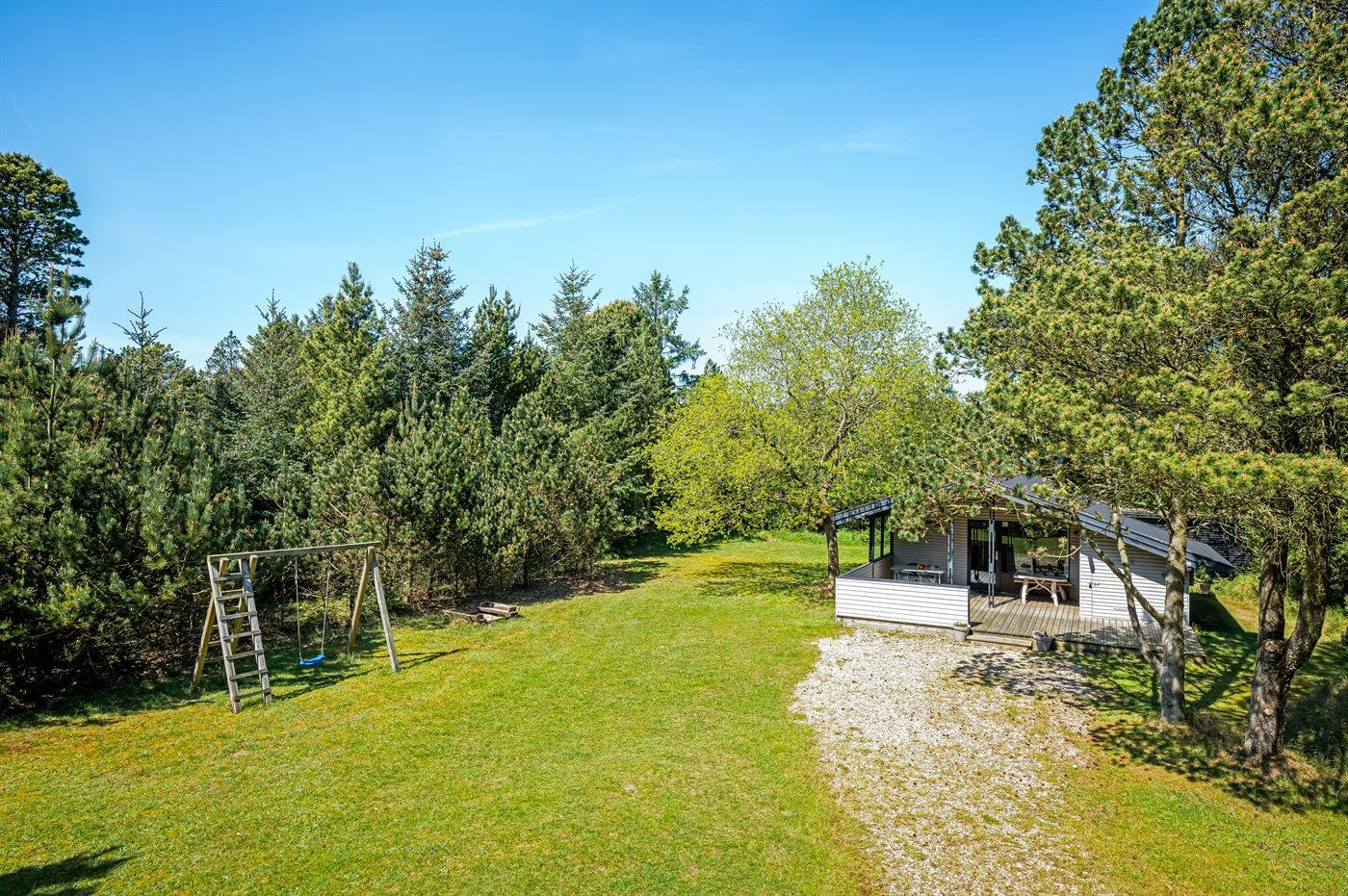 Ferieboligen er beliggende på en 1500 m² stor naturgrund. Der er 1500 m til havet. Nærmeste forretning er beliggende i en afstand af 300 m. Til ferieboligen hører 14 m² terrasseareal. Desuden er der 12 m² overdækket terrasse. Gynge. Sandkasse. Parkering ved ferieboligen.