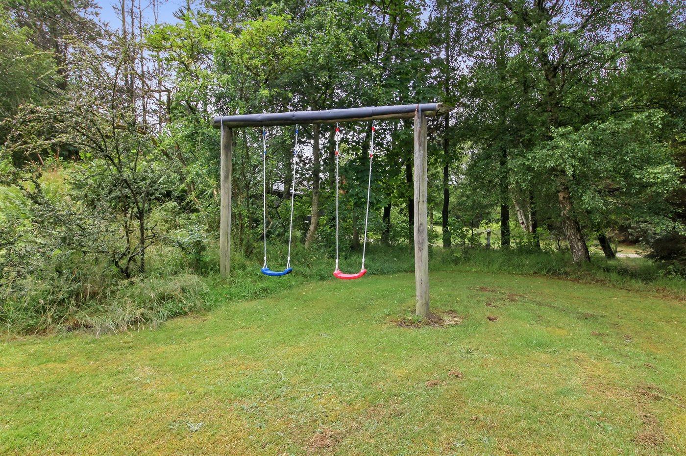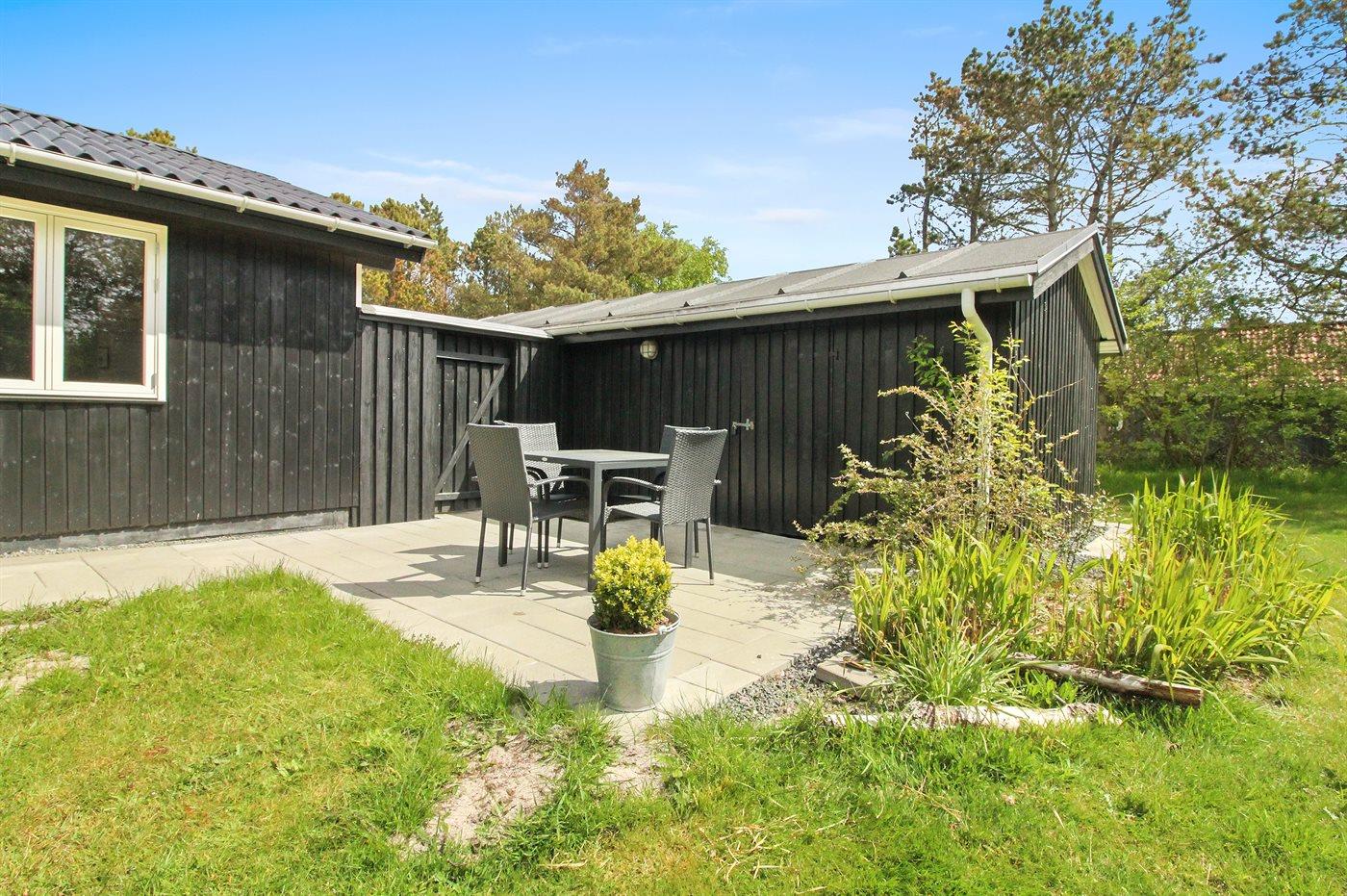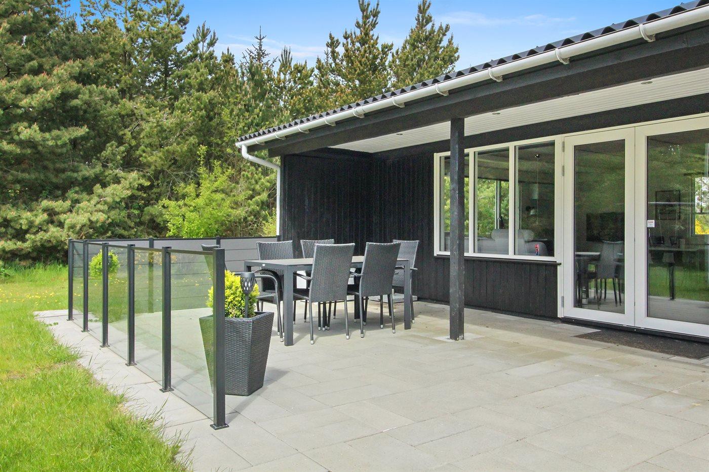Ferieboligen er beliggende på en 2000 m² stor naturgrund. Der er 1500 m til havet. Nærmeste forretning er beliggende i en afstand af 400 m. Til ferieboligen hører 75 m² terrasseareal. Desuden er der 11 m² overdækket terrasse. Gynge. Sandkasse. Der er installeret stik til opladning af elbil. Type 2 stik. Parkering ved ferieboligen.