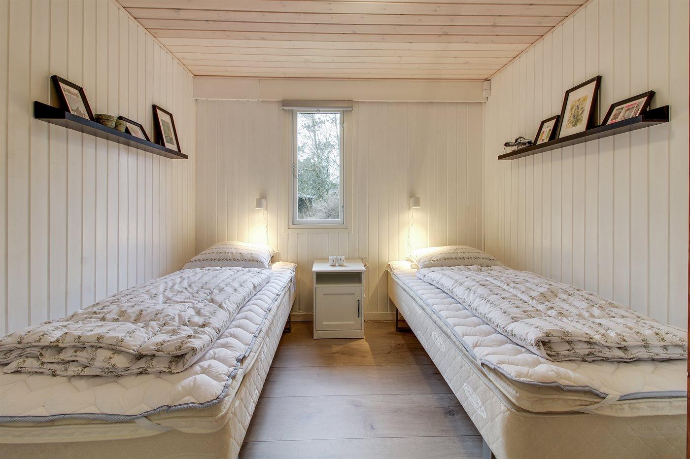Der er i alt 3 soveværelser. Sovepladserne fordeler sig på: 4 sovepladser i dobbeltsenge. 2 sovepladser i enkeltsenge.