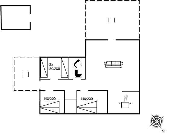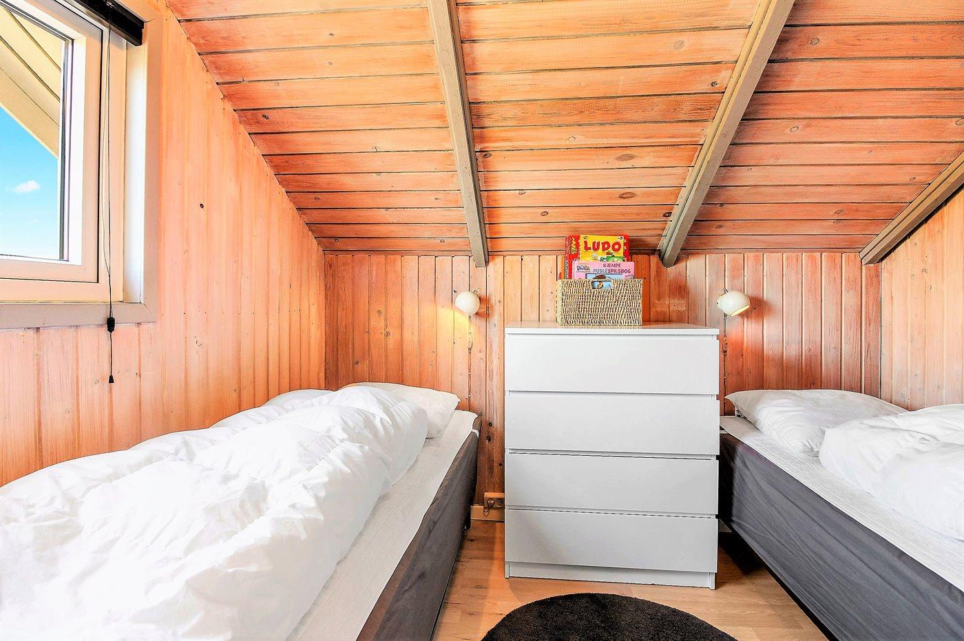 Der er i alt 3 soveværelser. Sovepladserne fordeler sig på: 4 sovepladser i dobbeltsenge. 2 sovepladser i enkeltsenge.