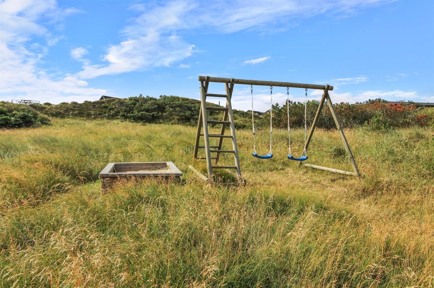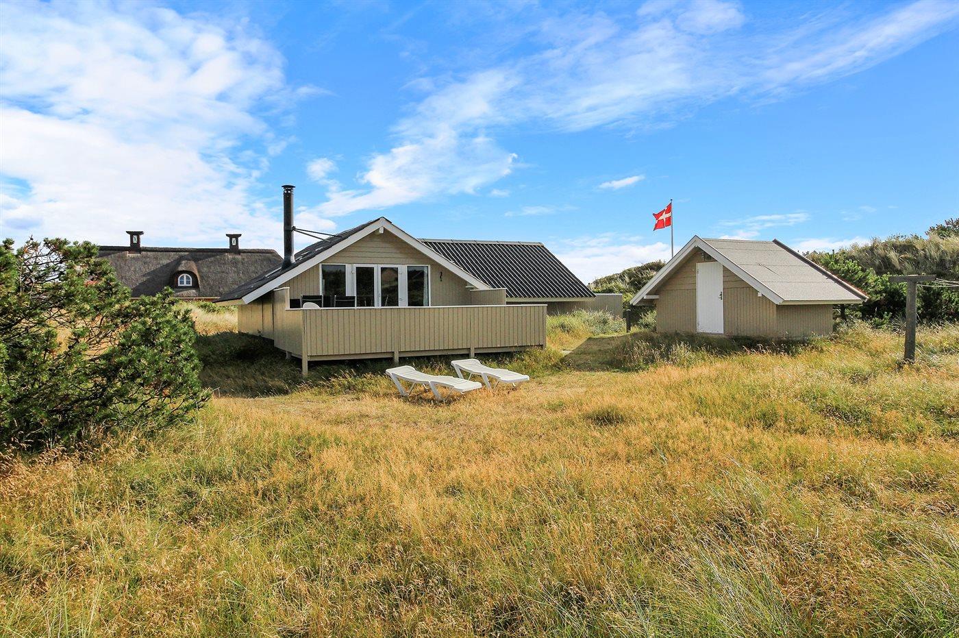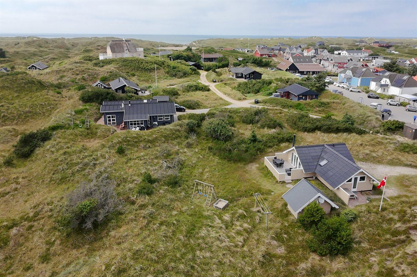 Ferieboligen er beliggende på en 2400 m² stor klitgrund. Der er 300 m til havet. Nærmeste forretning er beliggende i en afstand af 100 m. Til ferieboligen hører 30 m² terrasseareal. Gynge. Sandkasse. Grill til rådighed. Parkering ved ferieboligen.