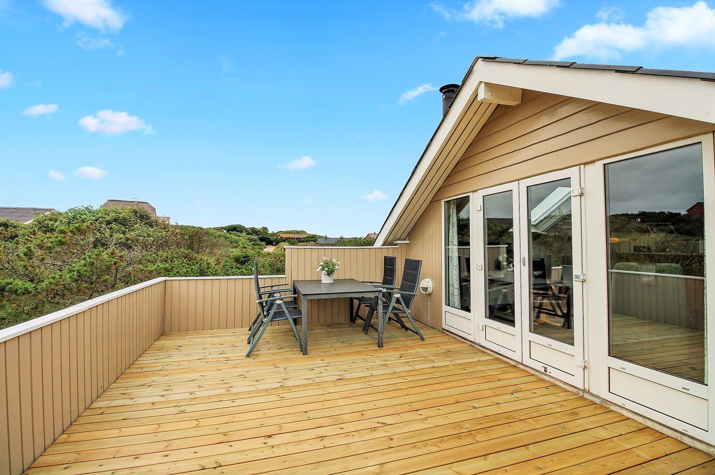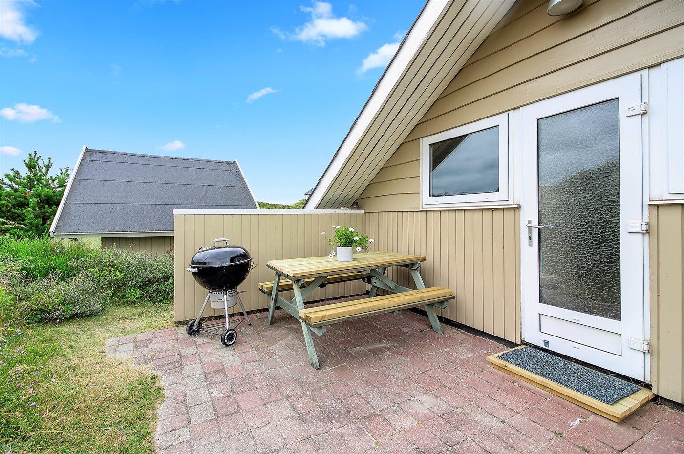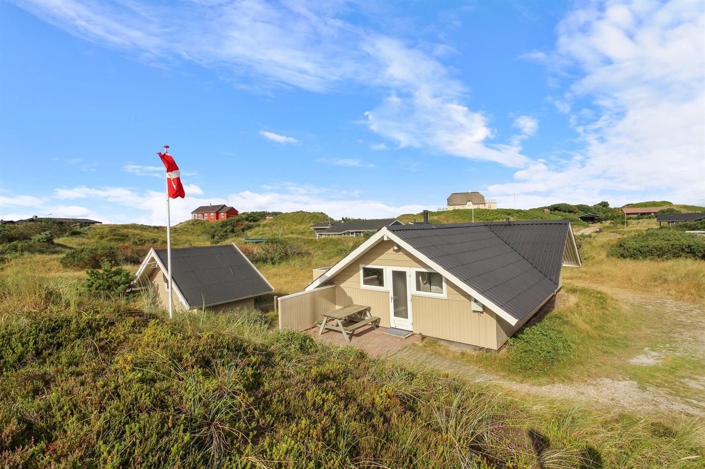 Ferieboligen er beliggende på en 2400 m² stor klitgrund. Der er 300 m til havet. Nærmeste forretning er beliggende i en afstand af 100 m. Til ferieboligen hører 30 m² terrasseareal. Gynge. Sandkasse. Grill til rådighed. Parkering ved ferieboligen.