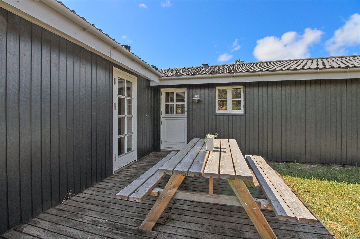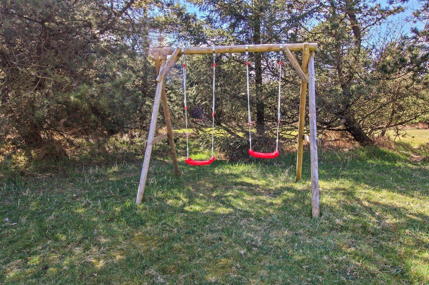 Ferieboligen er beliggende på en 1700 m² stor naturgrund. Der er 1300 m til havet. Nærmeste forretning er beliggende i en afstand af 500 m. Til ferieboligen hører 22 m² terrasseareal. Desuden er der 10 m² overdækket terrasse. Gynge. Sandkasse. Parkering ved ferieboligen.
