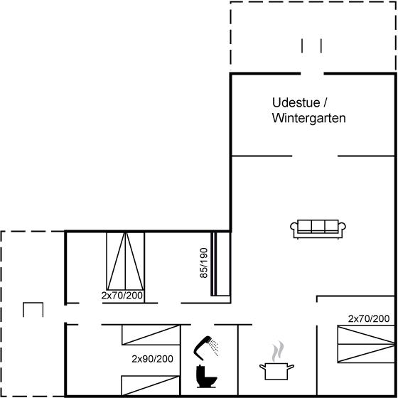 Der er i alt 4 soveværelser. Sovepladserne fordeler sig på: 2 sovepladser i dobbeltseng. 2 sovepladser i enkeltsenge. 2 sovepladser i køjeseng.