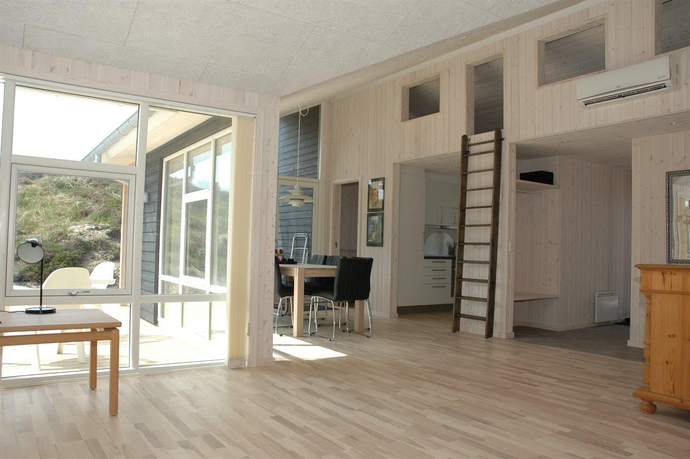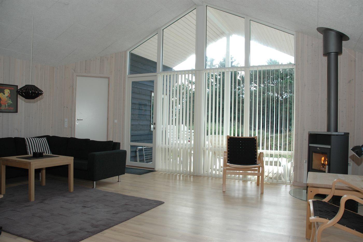 Flot sommerhus fra 2012 nær Vejers Strand med sauna, brændeovn og stor terrasse på naturgrund.