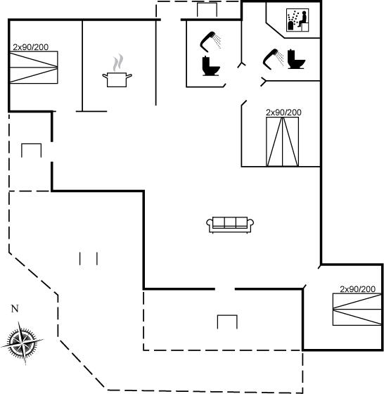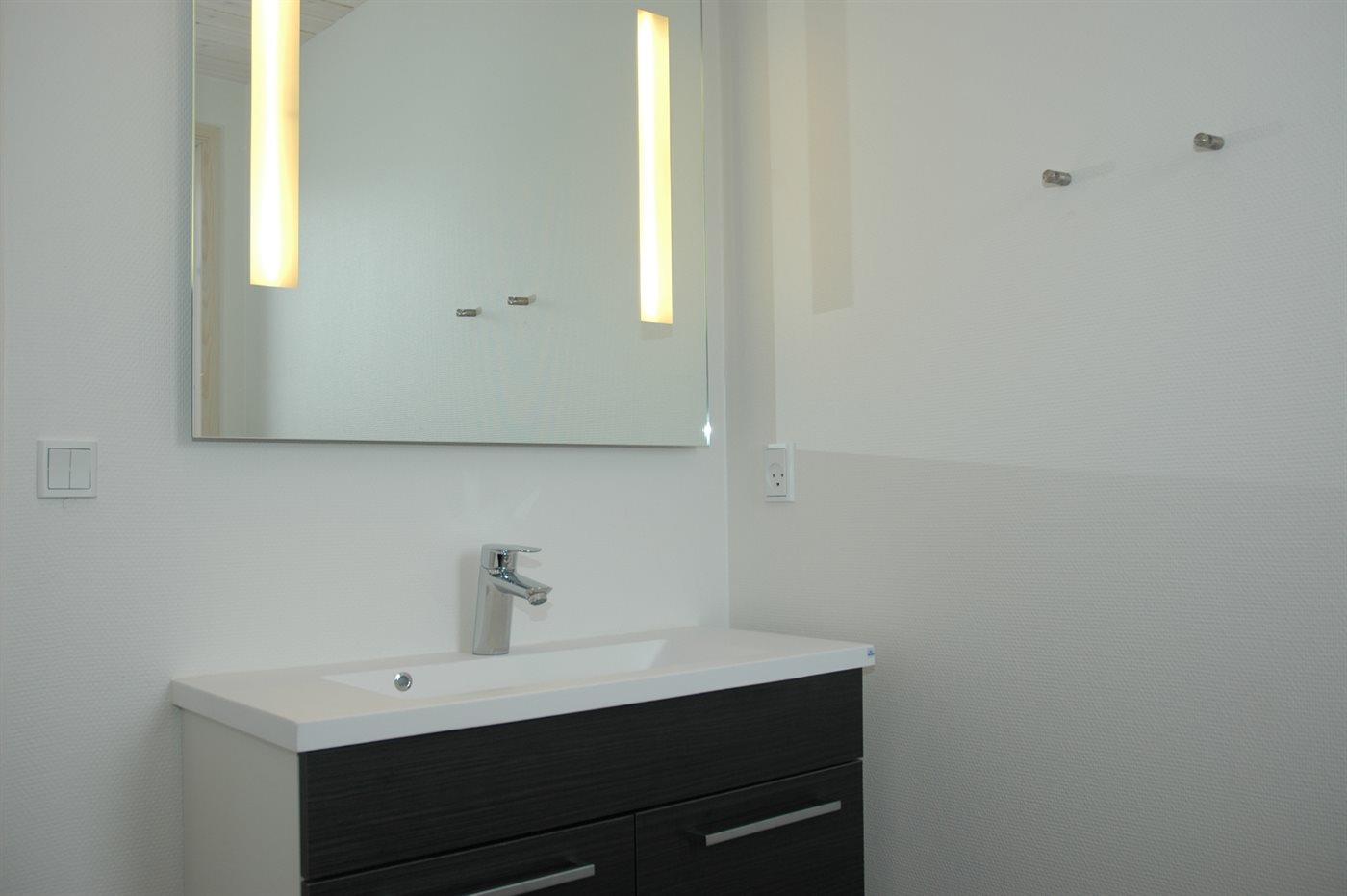 Der er 2 badeværelser med bruseniche og 2 toiletter. Der er gulvvarme på 2 badeværelser. I saunaen er der mulighed for afslapning.