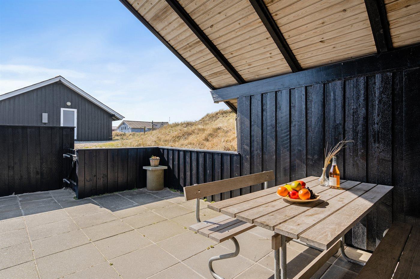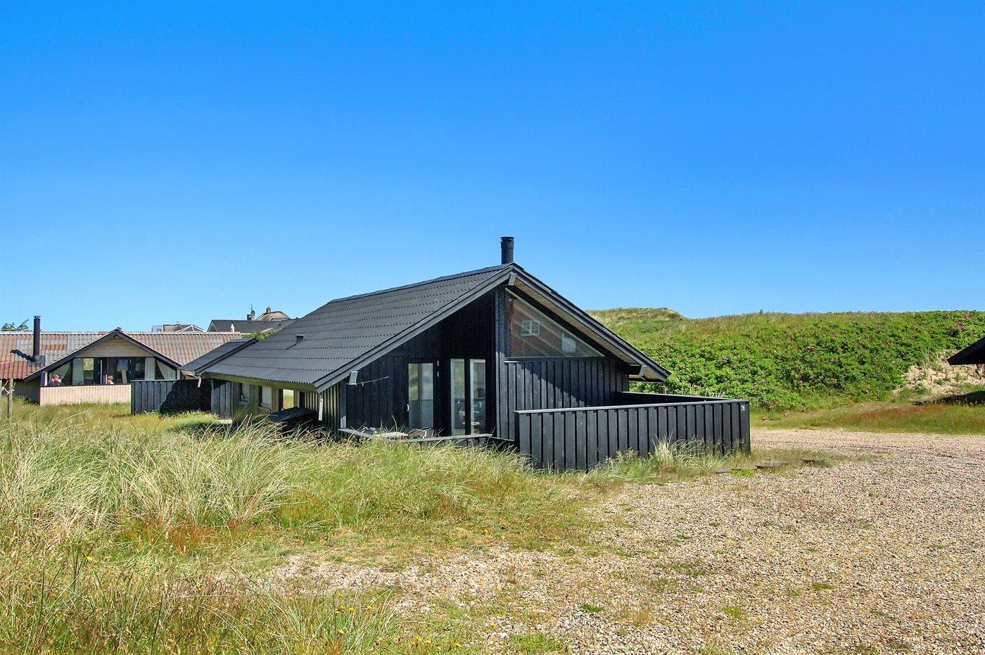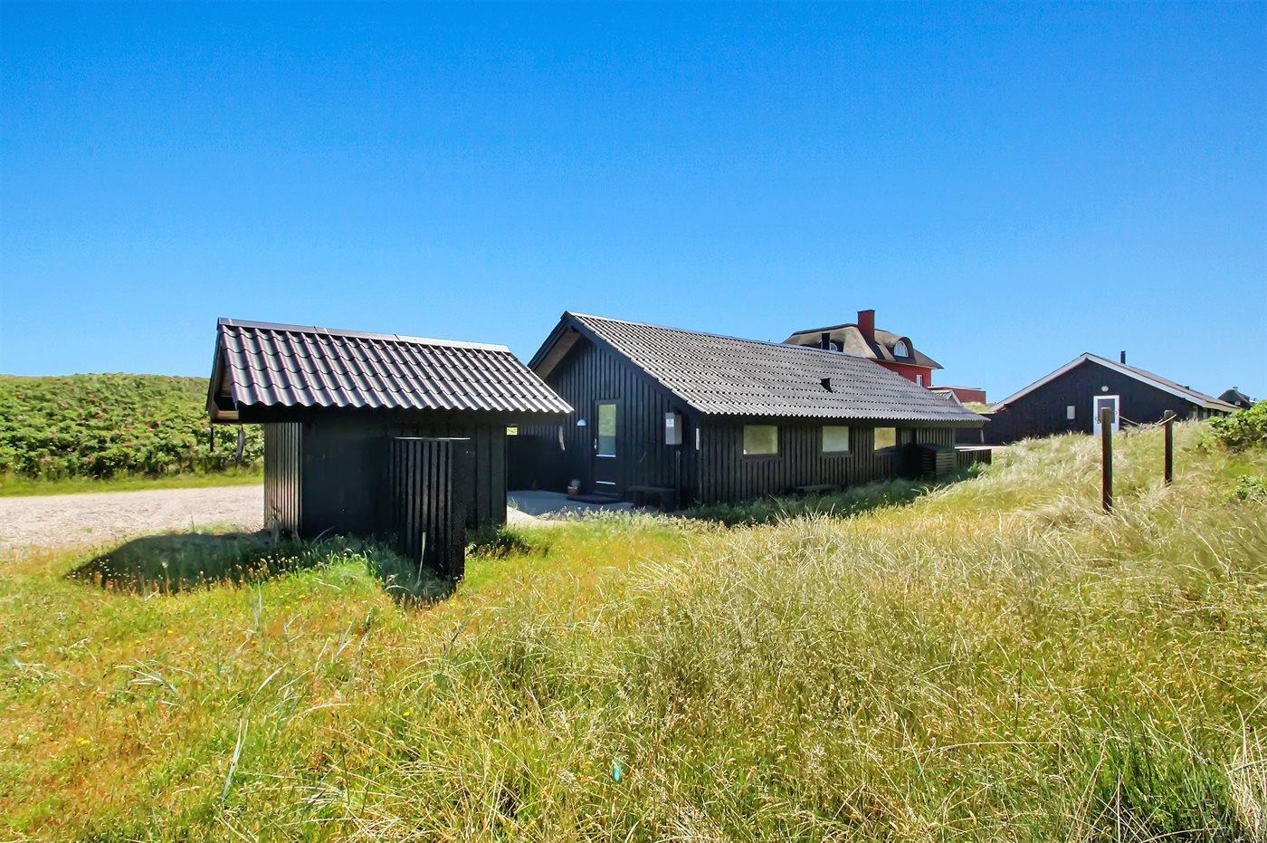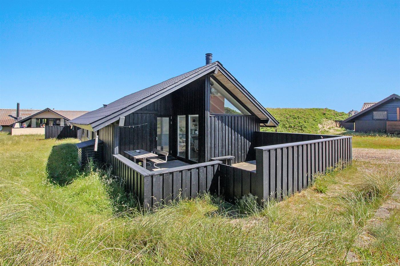 Et klassisk dansk sommerhus i første klitrække med direkte adgang til stranden - huset har andel i et ca. 15.000 m2 stort fredet naturareal ned mod vandet. Huset er indrettet -hyggeligt og enkelt - med 3 soveværelser: 1 med dobbeltseng og 2 med hver 2 enkeltsenge. I det ene værelse med enkeltsenge kan sengene sættes sammen til en dobbeltseng. Sommerhuset er på 69 m² og er bygget i 1975, men er løbende vedligeholdt og renoveret – senest i 2016. Ferieboligen er udstyret med en energibesparende varmepumpe, og der er desuden brændeovn. Til de små er der barnestol og barneseng. Ferieboligen er beliggende på en 465 m² stor naturgrund med dejlige terrasser. Mod syd findes 29 m2 lukket terrasse, hvoraf de 10 m2 er overdækket. Endvidere findes der 22 m2 åben terrasse mod nord og vest. Der er 200 m til havet, og nærmeste forretning er beliggende i en afstand af 1300 m. Køkkenet er udstyret med køleskab samt fryser med en kapacitet på 94 liter. Der er 4 keramiske kogeplader, bageovn, mikrobølgeovn samt opvaskemaskine. Der er 1 badeværelse med bruseniche, toilet og gulvvarme. I ferieboligen er der TV. Radio. Der er mindst 4 danske kanaler og mindst 4 tyske kanaler. Der er hurtigt og trådløst internet til rådighed. Det er tilladt at medbringe 1 husdyr, og i kan parkere lige ved ferieboligen.