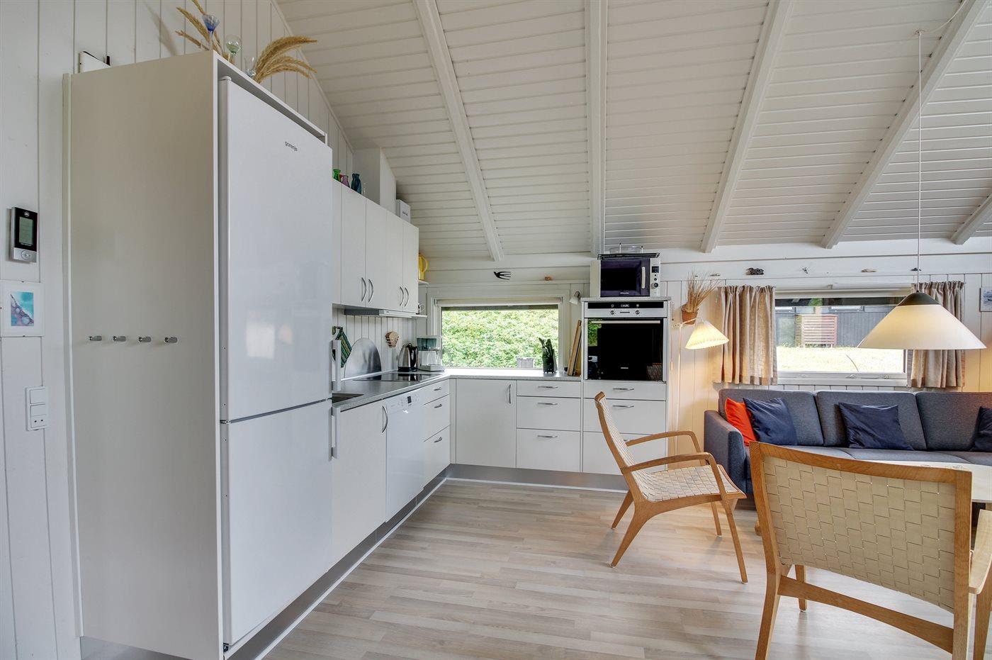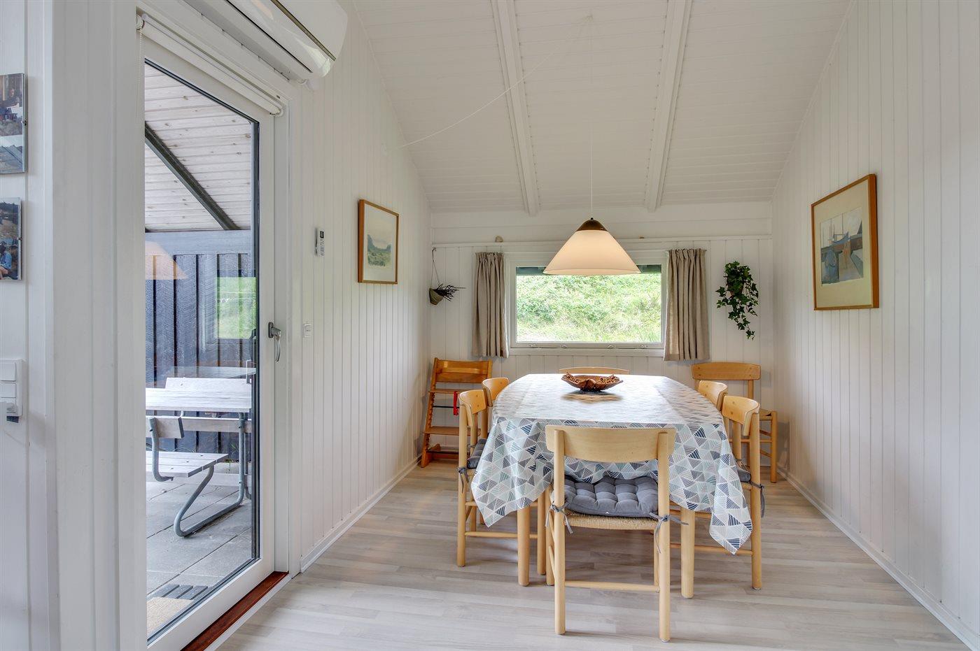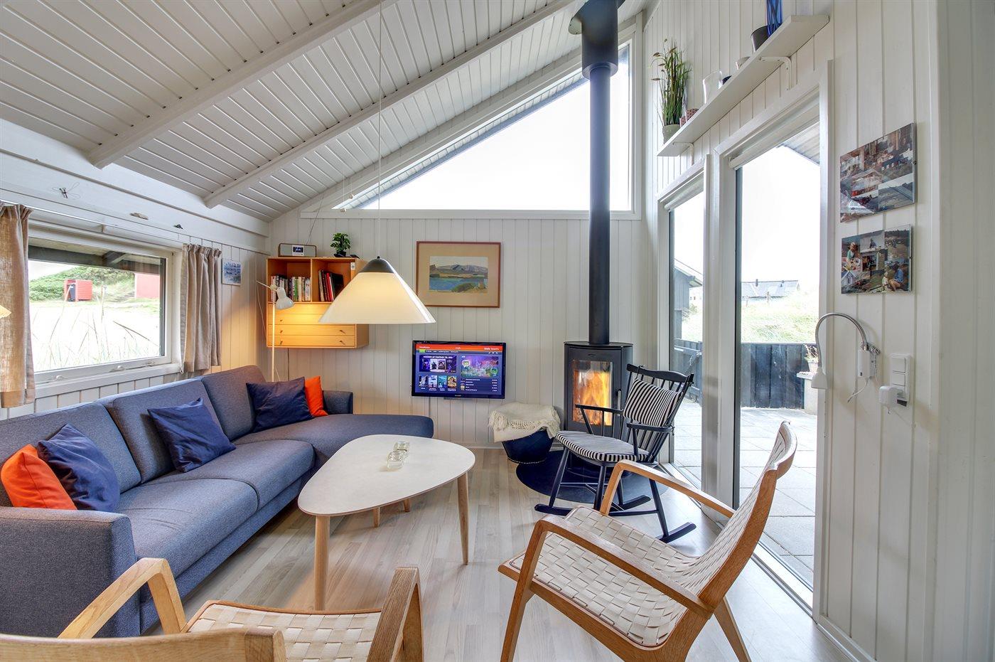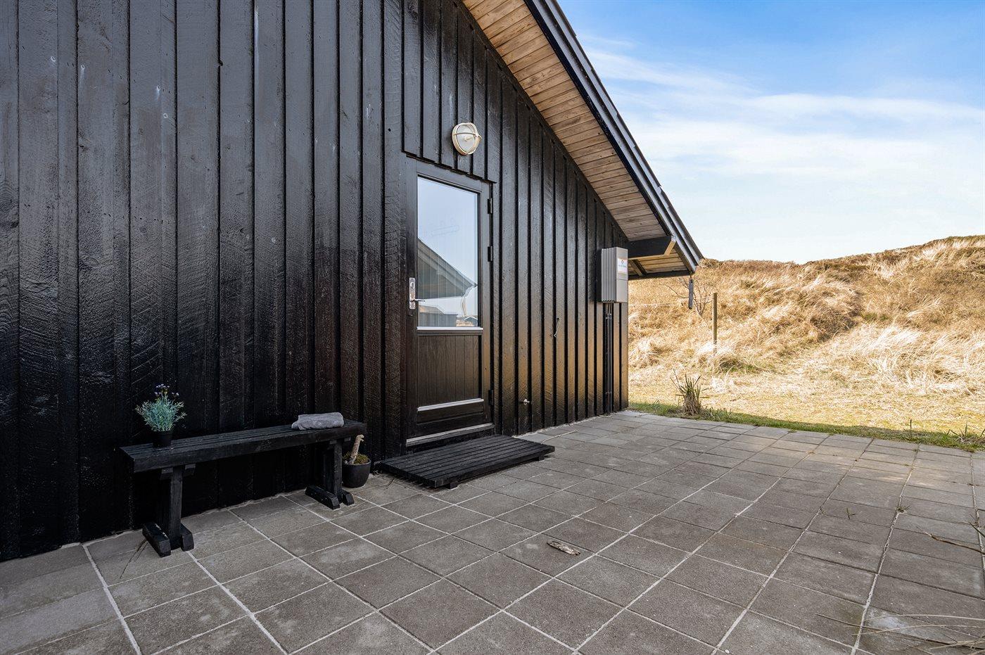 Et klassisk dansk sommerhus i første klitrække med direkte adgang til stranden - huset har andel i et ca. 15.000 m2 stort fredet naturareal ned mod vandet. Huset er indrettet -hyggeligt og enkelt - med 3 soveværelser: 1 med dobbeltseng og 2 med hver 2 enkeltsenge. I det ene værelse med enkeltsenge kan sengene sættes sammen til en dobbeltseng. Sommerhuset er på 69 m² og er bygget i 1975, men er løbende vedligeholdt og renoveret – senest i 2016. Ferieboligen er udstyret med en energibesparende varmepumpe, og der er desuden brændeovn. Til de små er der barnestol og barneseng. Ferieboligen er beliggende på en 465 m² stor naturgrund med dejlige terrasser. Mod syd findes 29 m2 lukket terrasse, hvoraf de 10 m2 er overdækket. Endvidere findes der 22 m2 åben terrasse mod nord og vest. Der er 200 m til havet, og nærmeste forretning er beliggende i en afstand af 1300 m. Køkkenet er udstyret med køleskab samt fryser med en kapacitet på 94 liter. Der er 4 keramiske kogeplader, bageovn, mikrobølgeovn samt opvaskemaskine. Der er 1 badeværelse med bruseniche, toilet og gulvvarme. I ferieboligen er der TV. Radio. Der er mindst 4 danske kanaler og mindst 4 tyske kanaler. Der er hurtigt og trådløst internet til rådighed. Det er tilladt at medbringe 1 husdyr, og i kan parkere lige ved ferieboligen.