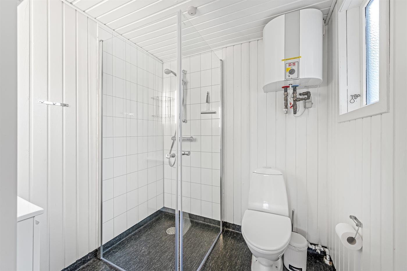Der er 1 badeværelse med bruseniche og 1 toilet.