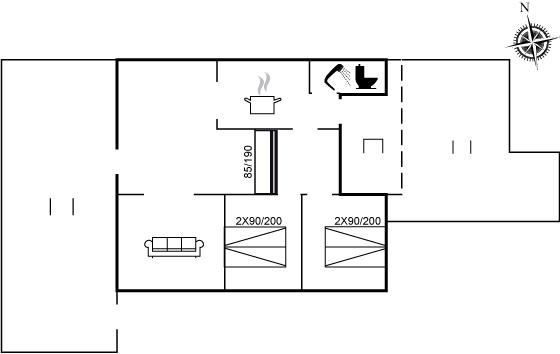 Der er i alt 3 soveværelser. Sovepladserne fordeler sig på: 4 sovepladser i dobbeltsenge. 2 sovepladser i køjeseng.