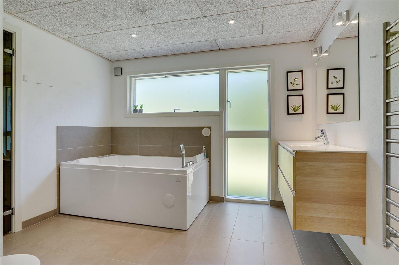 Der er 2 badeværelser med bruseniche og 2 toiletter. Der er gulvvarme på 2 badeværelser. I saunaen er der mulighed for afslapning.