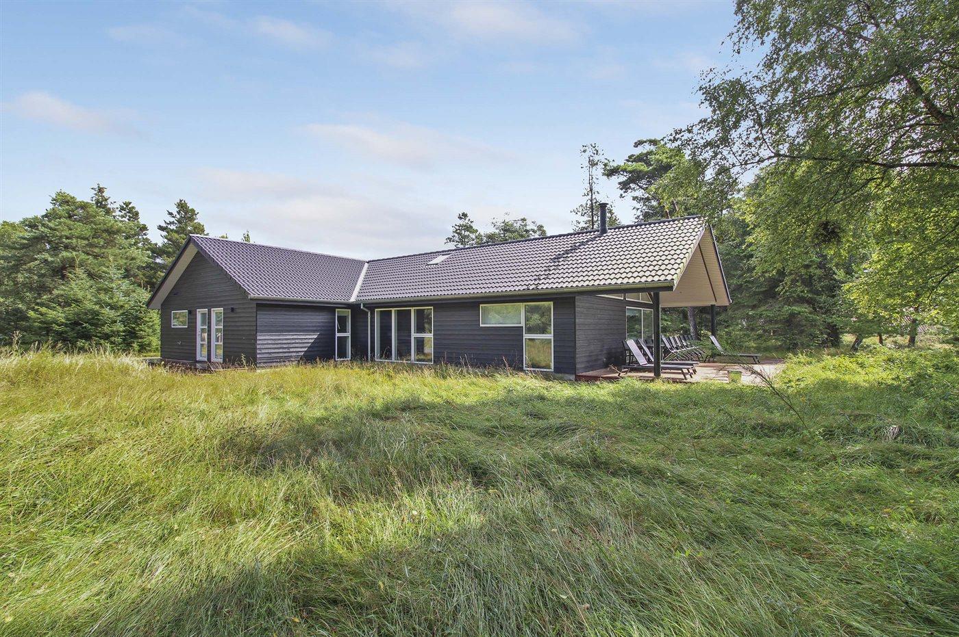 Luksusspahus med internet, tæt på byen, huset ligger på en lukket og ugenert grund med høje træet, tæt på den eftertragtede bilfri Vejers Nordstrand. Bemærk: 2 af de i alt 10 sovepladser befinder sig på husets hems.