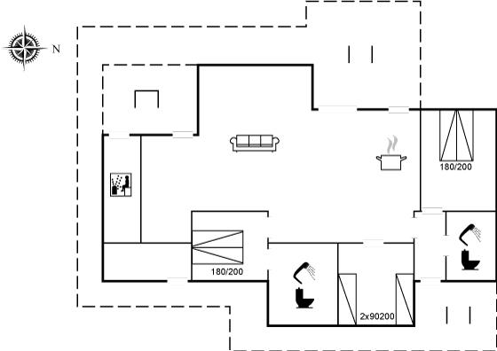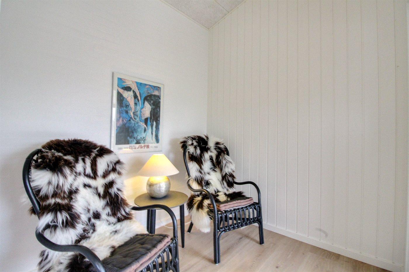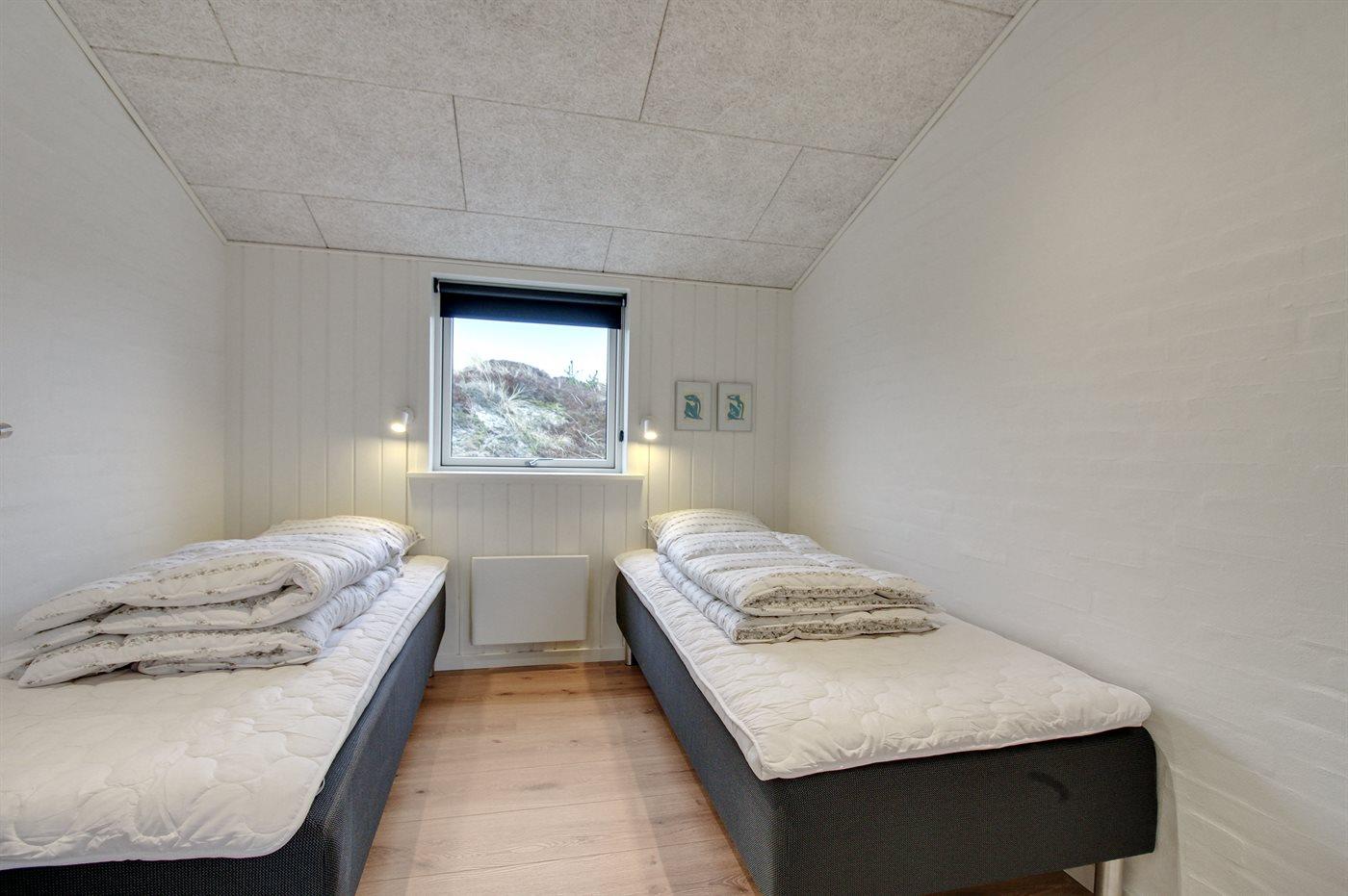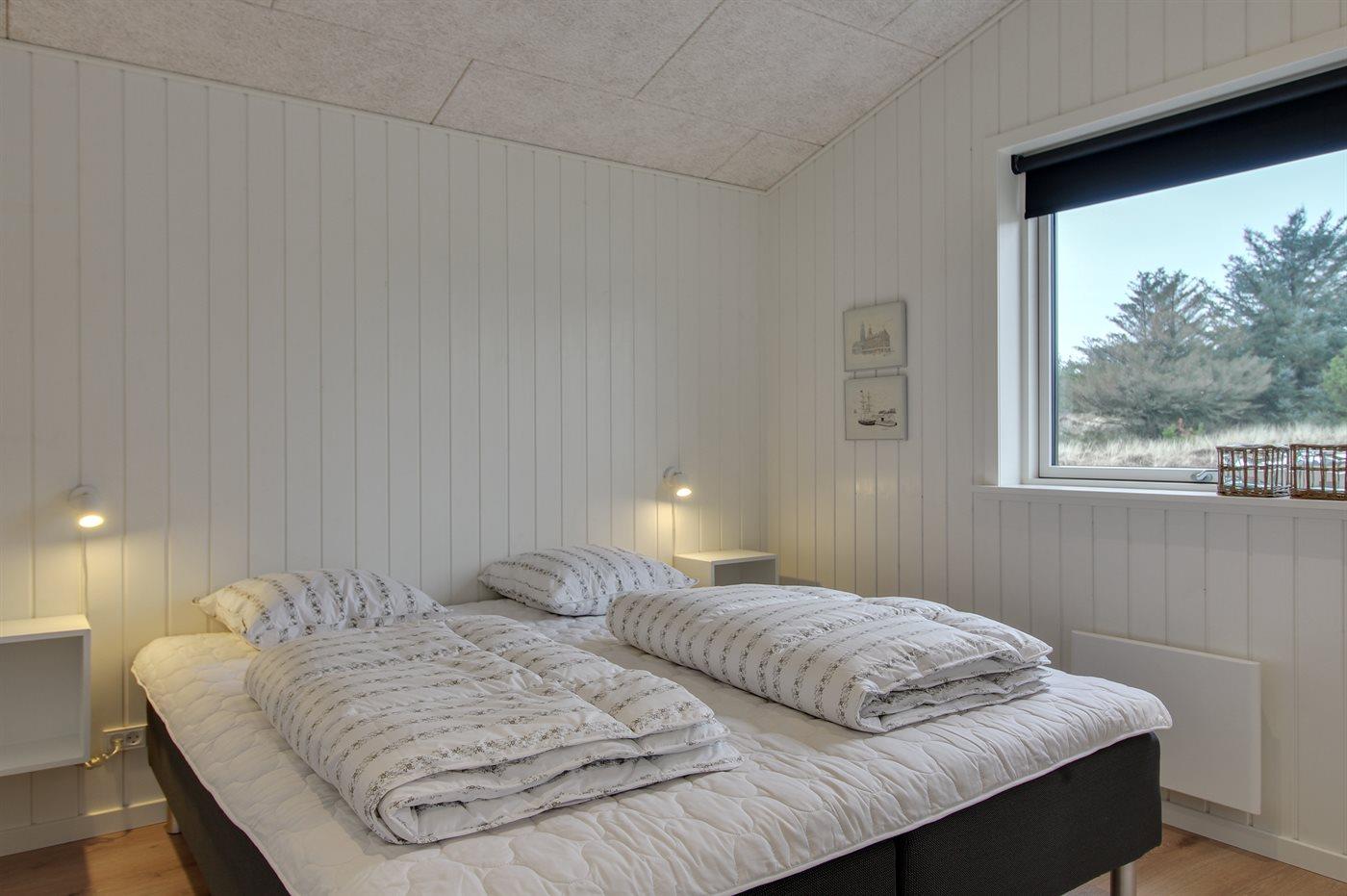 Der er i alt 3 soveværelser. Sovepladserne fordeler sig på: 4 sovepladser i dobbeltsenge. 2 sovepladser i enkeltsenge.