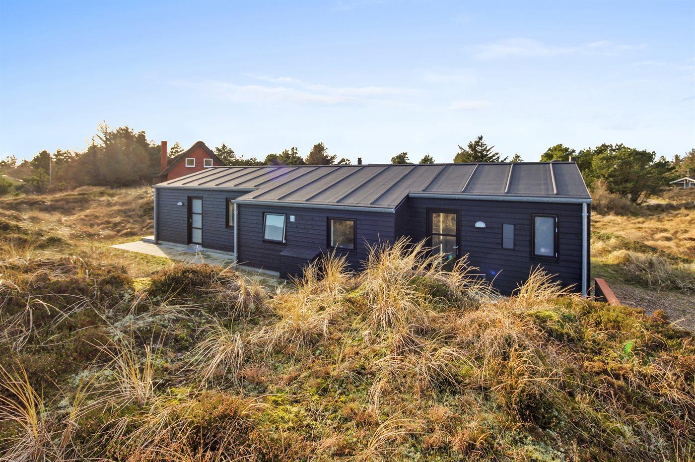 Nyt sommerhus ved Vejers Strand med sauna, terrasse og kun 750 m til stranden.