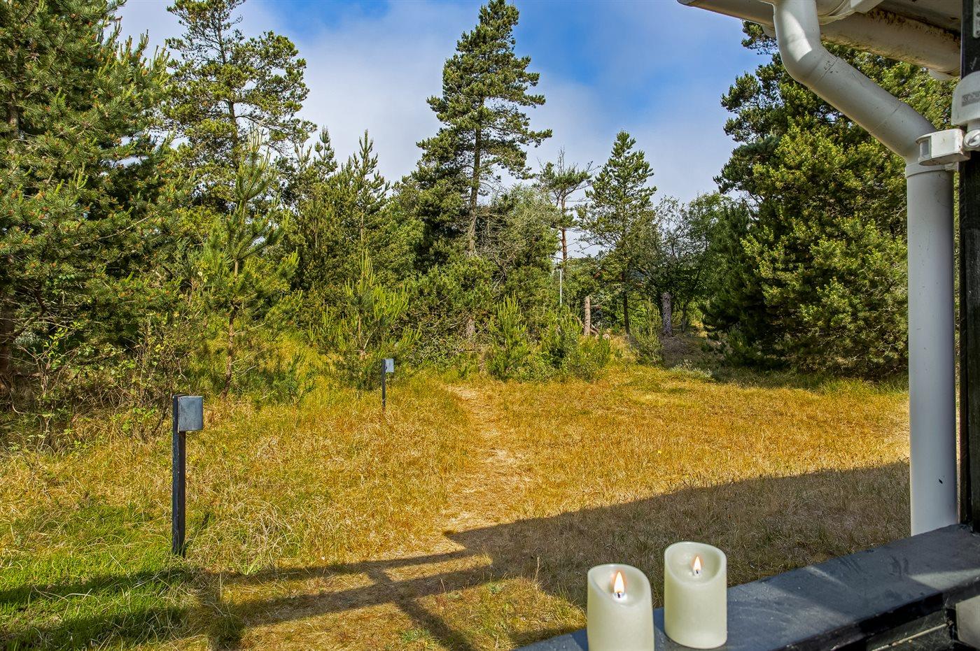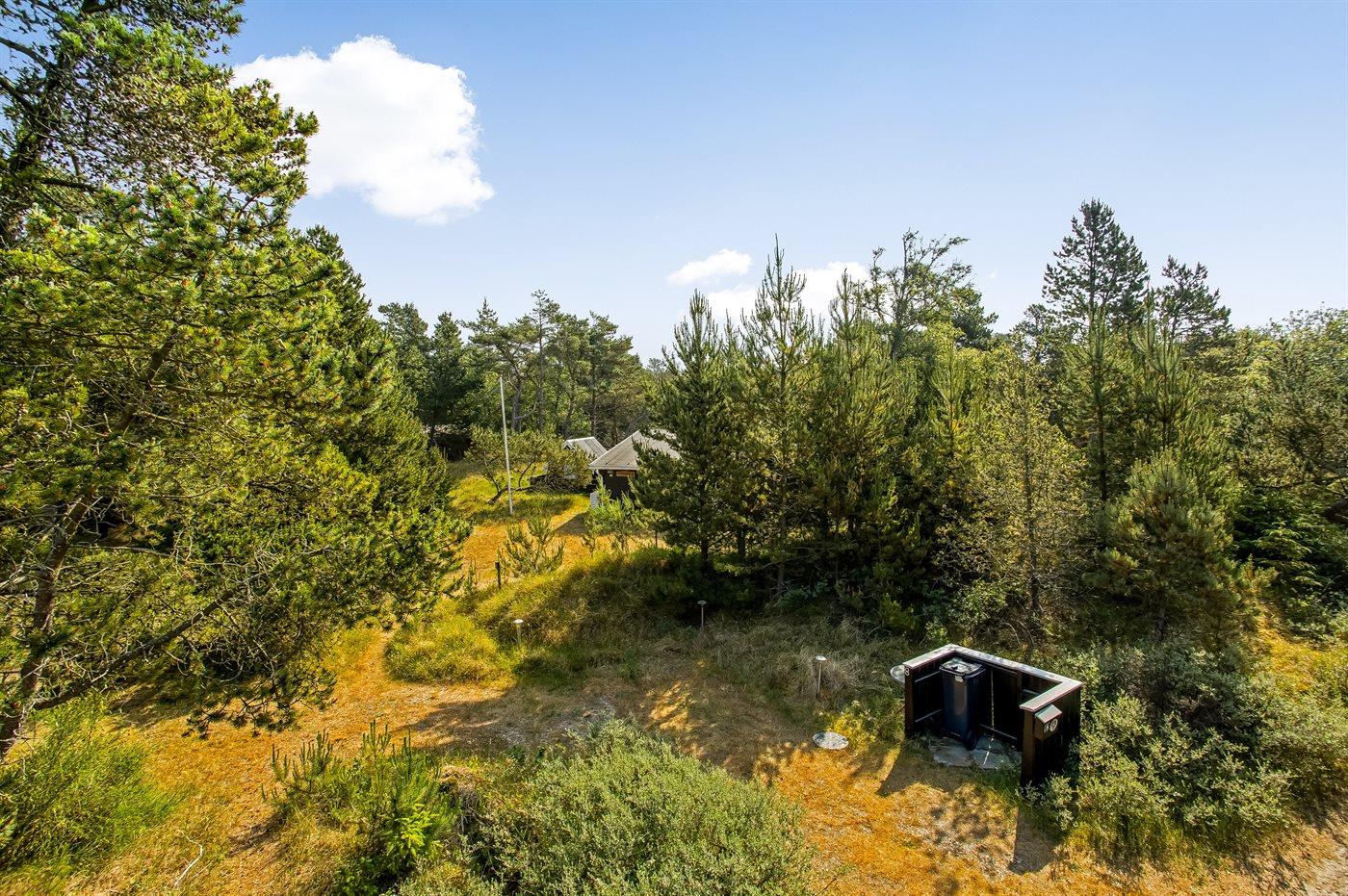Ferieboligen er beliggende på en 2800 m² stor naturgrund. Der er 800 m til havet. Nærmeste forretning er beliggende i en afstand af 700 m. Til ferieboligen hører åbent terrasseareal. Desuden er der overdækket terrasse. Parkering ved ferieboligen.