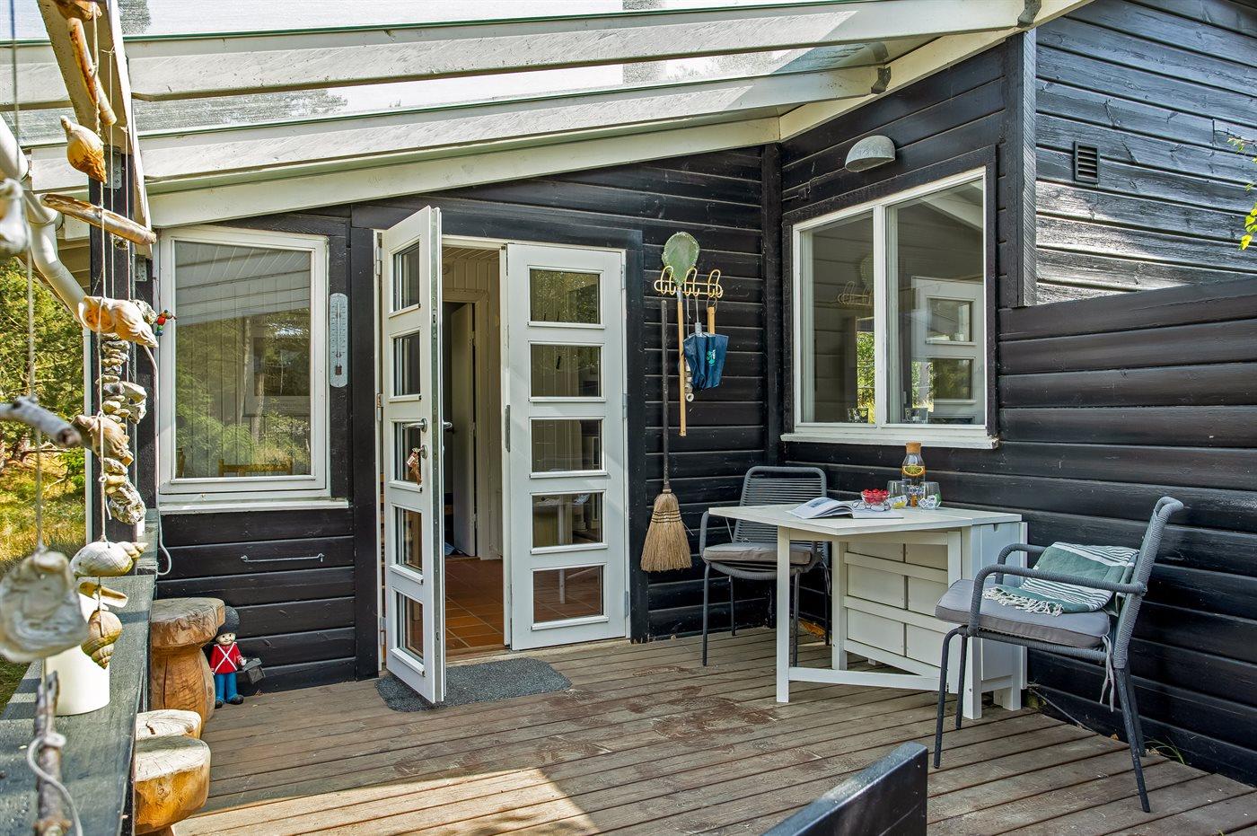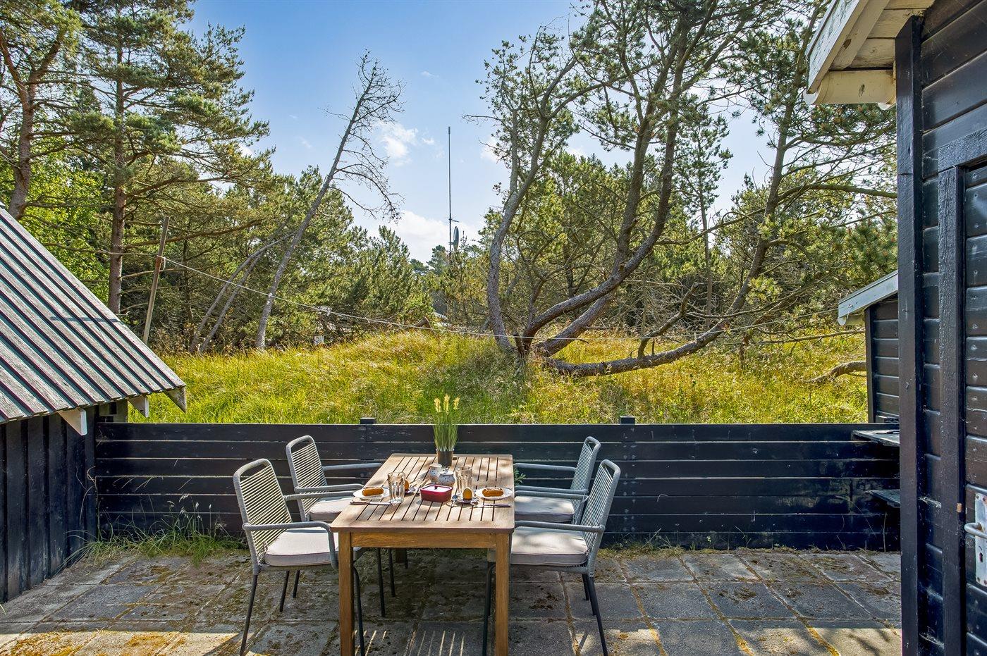 Et rigtigt sommerhus, hvor man bor lige midt i naturen. Huset har en hyggelig terrasse med udsigt til et skønt naturområde.