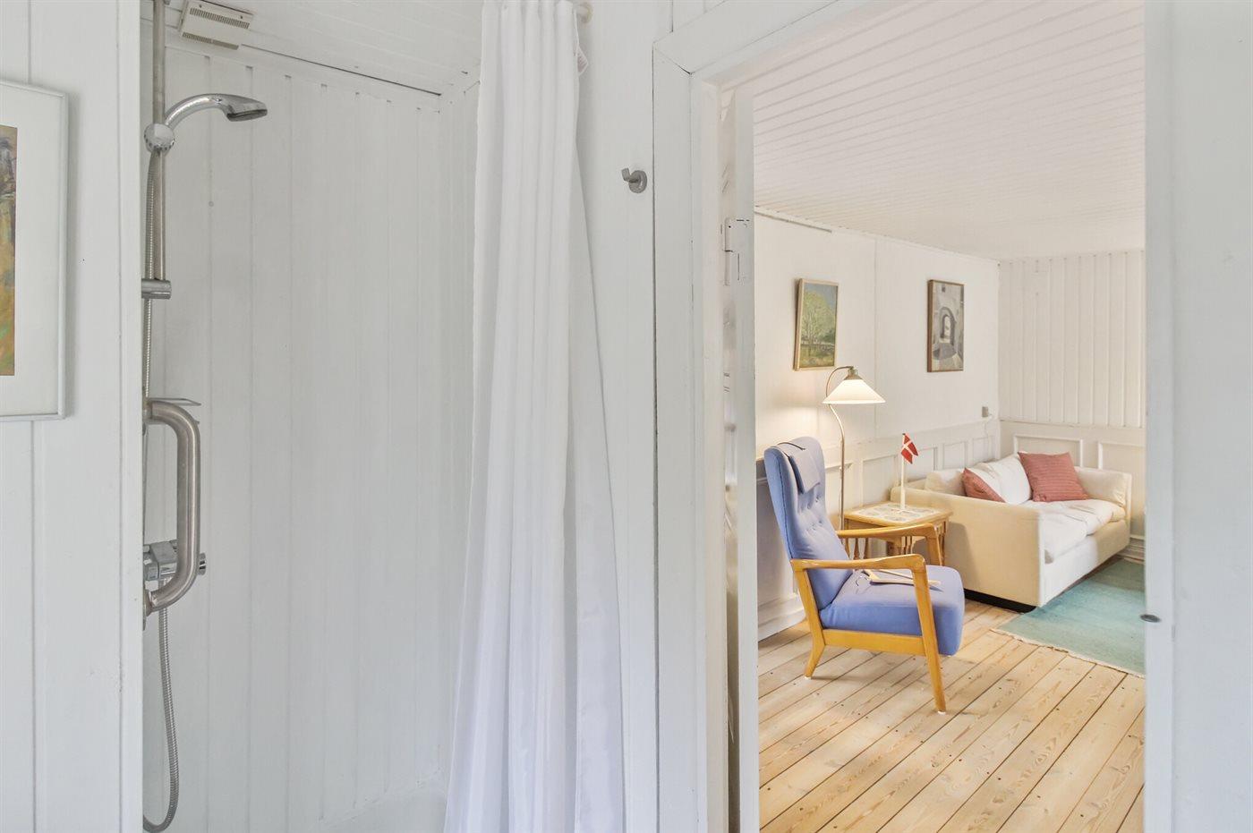 Der er 1 badeværelse med bruser og 1 toilet.