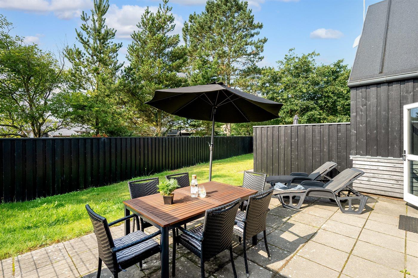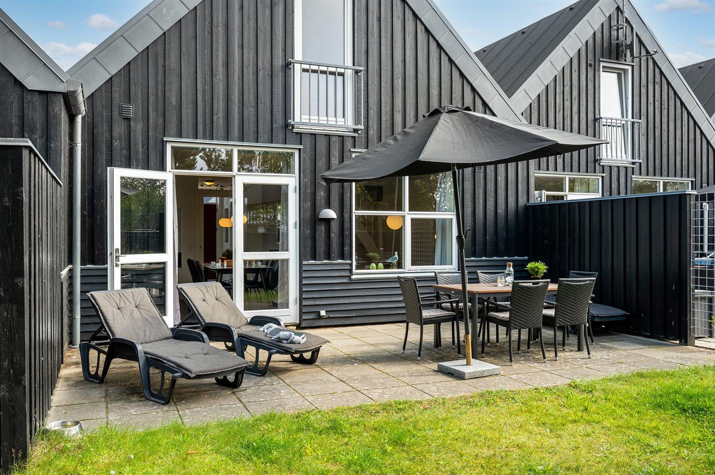 Ferieboligen er beliggende på en 120 m² stor havegrund. Der er 800 m til havet. Der er en sø i en afstand af 6000 m. Nærmeste forretning er beliggende i en afstand af 600 m. Der er en golfbane i en afstand af 12000 m. Til ferieboligen hører åbent terrasseareal. Der ligger en legeplads i en afstand af 950 m. Der er installeret stik til opladning af elbil. Type 2 stik. Med 11 kW ladeeffekt. Parkering ved ferieboligen.