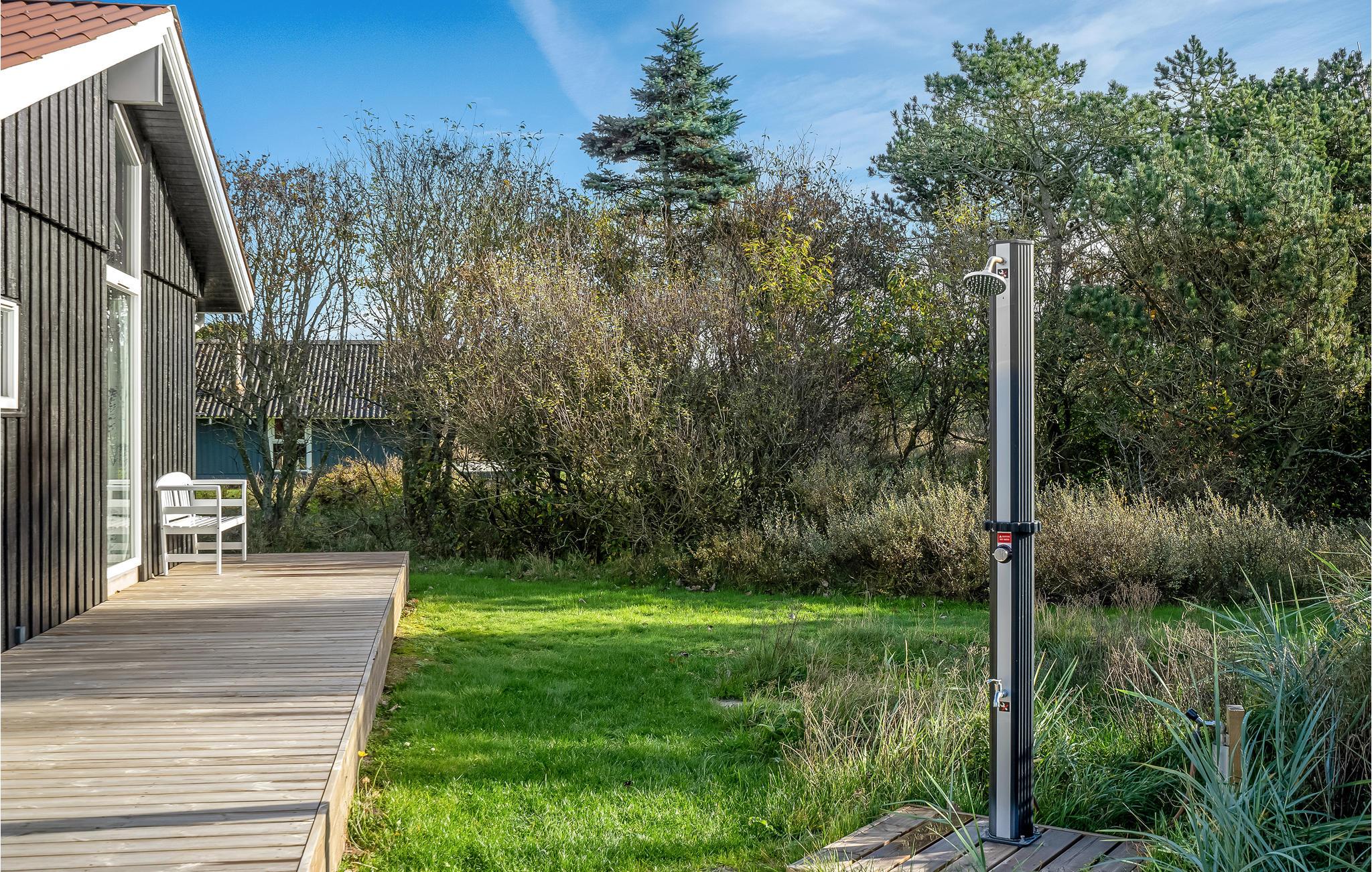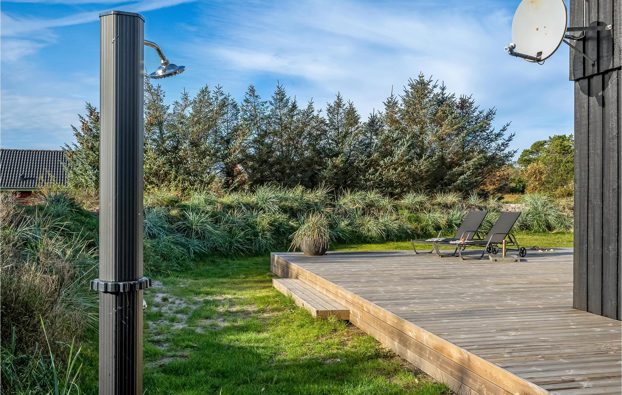 Dejligt feriehus beliggende på en stor klitgrund ikke langt fra Vestkystens bedste badestrand og Vejers by med gode indkøbsmuligheder. Huset er godt indrettet og kan rumme en stor eller flere familier. Her findes bl.a. en stor poolafdeling, spabad samt sauna, gode soveværelser samt stort køkken/alrum med trægulv og direkte udgang til en stor sydvendt træterrasse. Der findes flere terrasser omkring feriehuset, bl.a. en stor ugenert, læfuld og delvis indhegnet morgenterrasse, hvor I kan nyde jeres morgenmad. Vejers by er en hyggelig sommerferieby med gode indkøbsmuligheder, restauranter, bolchekogeri og lysstøberi, hvor I selv kan prøve at dyppe stearinlys. Det er tilladt at køre i bil på visse dele af stranden, men hvis I ønsker en mere børnevenlig strand, kan Nordstranden anbefales.