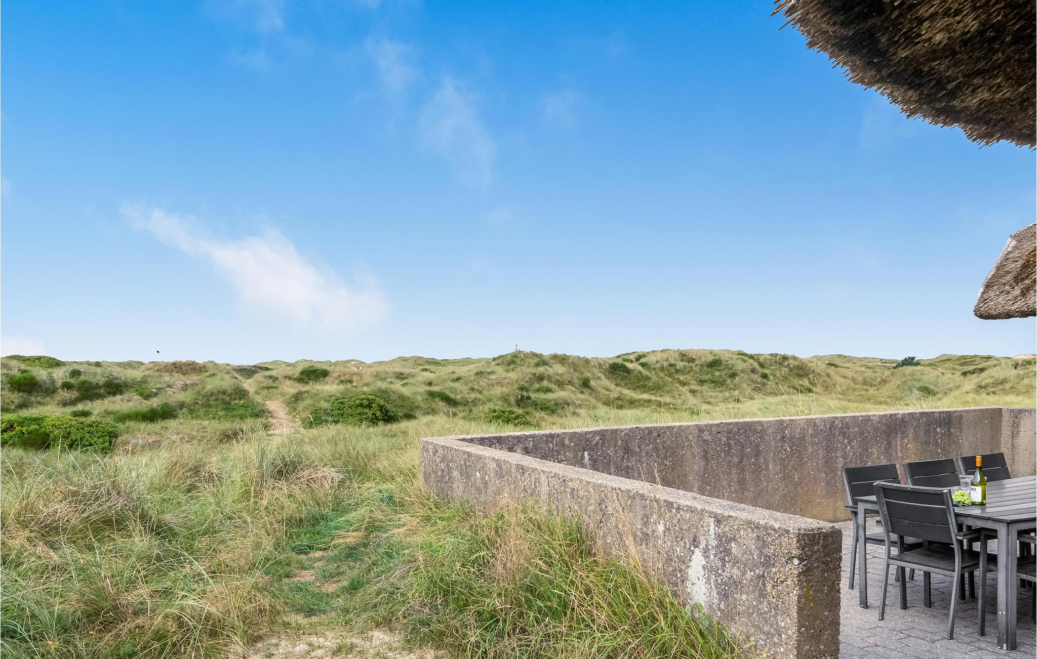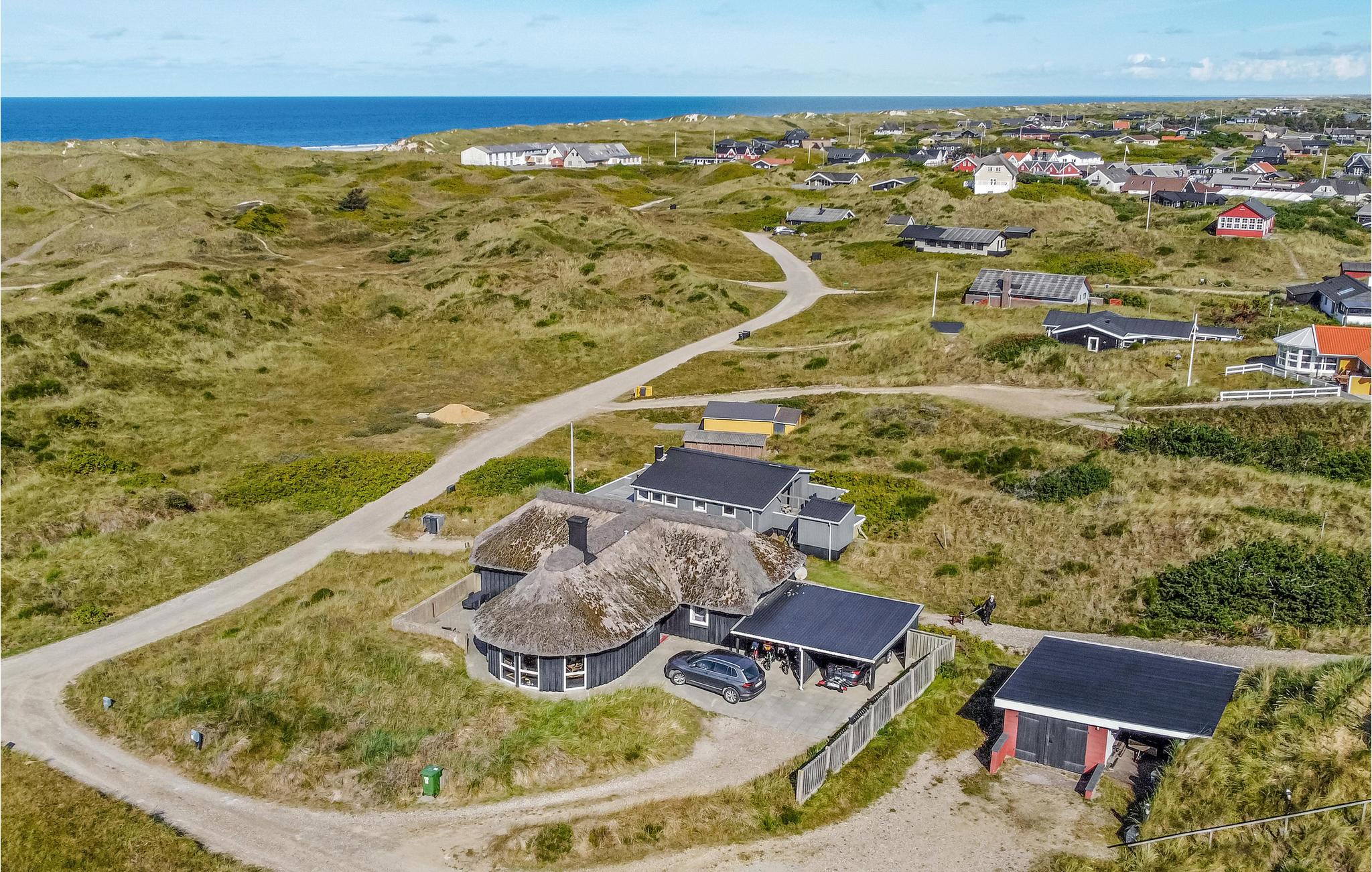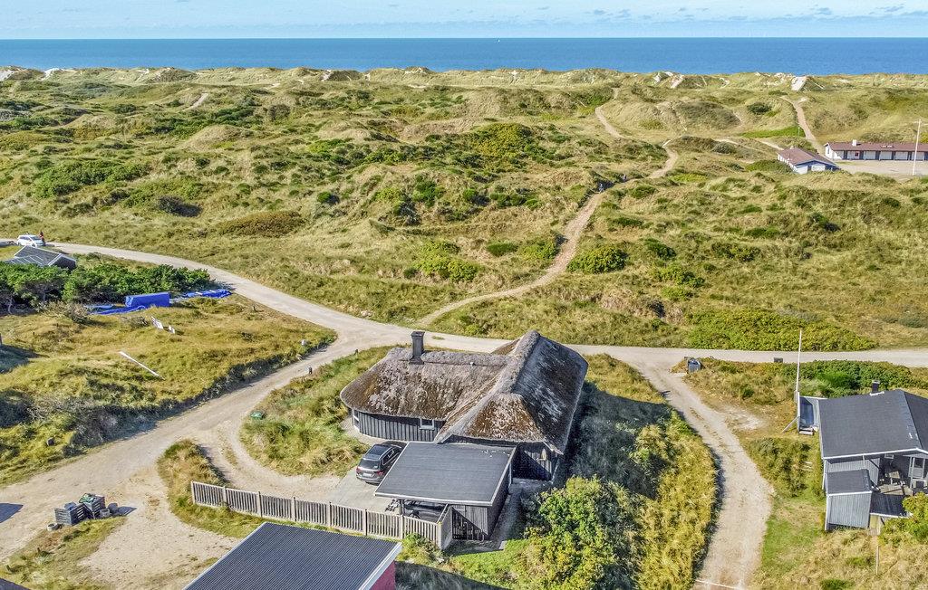 Pragtfuldt feriehus beliggende i yderste klitrække på en kuperet klitgrund meget tæt på Vesterhavet. Den kunstnerisk dekorerede poolafdeling byder på en stor swimmingpool, spabad samt adgang til sauna. I poolafdelingen med tilhørende badeværelse er der desuden opvarmede klinkegulve. Huset er godt og hyggeligt indrettet, og køkkenet ligger i åben forbindelse med den store spise-/opholdsstue med brændeovn. I opholdsstuen kan I slappe af og nyde den flotte udsigt over klitterne og ned til Vesterhavet. På husets ugenerte klitterrasse kan I slappe af med en kop kaffe, mens I tilbereder et lækkert måltid mad på grillen. Der er gåafstand til Vejers by, hvor der bl.a. er bolsjekogeri, lysstøberi samt et bageri. På den ene del af Vejers Strand er bilkørsel tilladt, mens den anden del er bilfri.