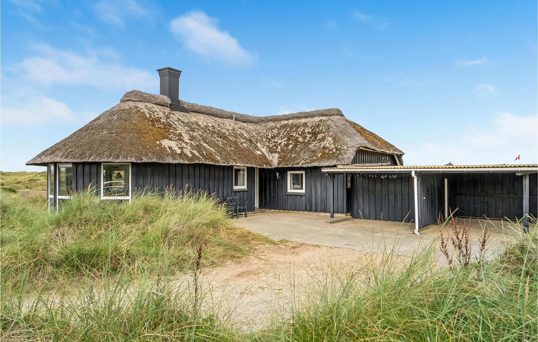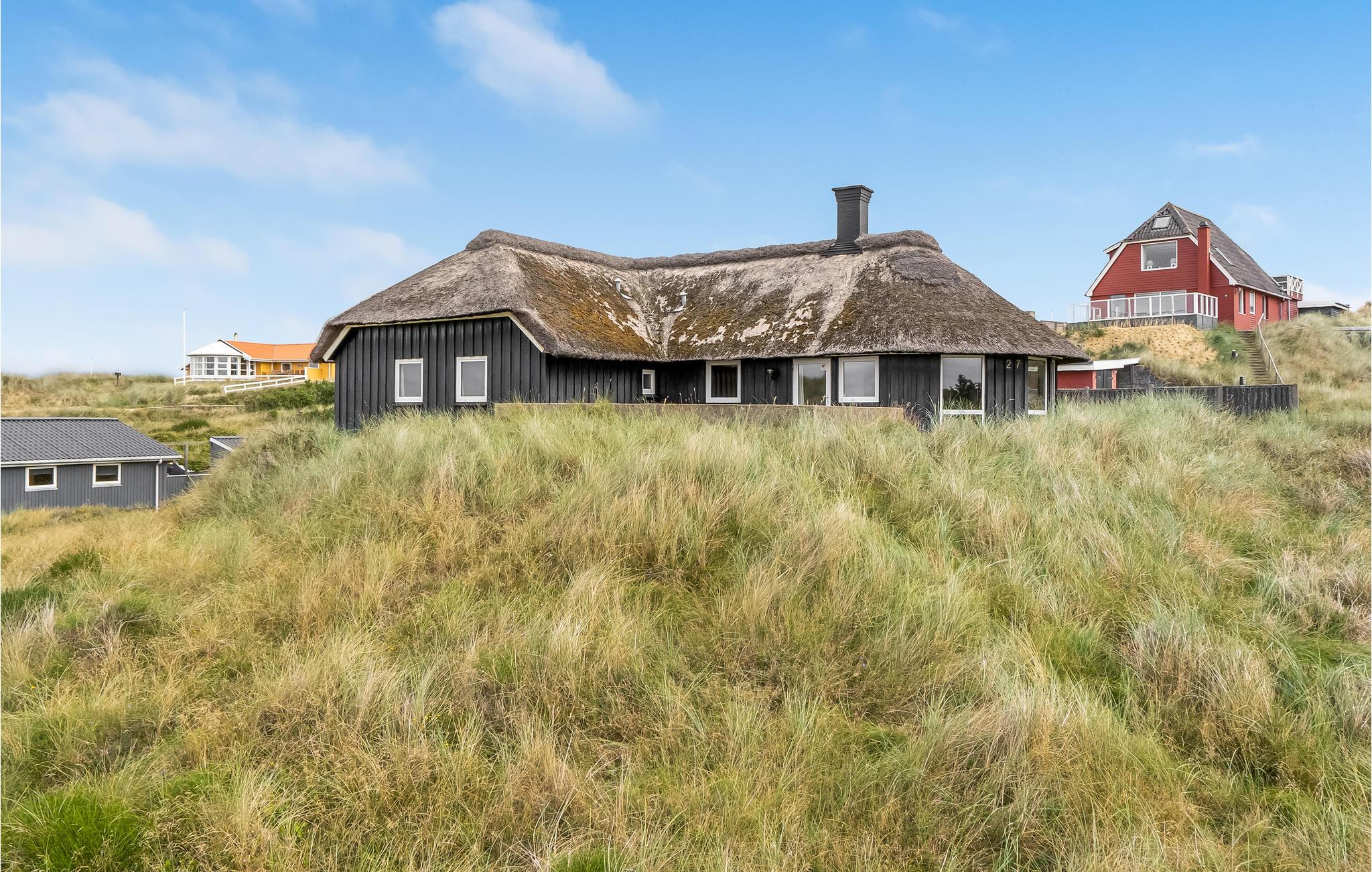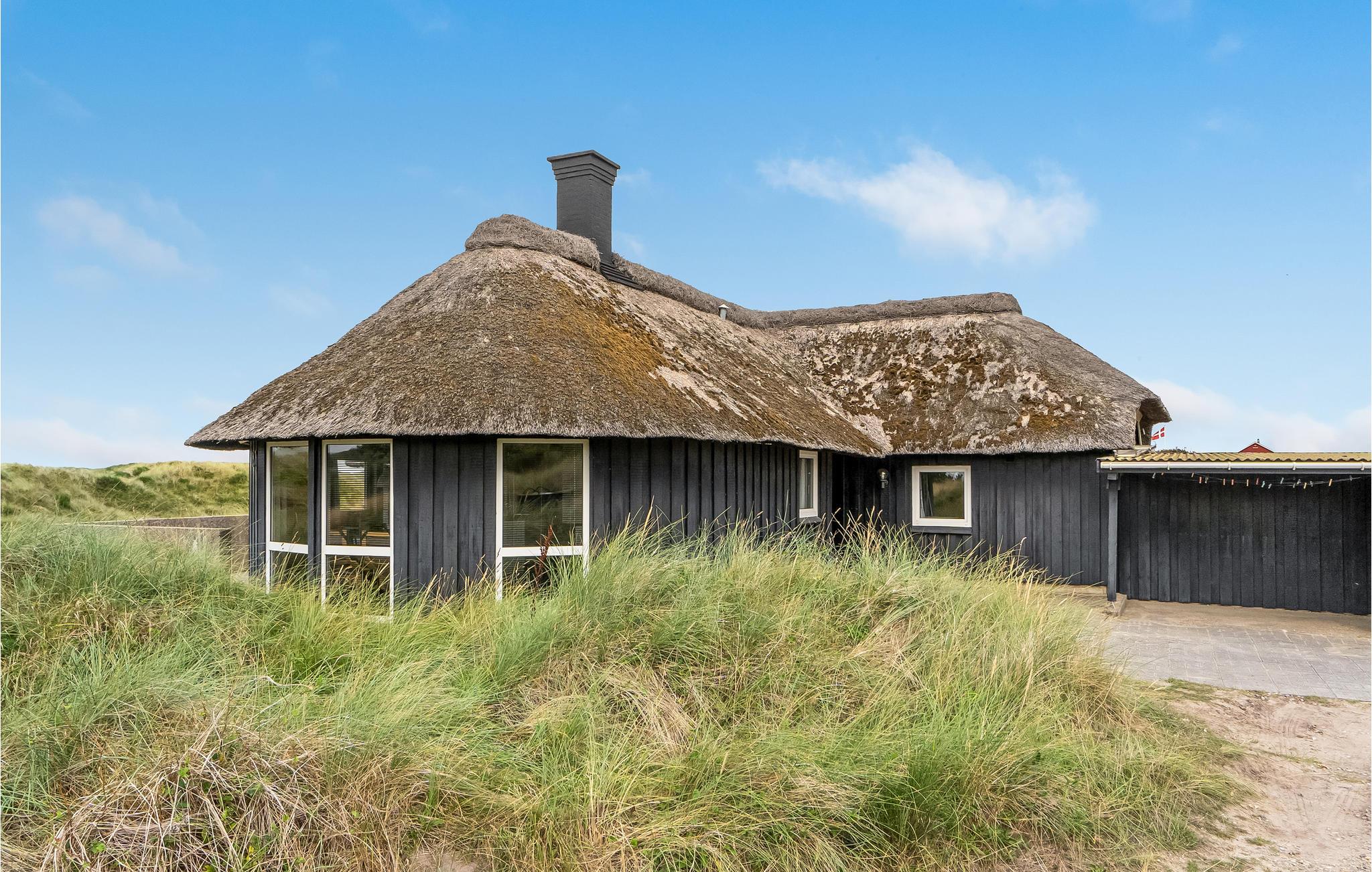 Pragtfuldt feriehus beliggende i yderste klitrække på en kuperet klitgrund meget tæt på Vesterhavet. Den kunstnerisk dekorerede poolafdeling byder på en stor swimmingpool, spabad samt adgang til sauna. I poolafdelingen med tilhørende badeværelse er der desuden opvarmede klinkegulve. Huset er godt og hyggeligt indrettet, og køkkenet ligger i åben forbindelse med den store spise-/opholdsstue med brændeovn. I opholdsstuen kan I slappe af og nyde den flotte udsigt over klitterne og ned til Vesterhavet. På husets ugenerte klitterrasse kan I slappe af med en kop kaffe, mens I tilbereder et lækkert måltid mad på grillen. Der er gåafstand til Vejers by, hvor der bl.a. er bolsjekogeri, lysstøberi samt et bageri. På den ene del af Vejers Strand er bilkørsel tilladt, mens den anden del er bilfri.
