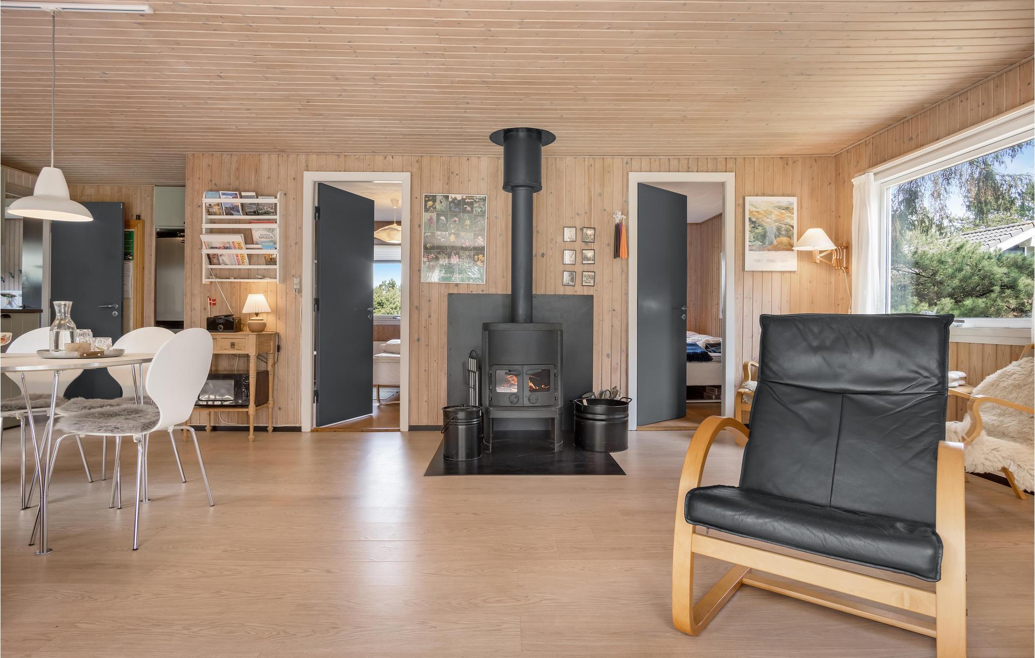 Fra stuen i dette sommerhus, er der direkte udsigt til den lille legeplads i haven, hvor jeres børn kan få mange timer til at gå. Der er gode rammer både inde og ude. I kan gå til butikker og restaurant 500 m væk og det store Vesterhav ligger blot 1,7 km væk. Rejsen til det vestligste Danmark er hele turen værd uanset årstiden. Det er ikke kun i sommerperioden, denne unikke landsdel er et spændende bekendtskab. Her er alle velkomne året rundt. Så uanset om I er til badeliv på de uendelige, hvide sandstrande, surf- og dragesport, traveture i klitlandskaber, ridning, lystfiskeri, skovture, internationale golfanlæg, historie, kultur, kunst, handelsliv eller glade stunder i spændende bymiljøer, findes det hele her. Det perfekte udgangspunkt for jeres ferie i Vestjylland.
