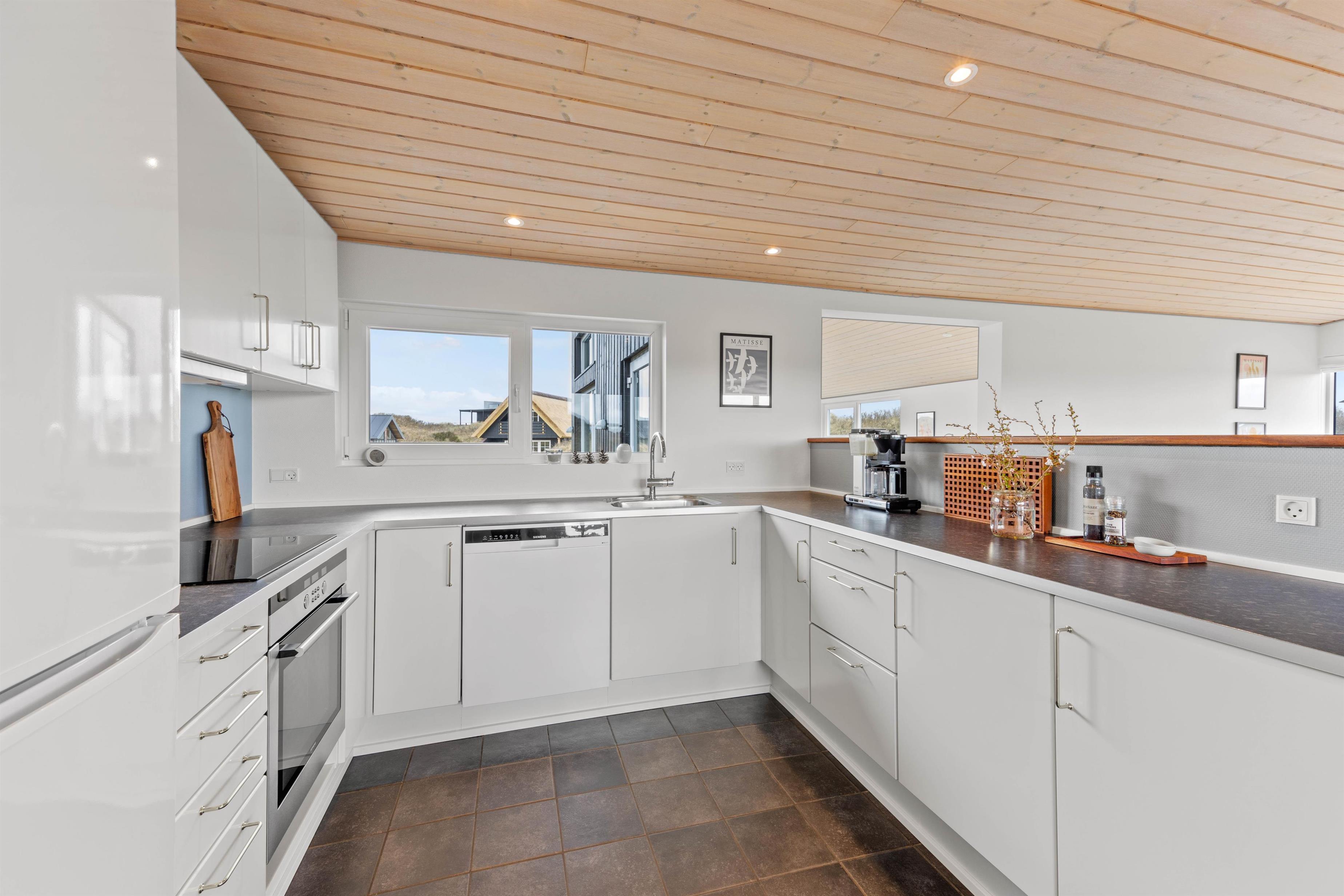 I feriehuset bliver I mødt af en hyggelig indretning, der bliver komplimenteret af lysindfaldet fra de mange vinduer. Samtidig giver de mange vinduer jer også en dejlig udsigt over det område, sommerhuset ligger i med udsigt til både klitter, rå-og kronvildt.