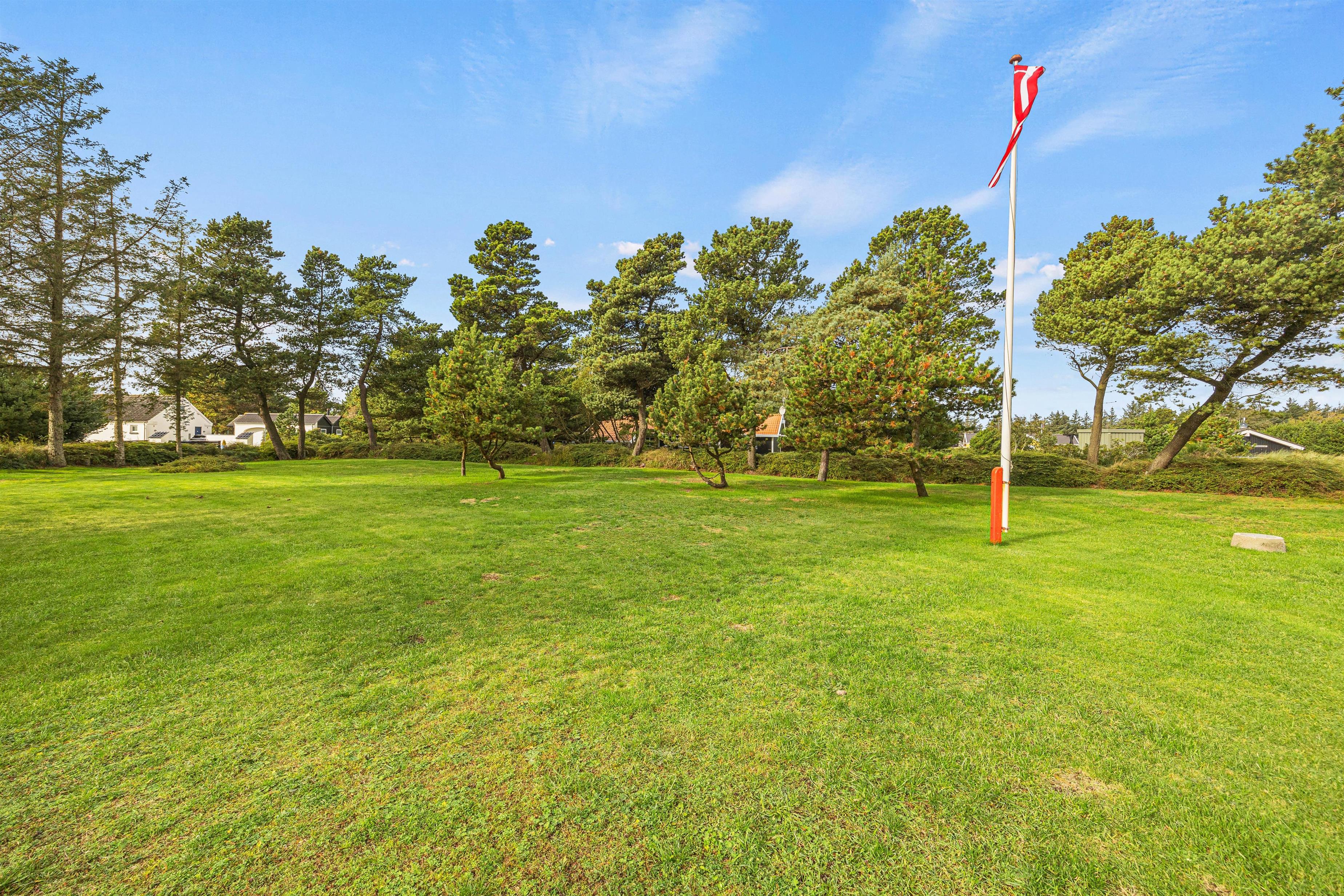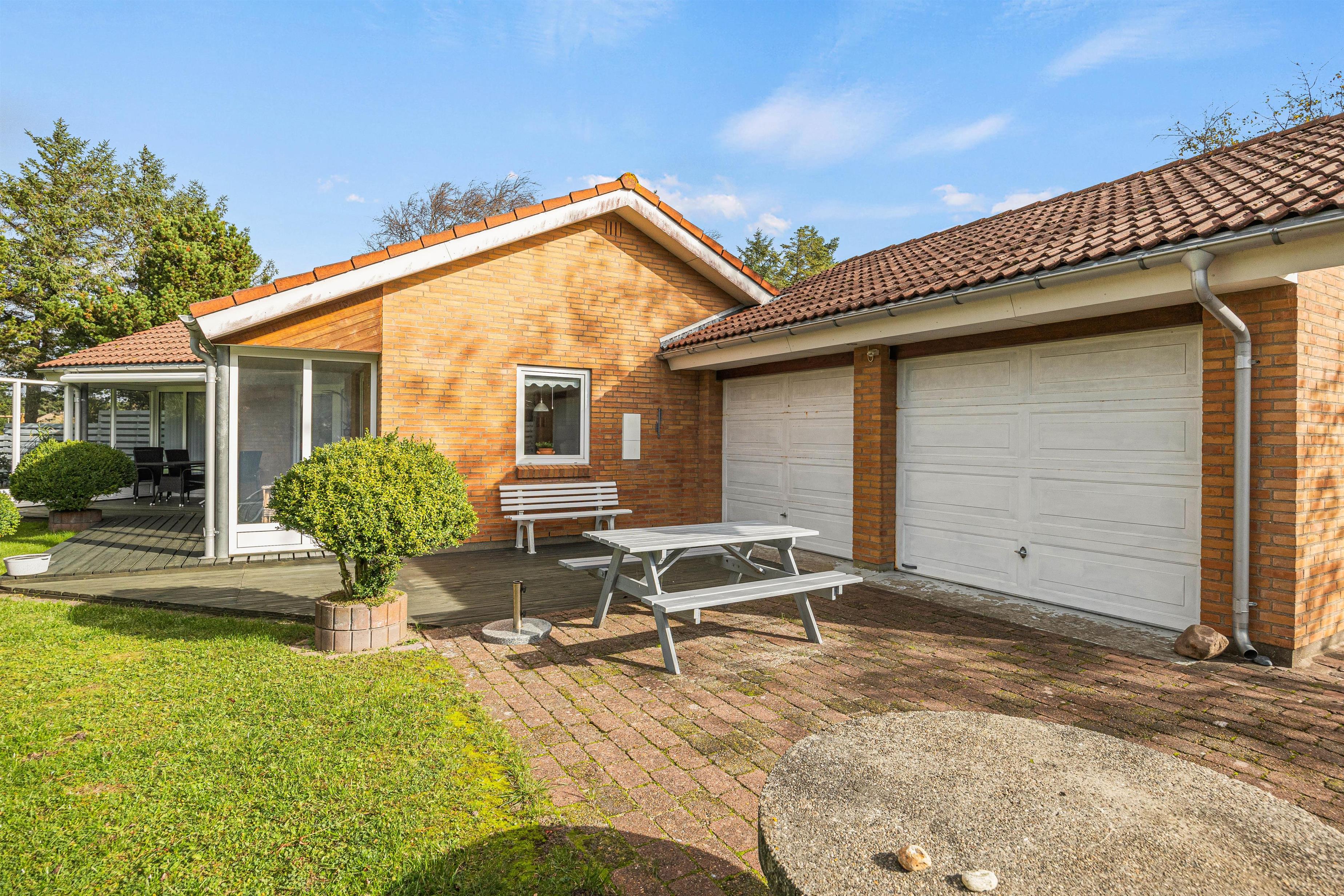 Sommerhusets udeområde, der er mere end 2.400 kvadratmeter stort, byder på en stor have, hvor I har masser af plads at boltre jer på. Derudover har I også flere skønne terrasser, I kan nyde de solrige feriedage på. Her har I havemøbler til rådighed, så I kan sætte jer godt til rette og slappe af i solen.