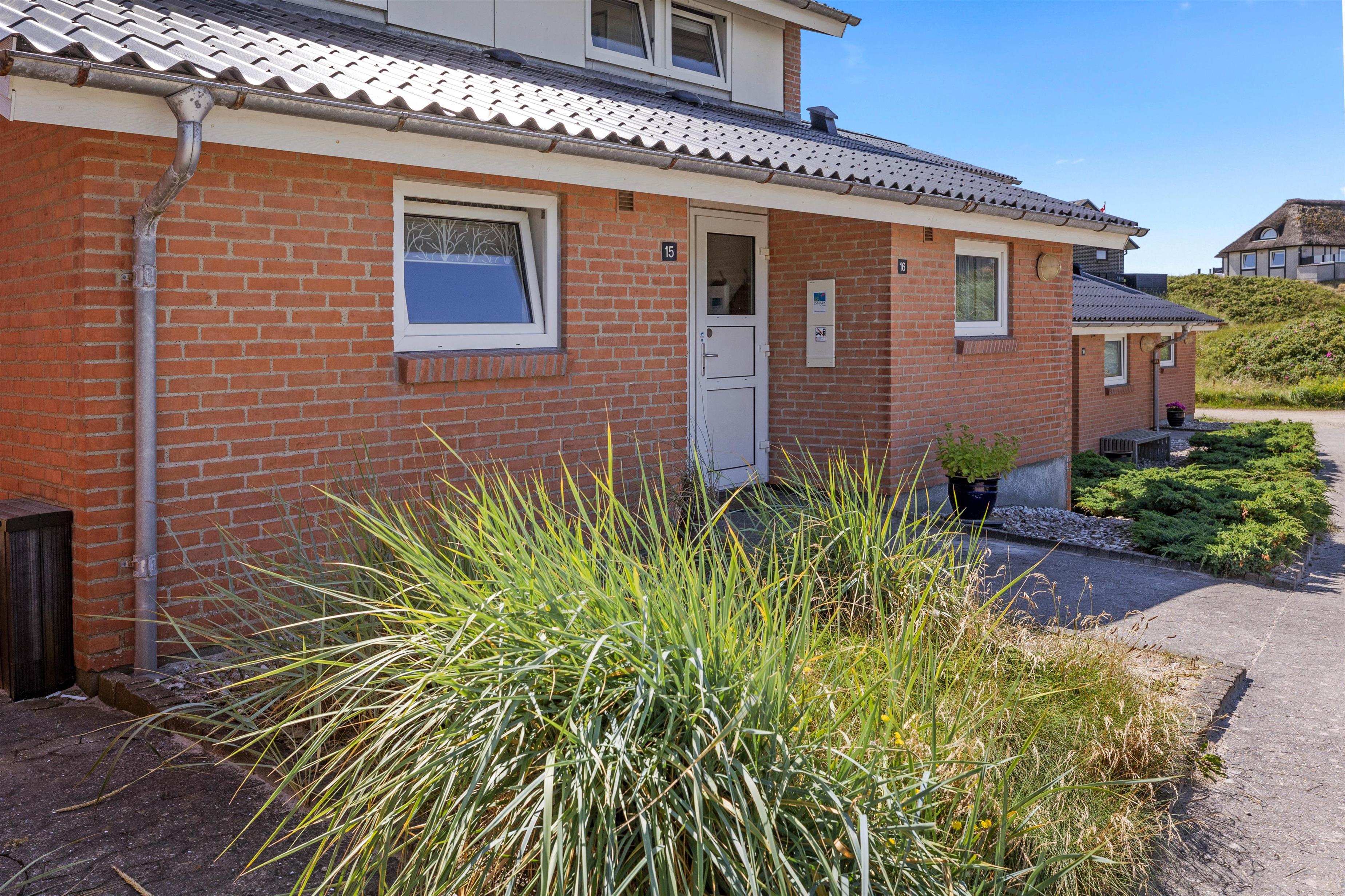 På Nordvej 11-15 finder du denne lækre ferielejlighed til 5 personer, som er en del af Vejers Feriecenter. Her har du muligheden for at holde badeferie uanset vind og vejr i den store indendørs swimmingpool. I fællesrummet ved poolen finder du et ekstra rum med sauna og vaskemaskine – disse faciliteter kan du benytte efter først til mølle princippet mod betaling af gebyr.