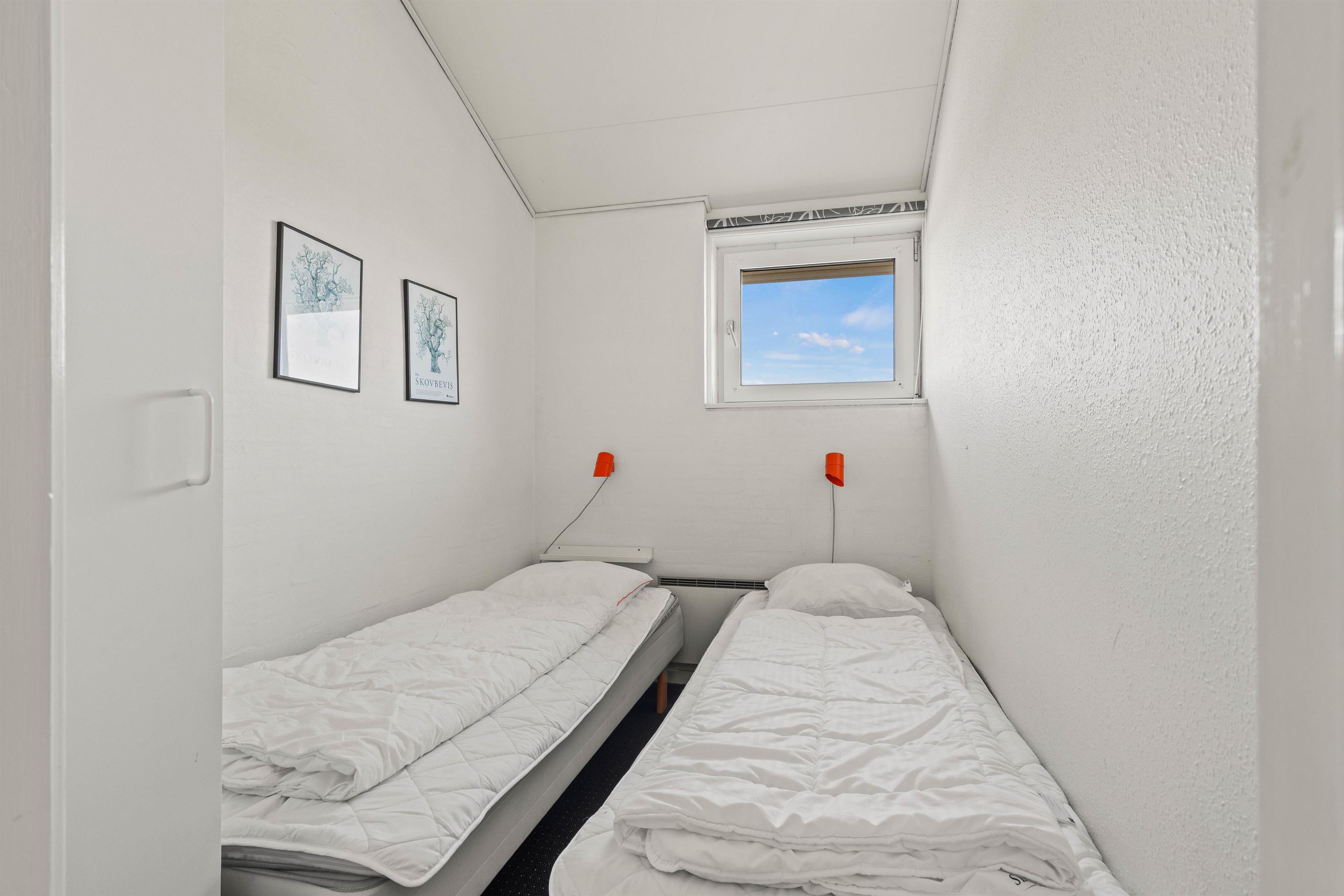 Lejligheden er fordelt på to etager, hvor du på første sal finder to soverum med en køjeseng og to enkeltsenge. Stueetagen byder på et lækkert soveværelse med en dobbeltseng og et dejligt lyst badeværelse. Derudover finder du det lækre og imødekommende køkken og stuen, som byder op til afslapning.