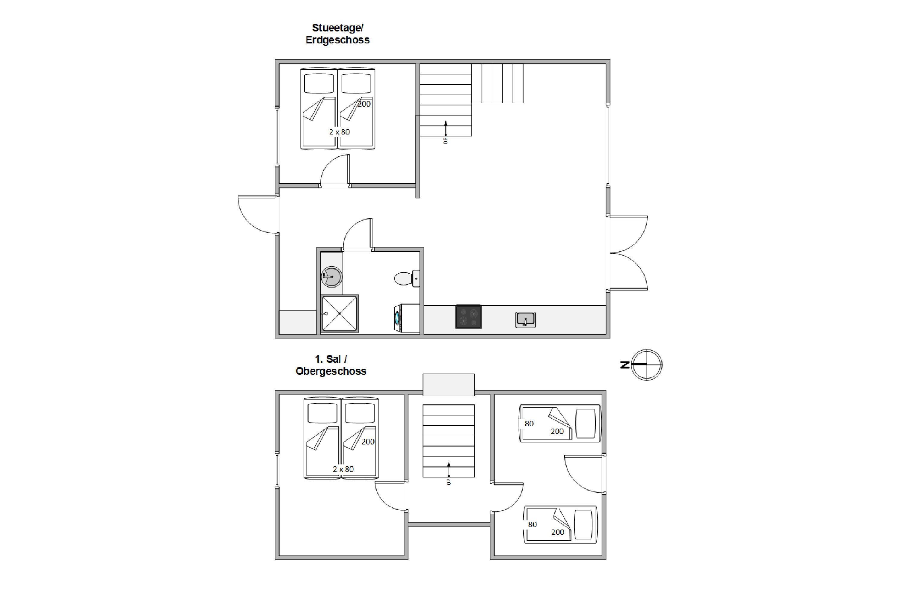 På nederste etage finder I opholdsrummet, som kombinerer både køkken, spiseafdeling og stue i ét. Mon ikke, det kommer til at danne rammerne om et hav af dejlige feriestunder med familien?