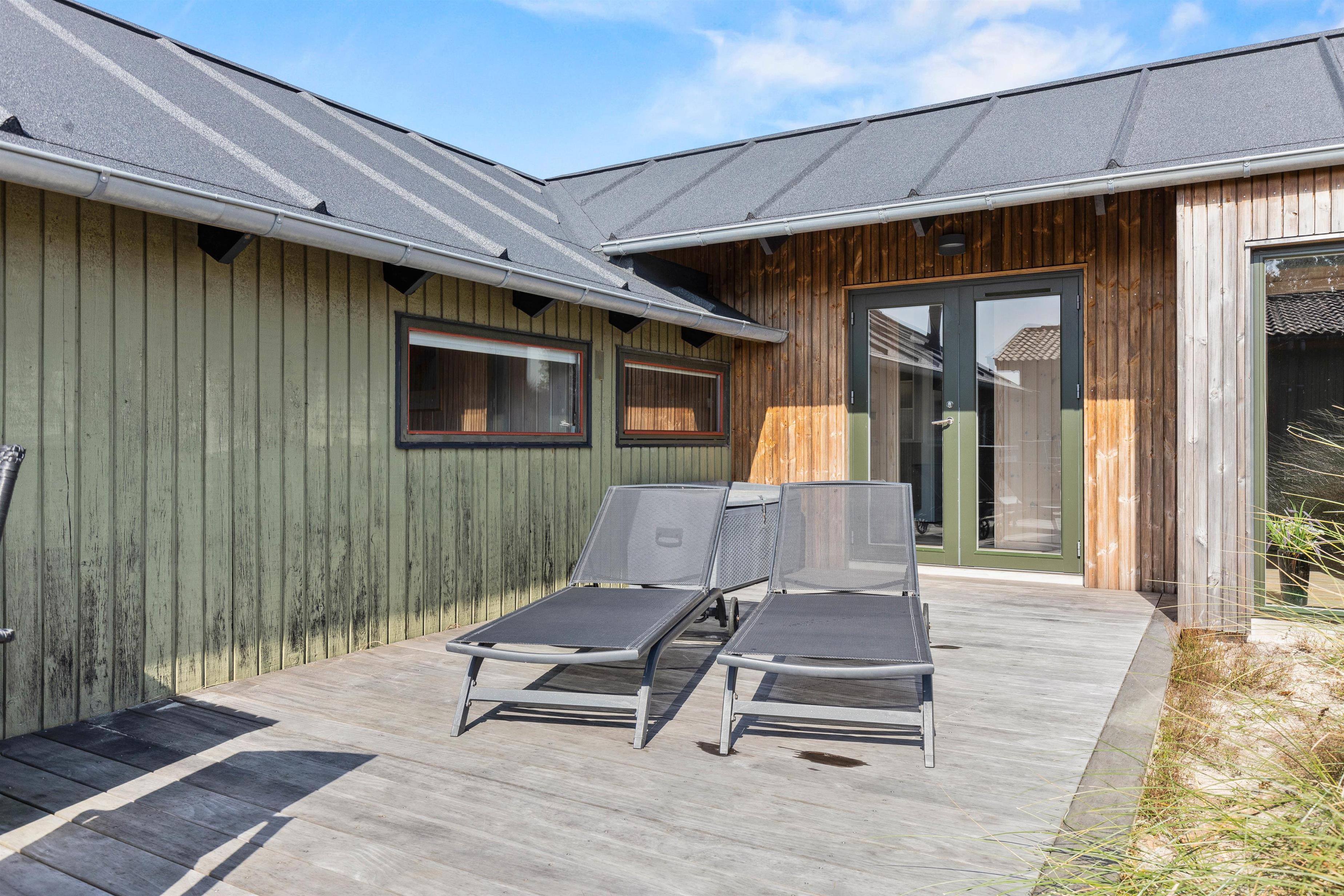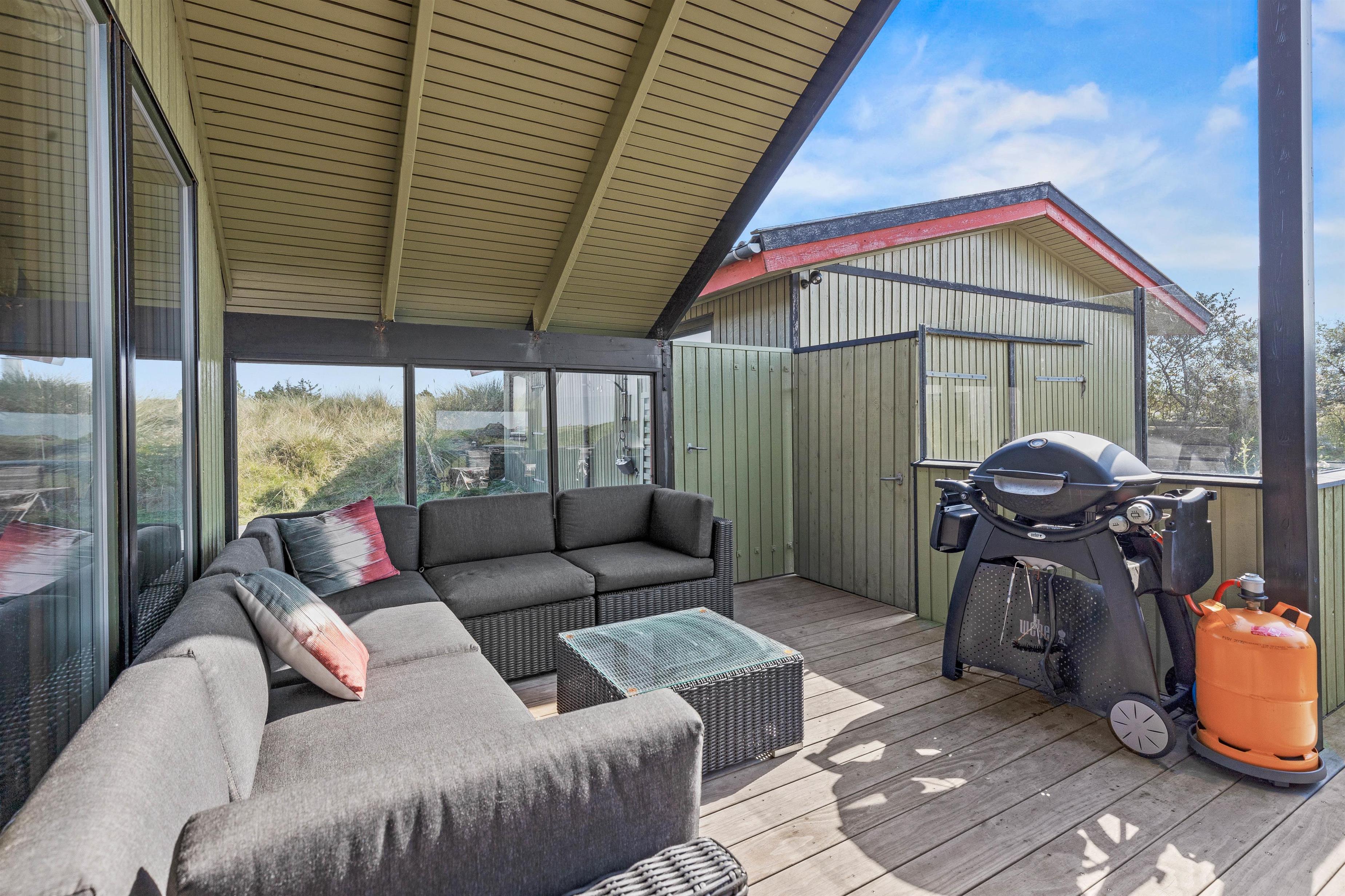 Også i regnvejr eller blæst er det muligt at tilbringe tid uden for og nyde naturen og den skønne salte vestvind, da I på Nordvej 40 har en dejlig afskærmet til dels overdækket terrasse.