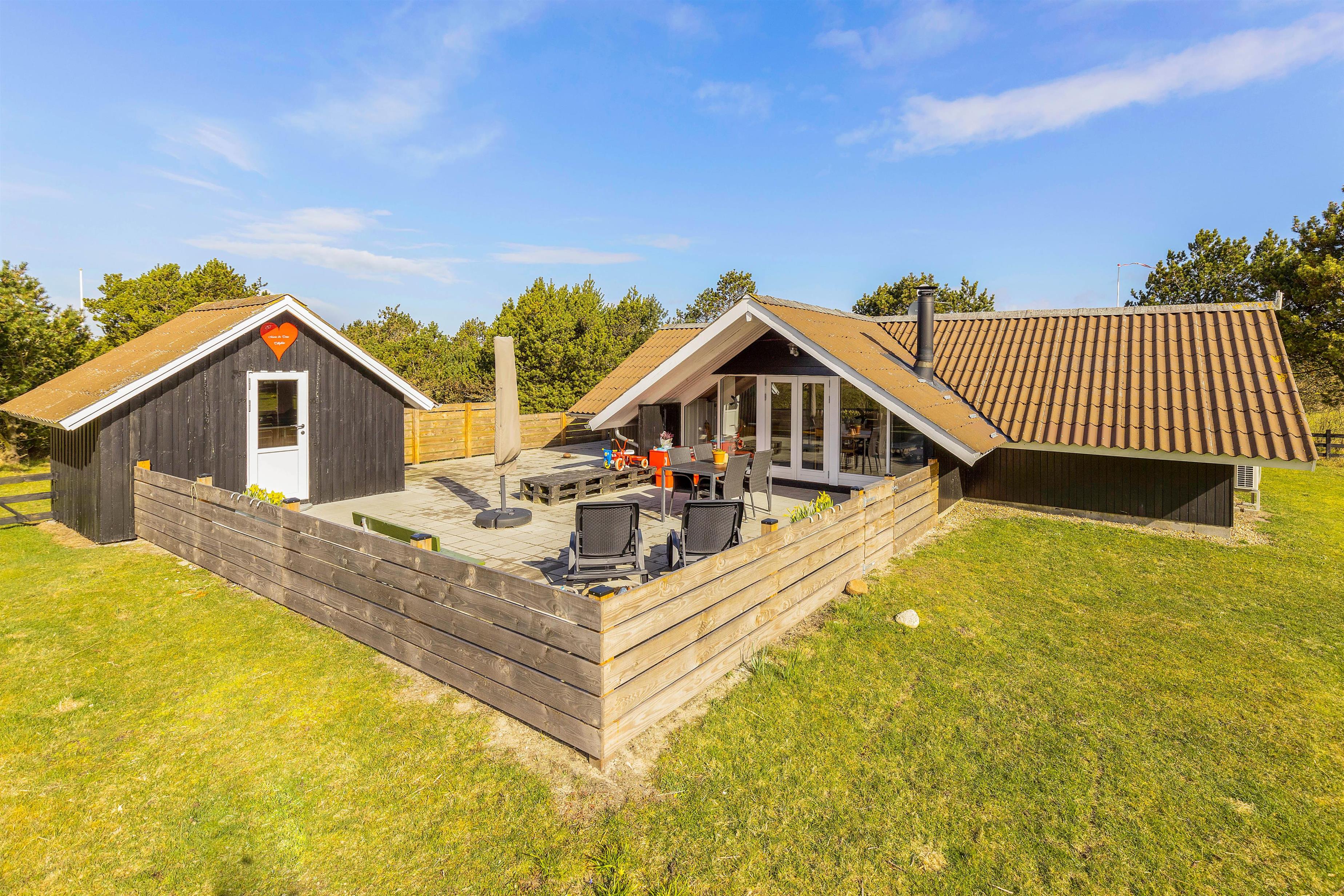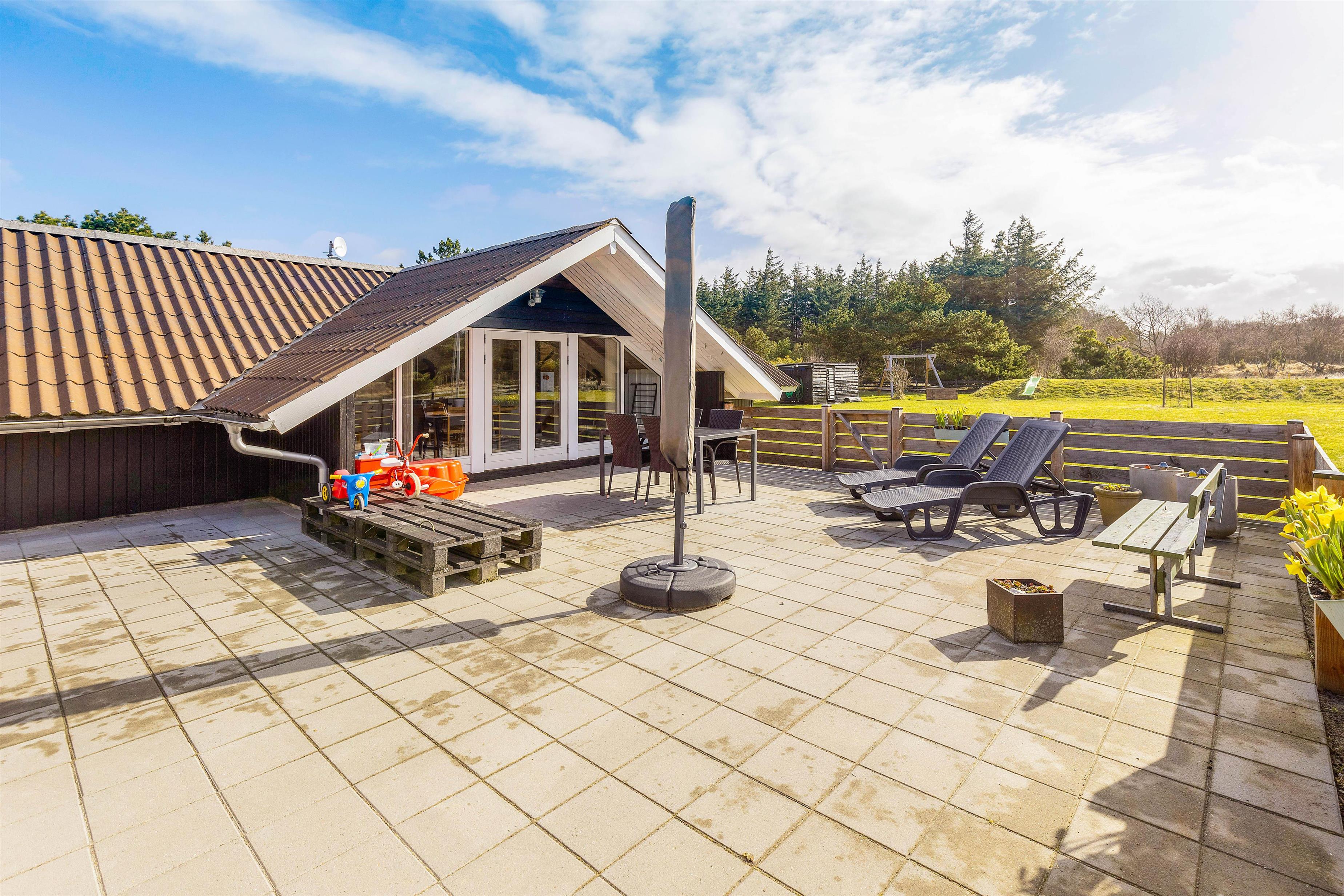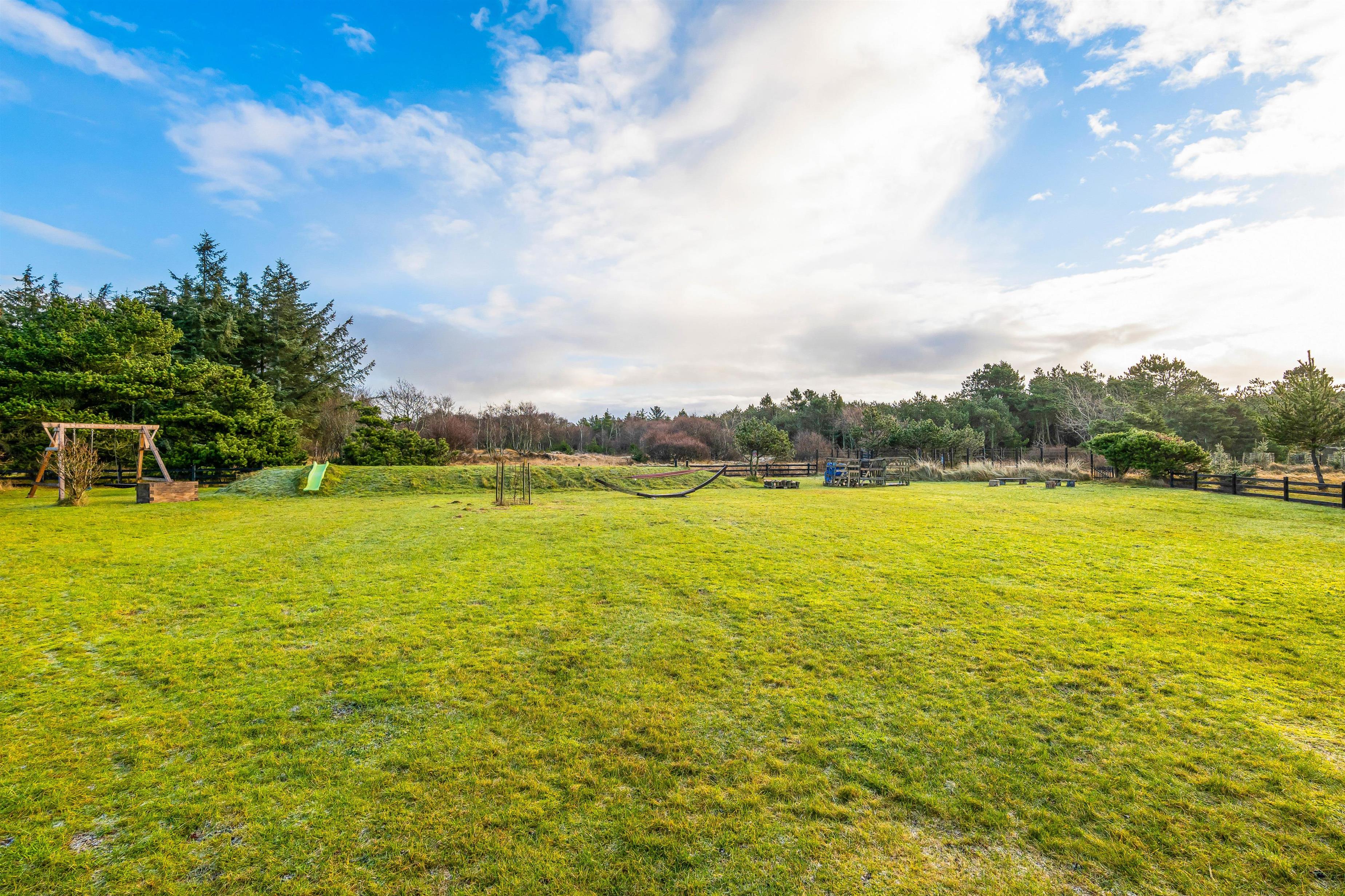 På grunden er der også noget for feriens yngste gæster. Her er nemlig både sandkasse og gyngestativ, som de kan få stor glæde af på ferien, mens I andre slapper af i havemøblerne og liggestolene på terrassen. På terrassen kan I også samles om aftenen til en lækker middag på grillen.