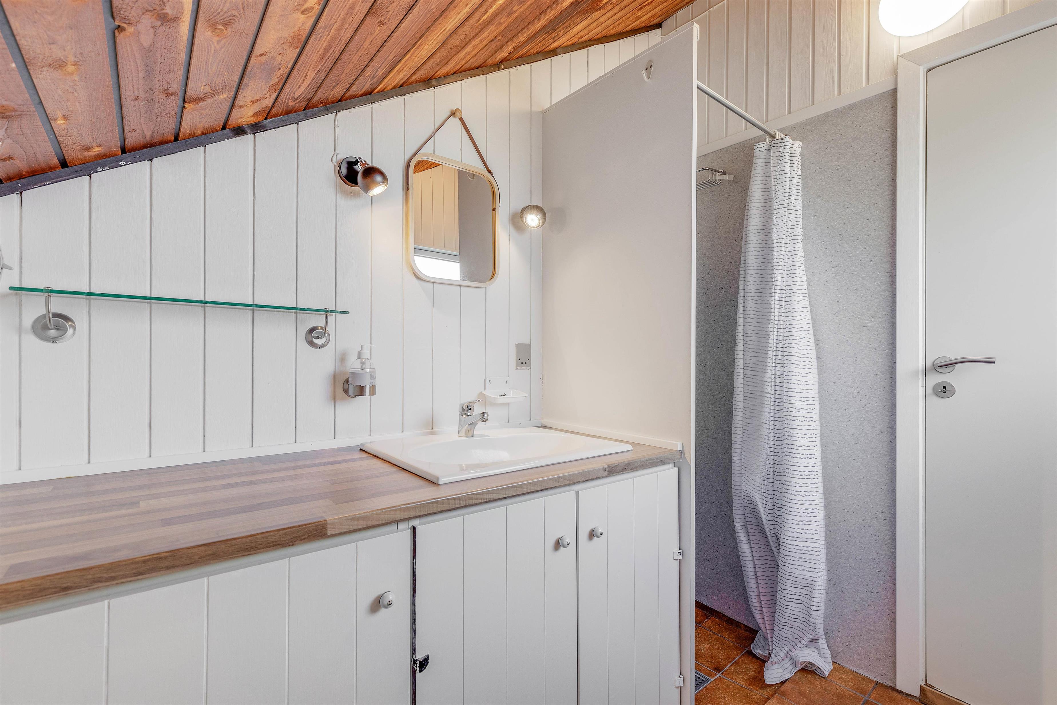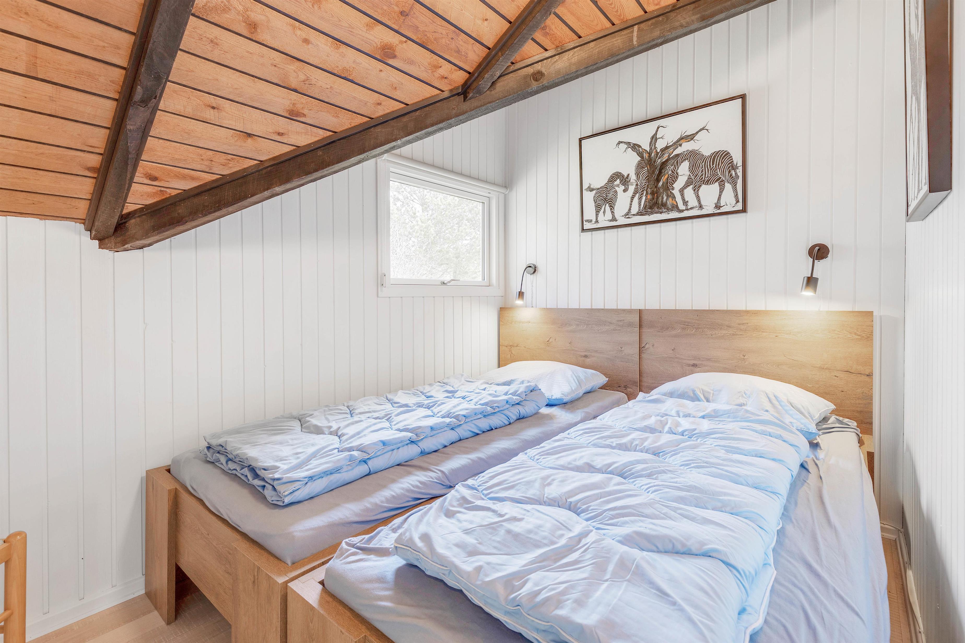 I det 69 kvadratmeter store sommerhus er der 2 soveværelser – det ene er indrettet med en dobbeltseng, og det andet er indrettet med 2 enkeltsenge. Derudover er der 1 badeværelse i sommerhuset.